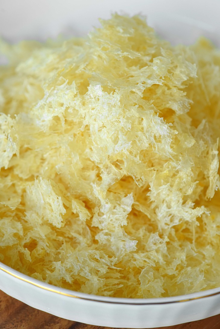 开团的是最高级品相的银耳 不是被硫磺薰的雪白,也不似老银耳的色泽过黄 ✅而是白中隐隐透着米黄,色泽清暖 拿到手的姐妹可以自行对比 ✅焖或是炖,都是非常浓稠拉丝的质地 跟超市的银耳不是一个东西 ✅满满浓稠的胶质,银耳多糖含量贼高 ✅保湿润肤效果拉满!一碗胜过10张玻尿酸面膜