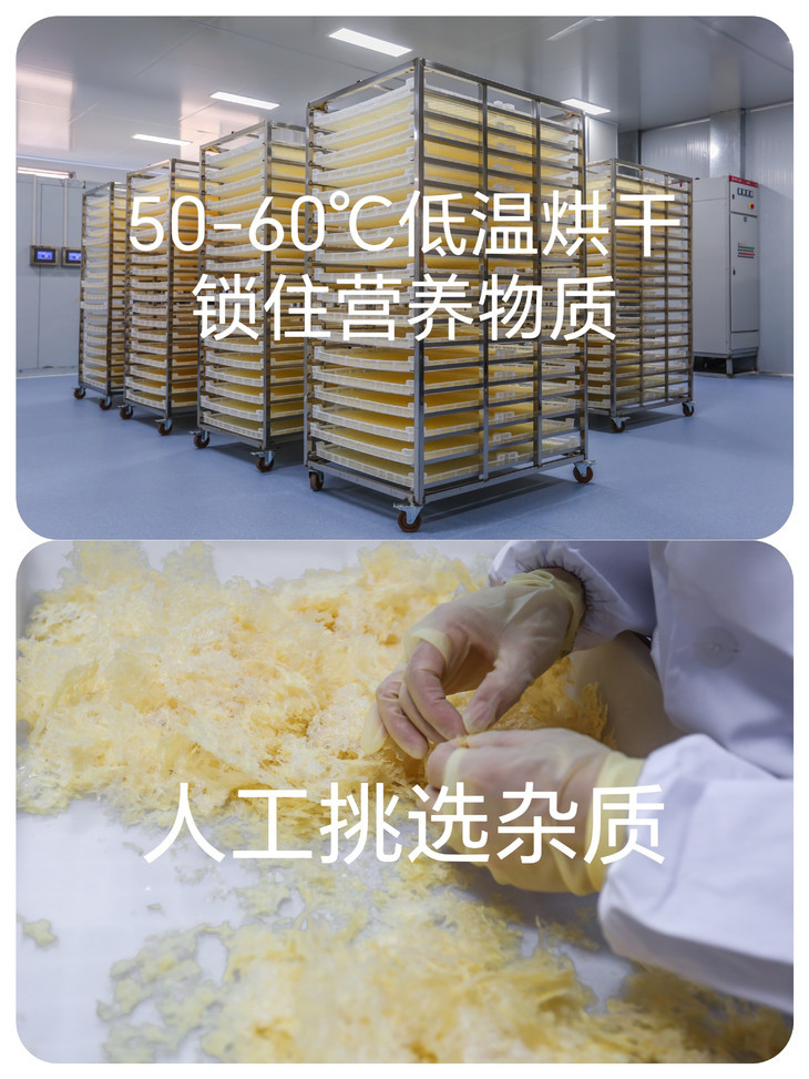 ✅甄选高山森林800-1100M海拔有机银耳 ✅60天人工,12种中草药精心培育呵护 ✅采摘后用高山清澈山泉水4道工序清洗 (冲洗,泡洗,漂洗,冲洗) ✅人工筛选去蒂,只选留鲜嫩多胶耳瓣 ✅破壁技术,打破细胞壁,营养物质更易吸收 ✅8H智能温湿控烘干,锁住营养更快更易出胶