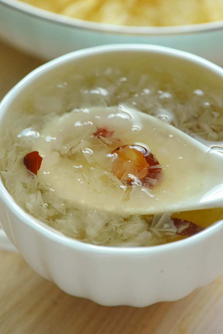 银耳,它甘甜爽口,但毫不腻味 不像有些食物很甜 但多吃一些就发腻,还会产生湿气 比如各种奶油蛋糕 它很润 却又不像有些食物润而寒凉,比如梨