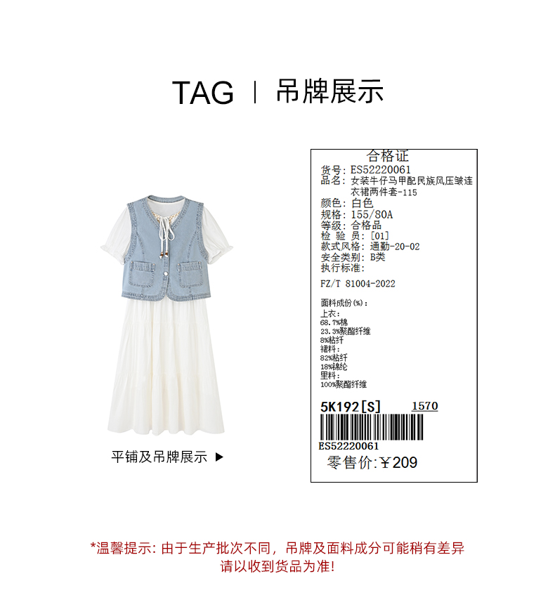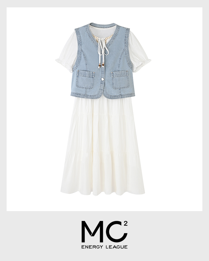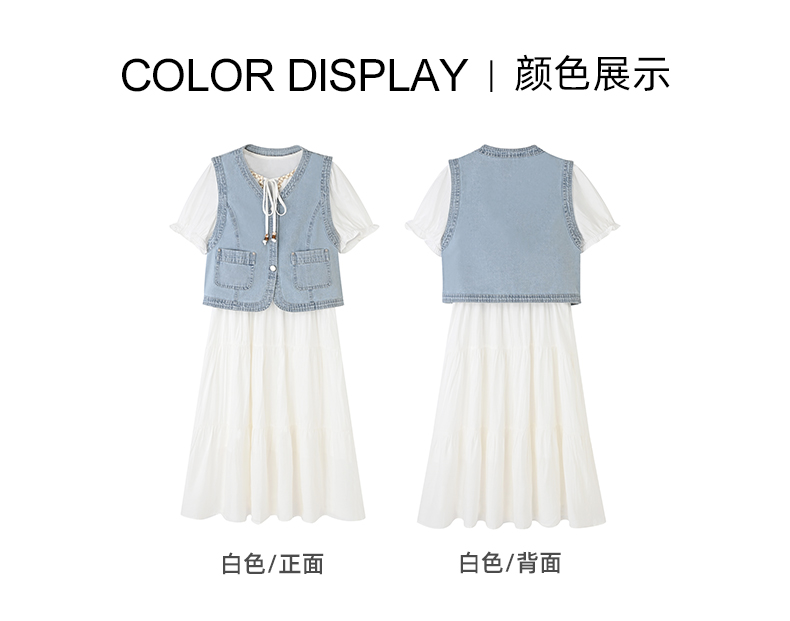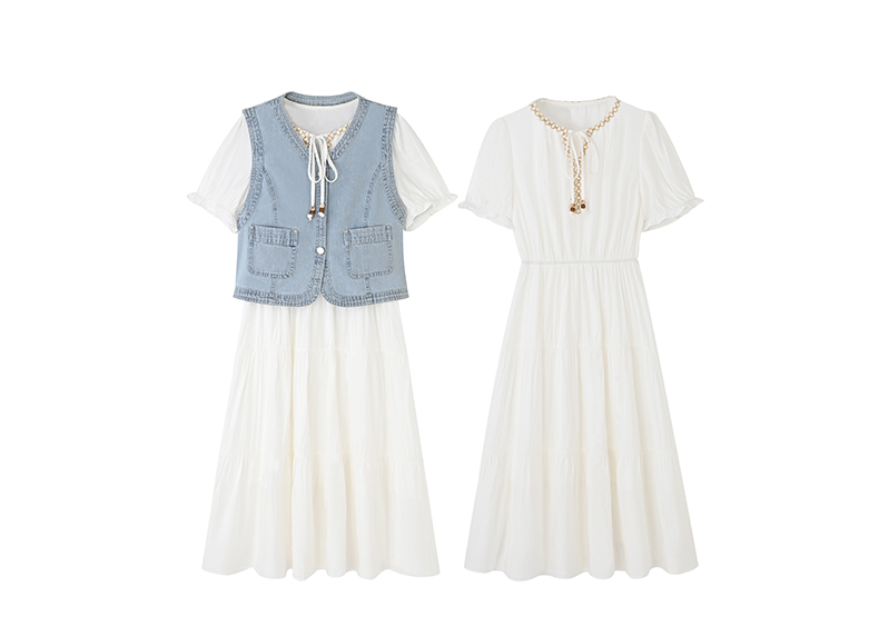 女装牛仔马甲配民族风压皱连衣裙两件套-115S5222006