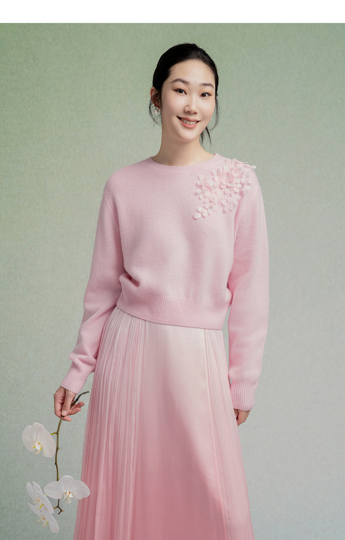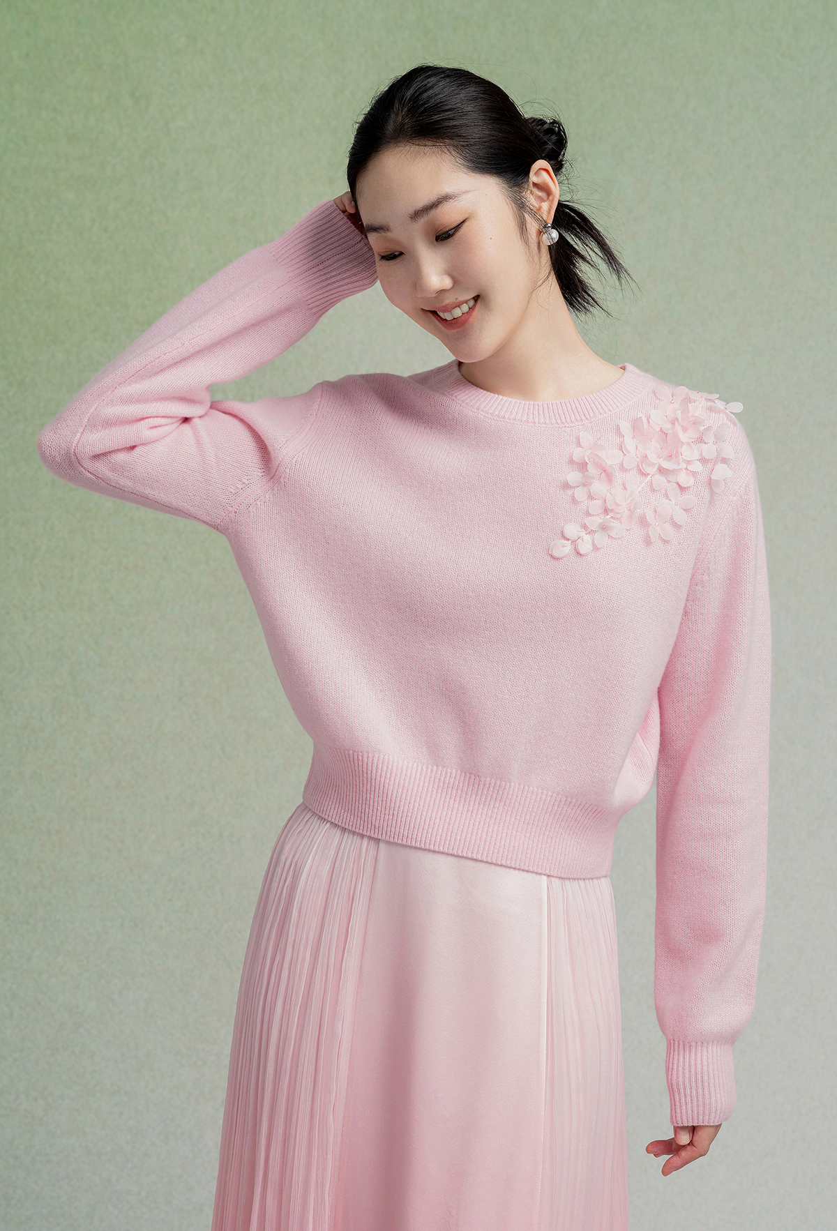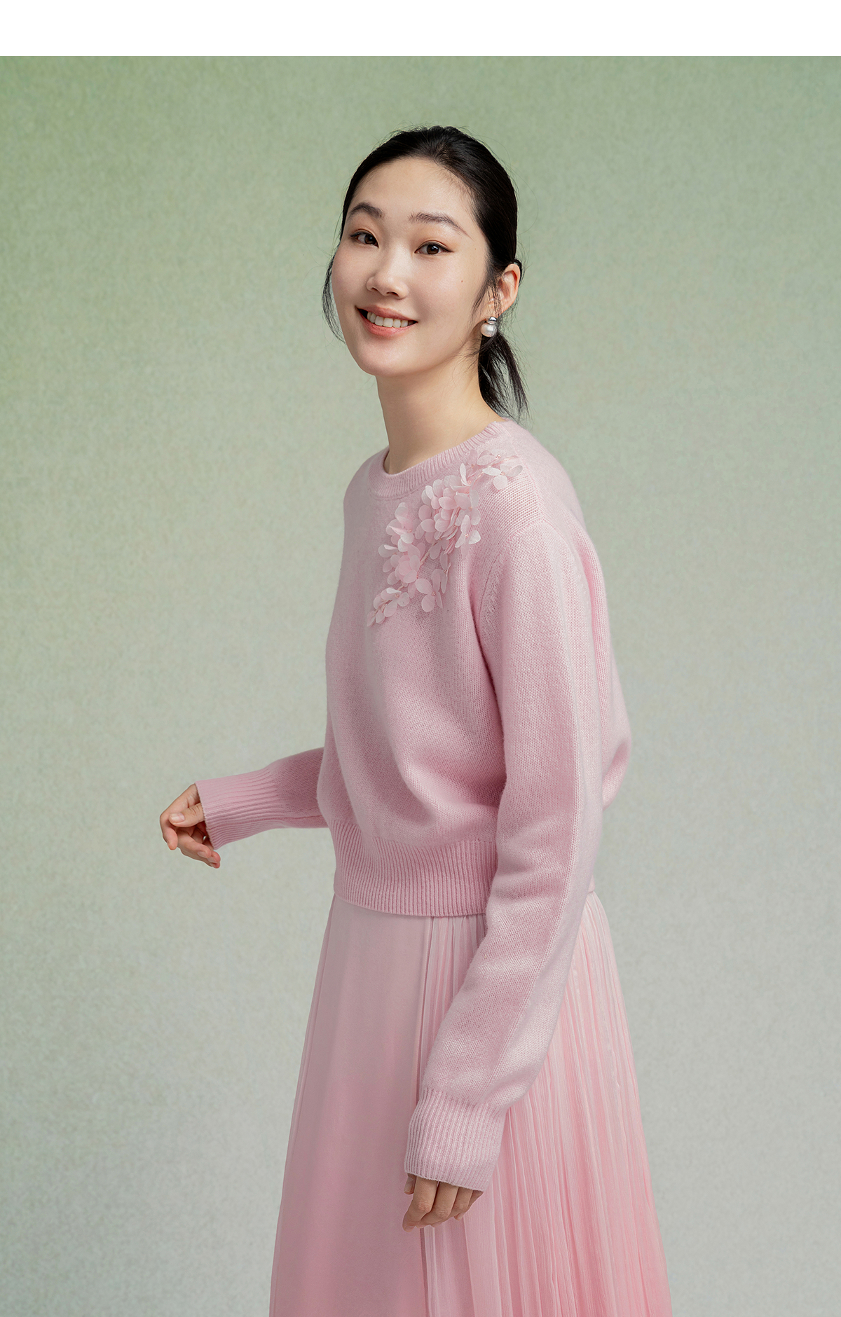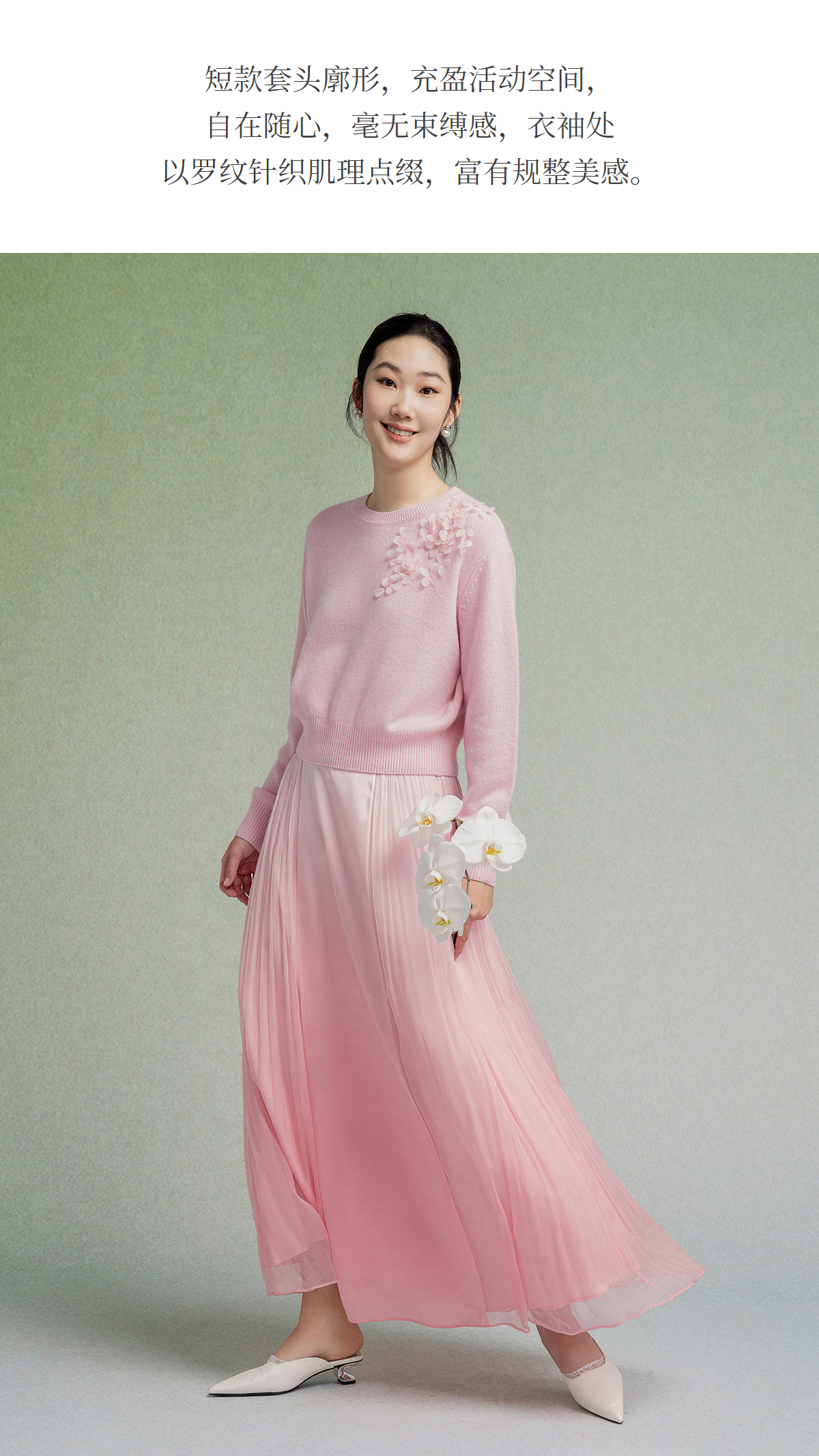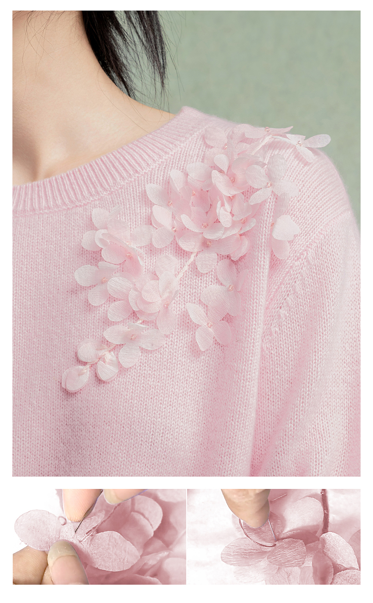【林栖设计小店】【手工钉花】绵羊毛毛织上衣舒适2025秋季新款套头毛衣女F1953240