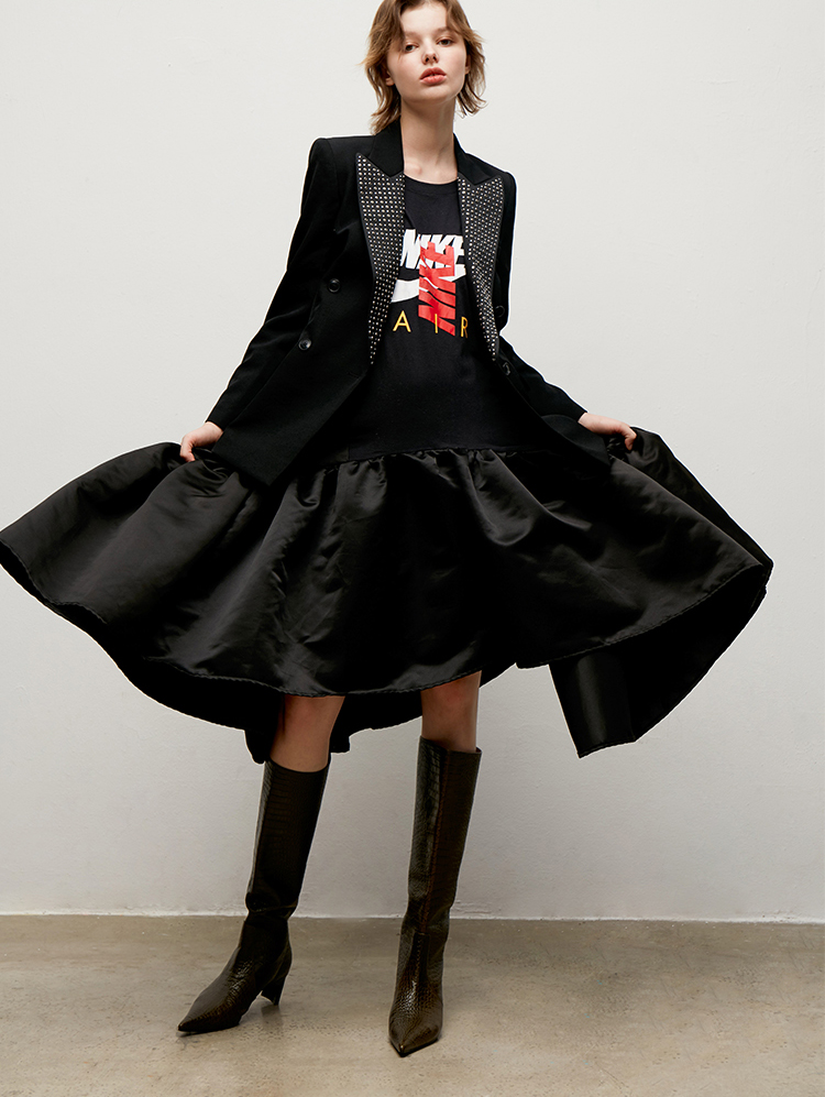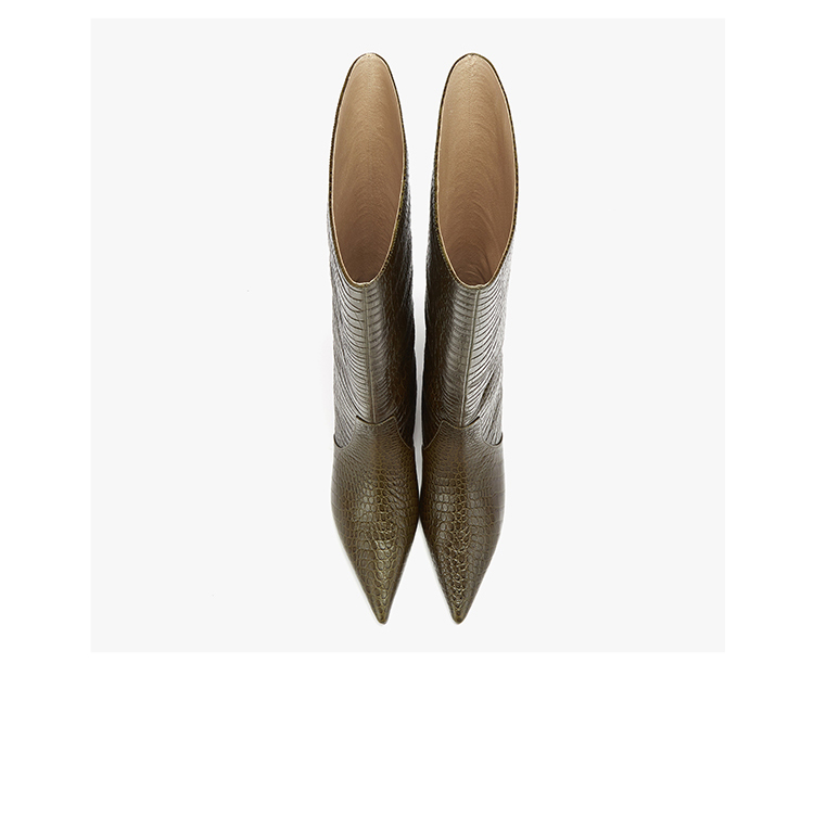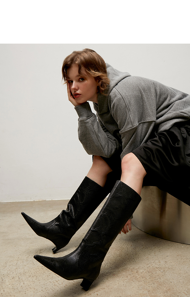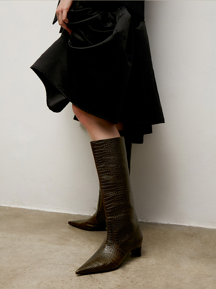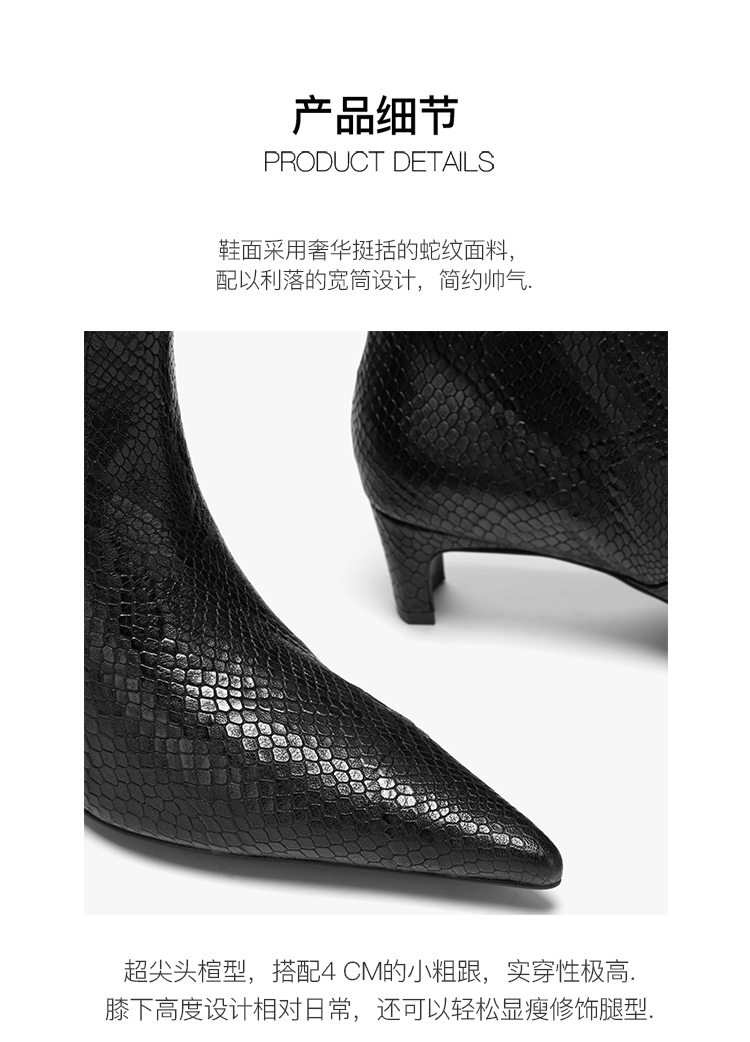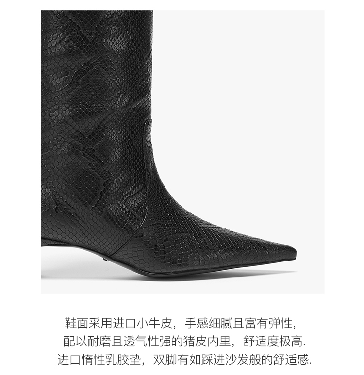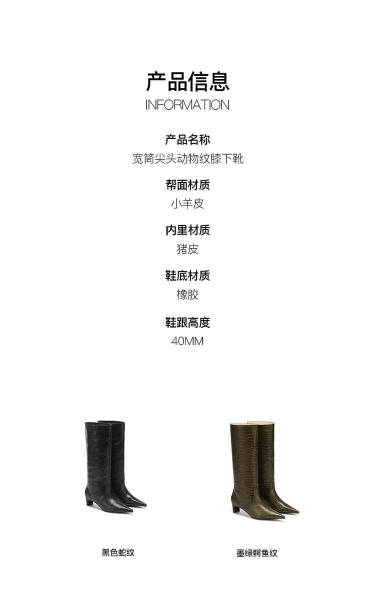 lost in echo 设计师原创 时尚宽筒尖头动物纹真皮牛皮 膝下靴