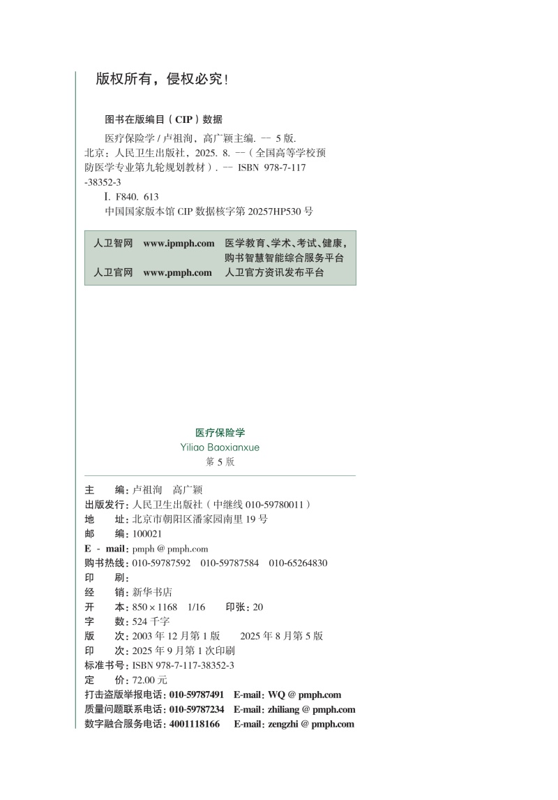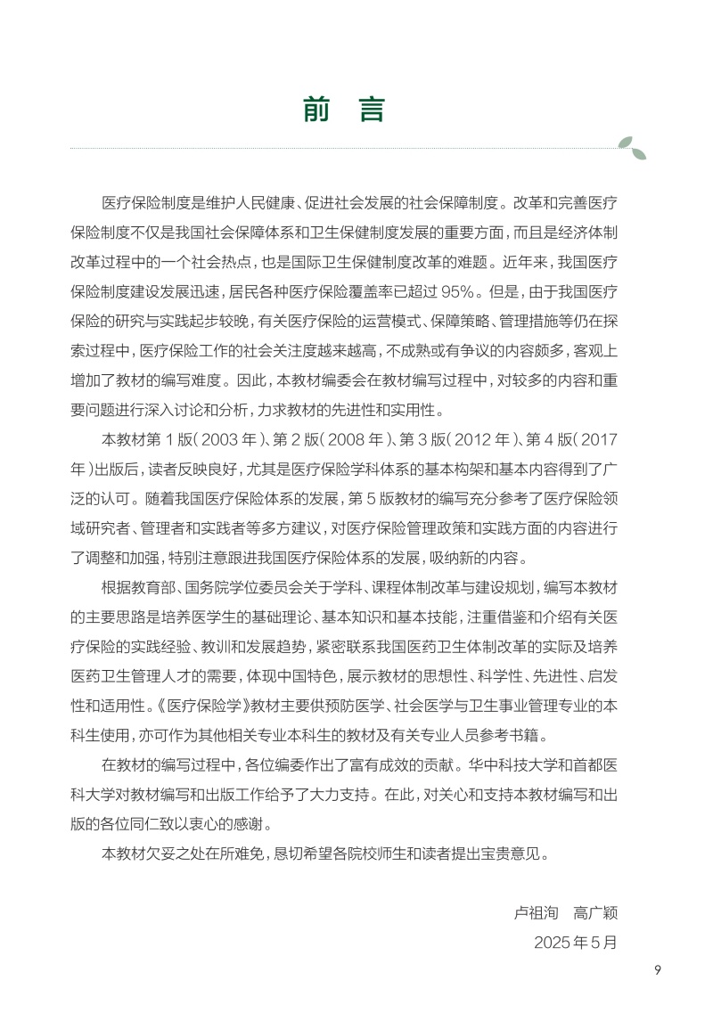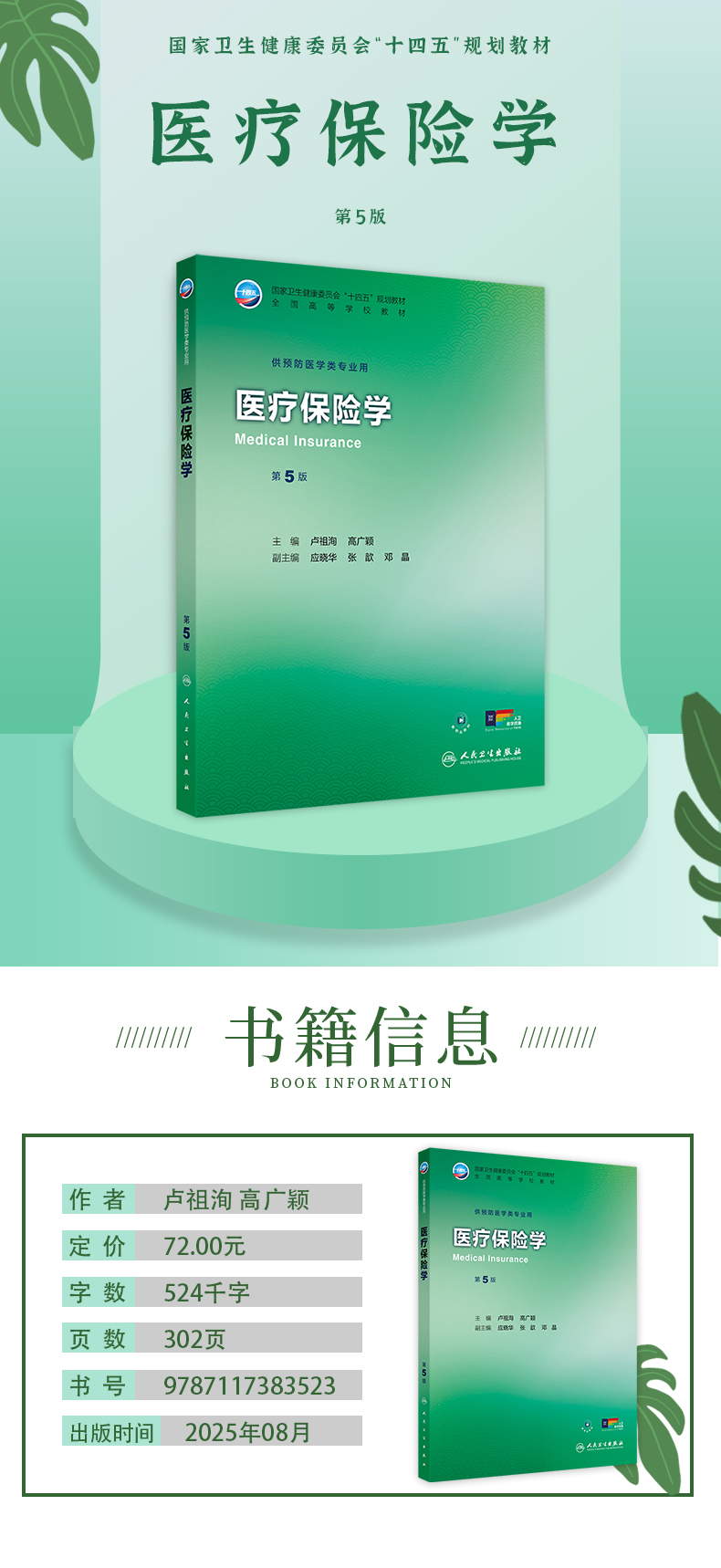 医疗保险学 第5五版 十四五规划教材 全国高等学校教材 卢祖洵 高广颖 主编 供预防医学类专业用 9787117383523 人民卫生出版社