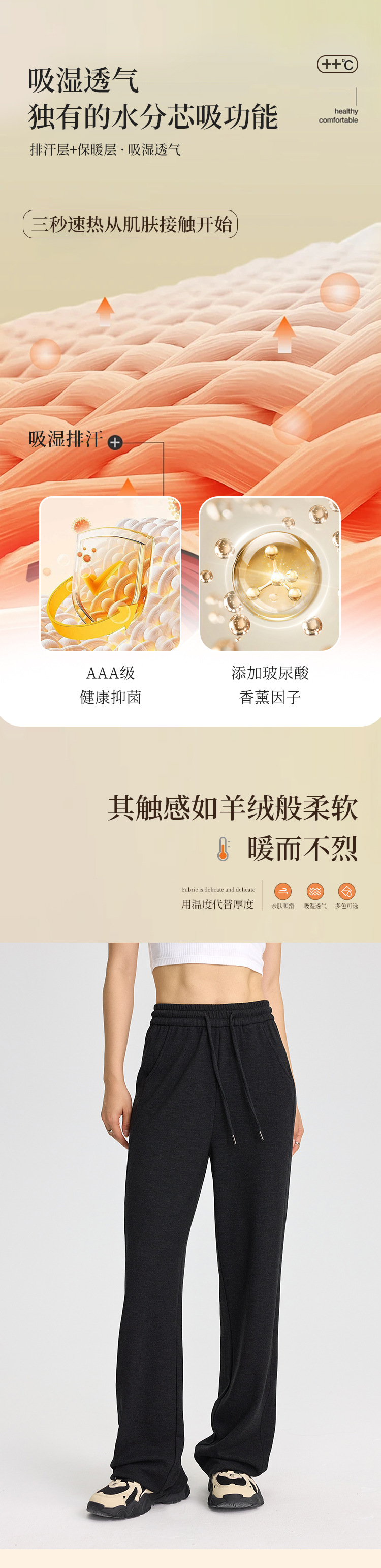 女士玻尿酸德绒毛呢卫裤 冬季速热保暖羊绒般柔软保暖显瘦休闲裤