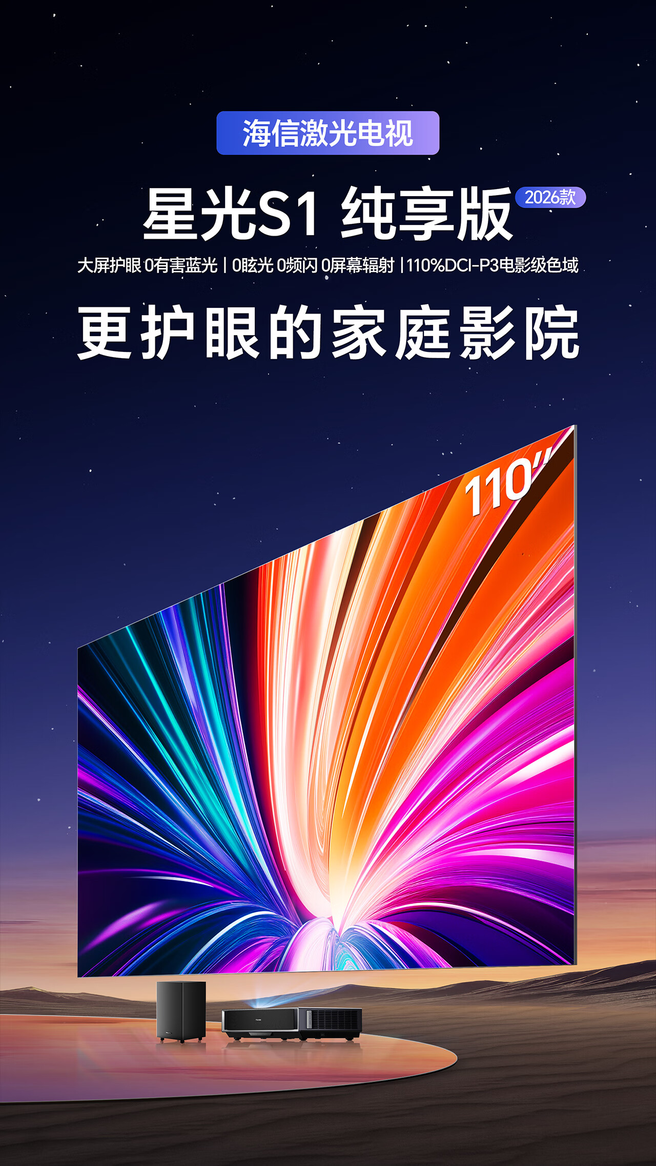 海信激光电视 星光S1 纯享版2026款 110英寸 家庭影院 大屏护眼 世俱杯官方电视 以旧换新 100-110