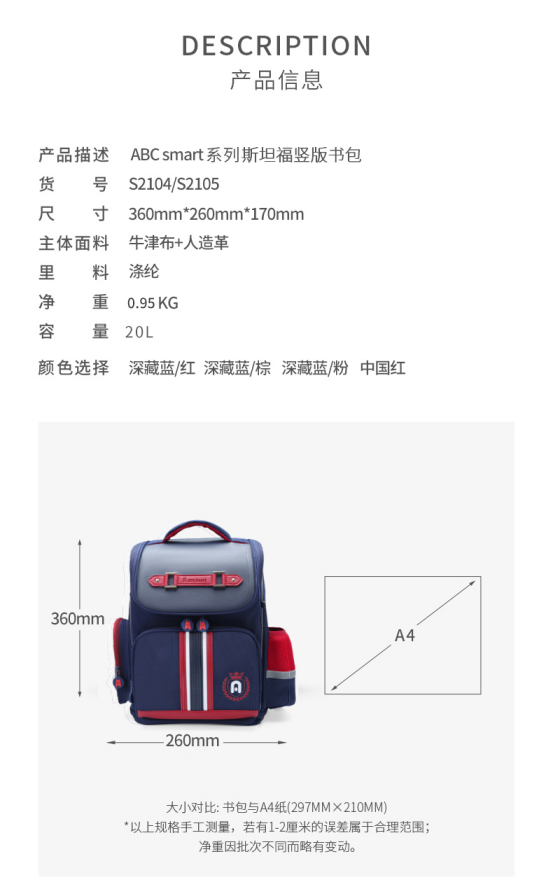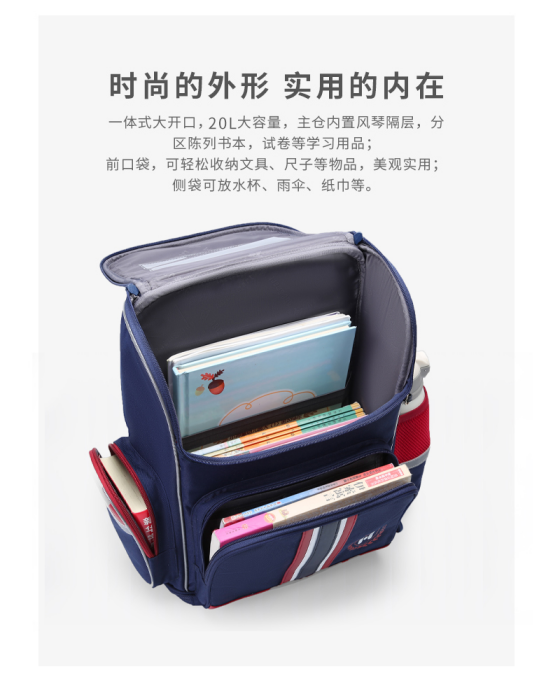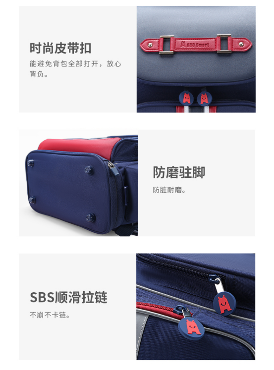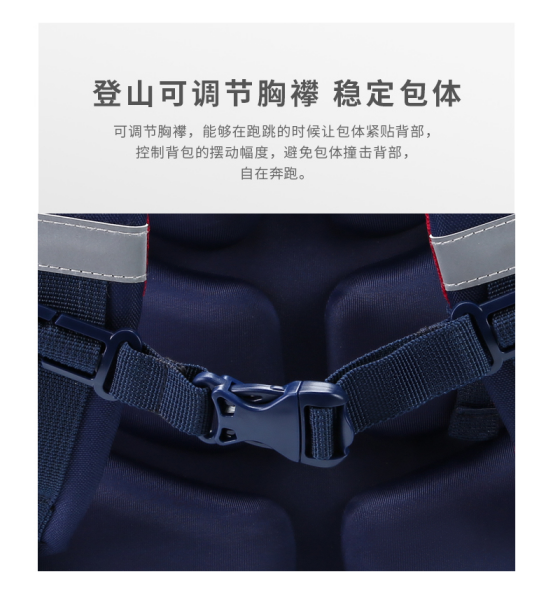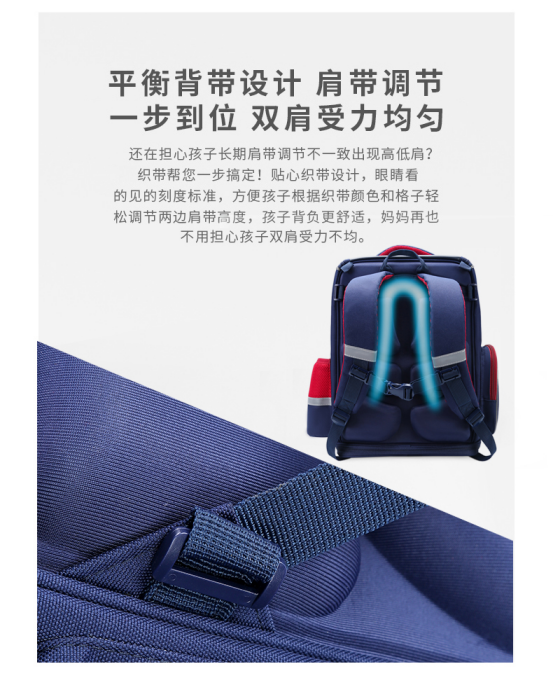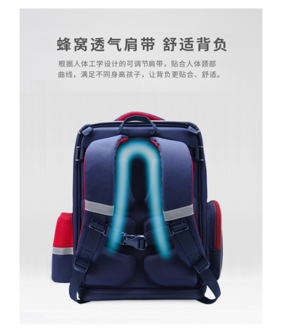 这款书包肩带设计也很贴心,大大减缓了因书包内部书本晃动,对后背的撞击力。