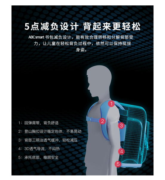 孩子上学路上,即使跑、跳也不会一直撞击脊柱,落在肩膀上,却是一片柔软。