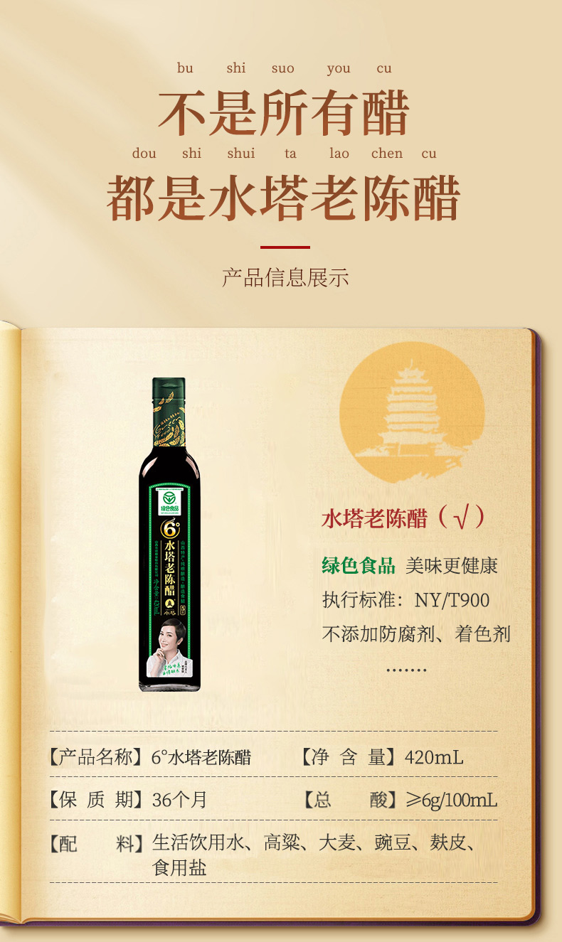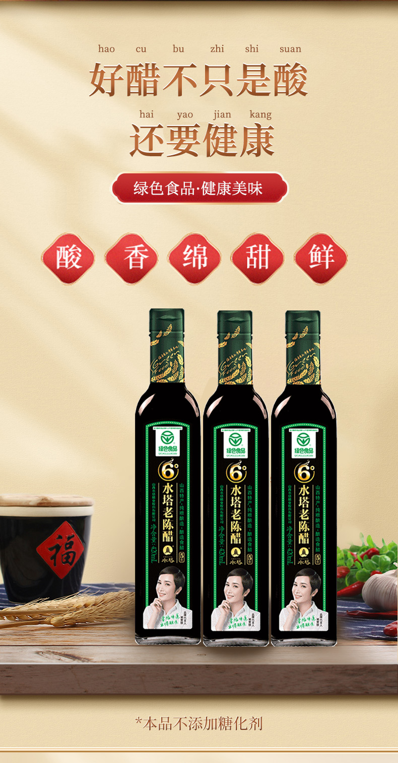【不添加防腐剂*】山西水塔6度420mlx2瓶绿色食品老陈醋食醋饺子醋蟹醋