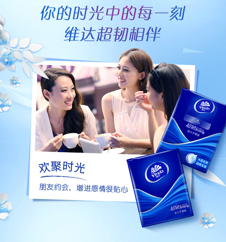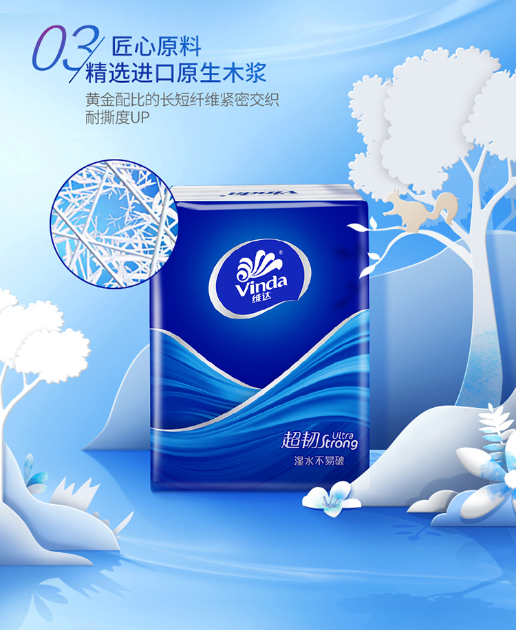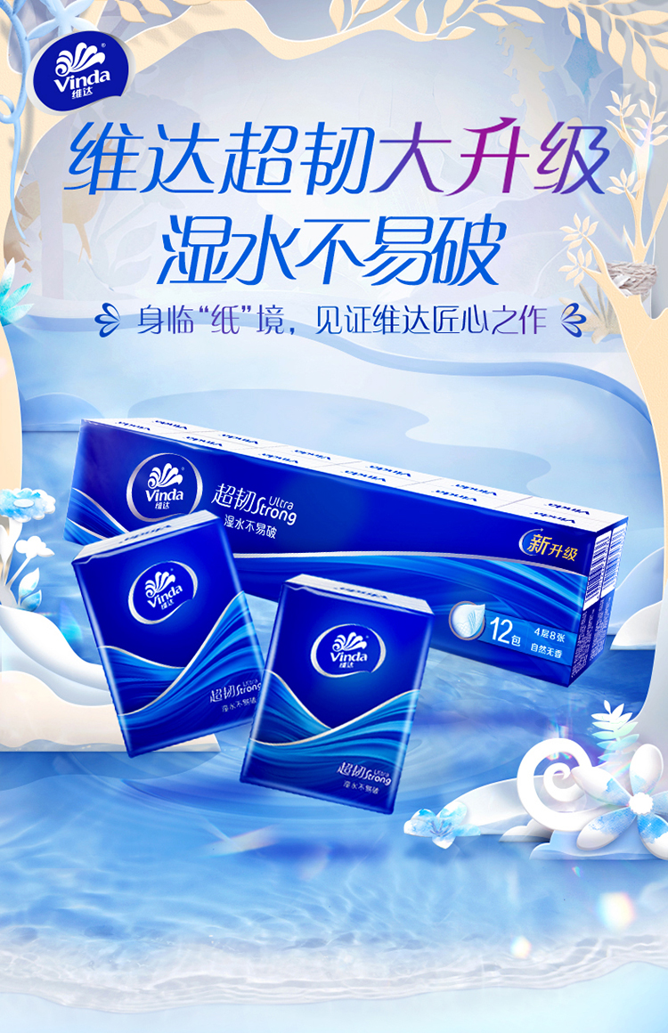 维达(Vinda)手帕纸 超韧系列 4层纸巾*12包(无香)