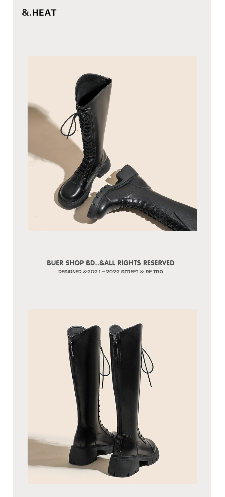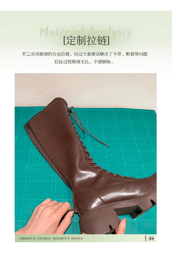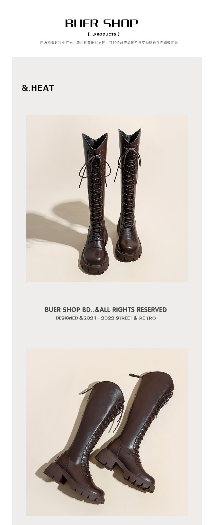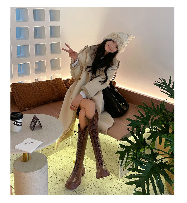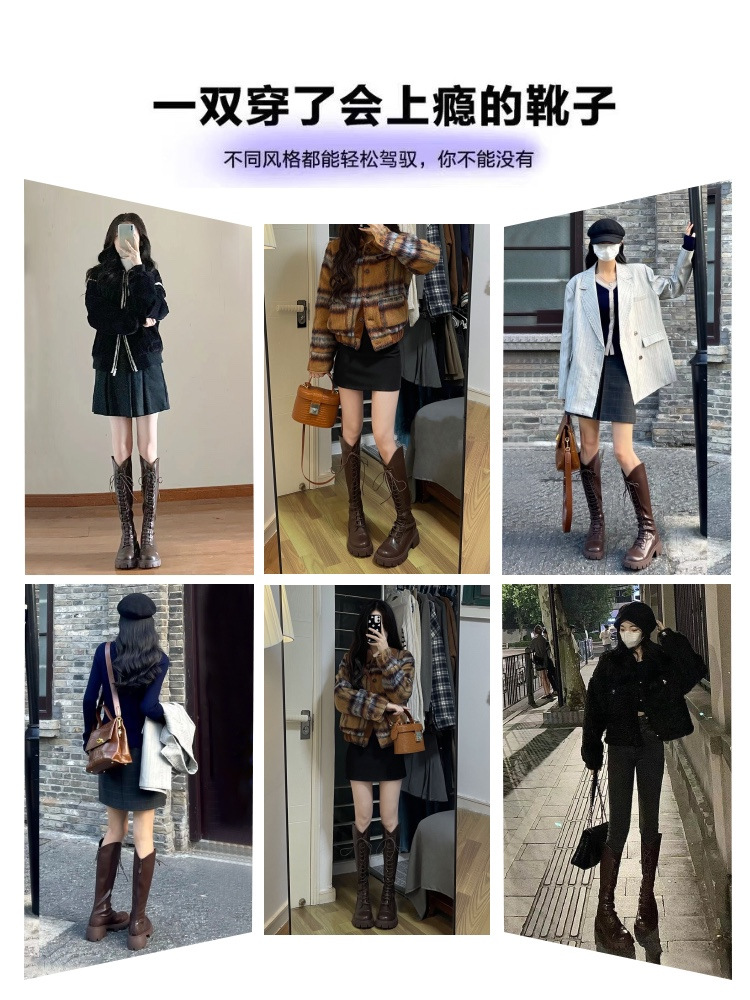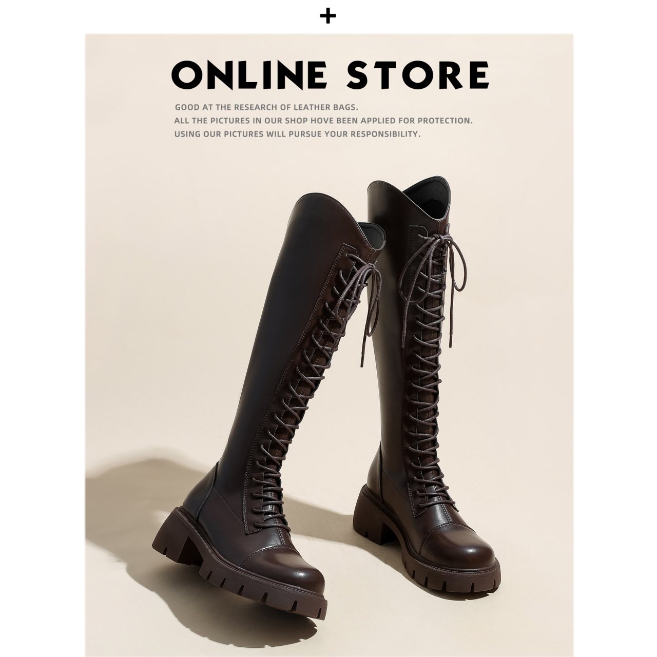 绑带长筒靴女2024秋冬加绒显瘦粗跟厚底棕色V口高筒靴长靴骑士靴新款爆款小红书同款