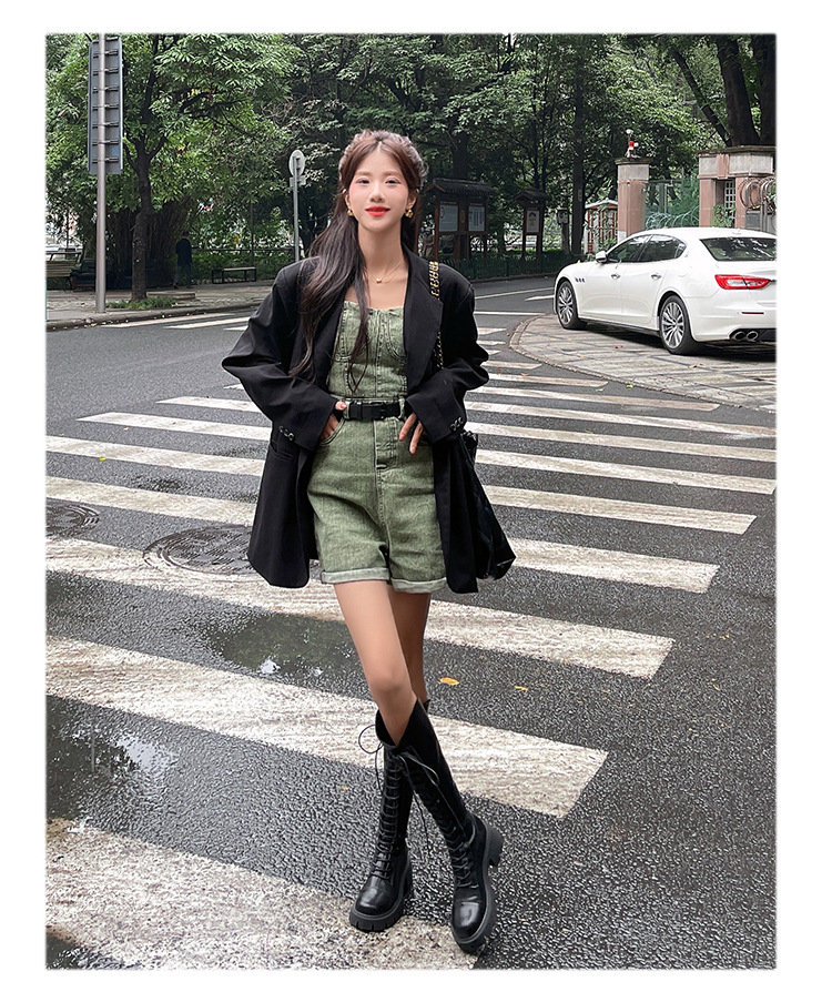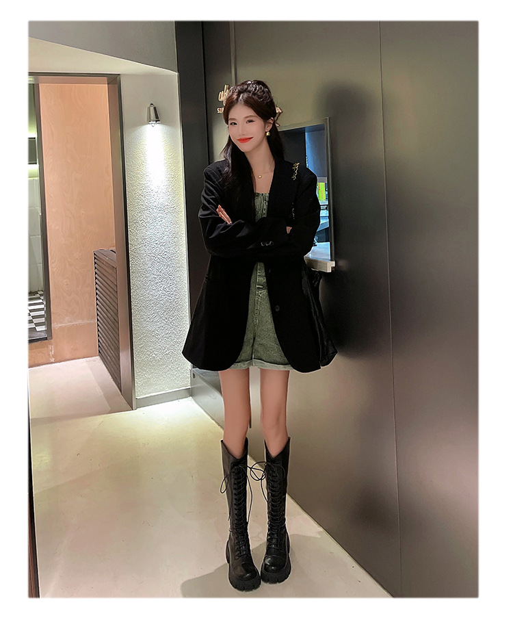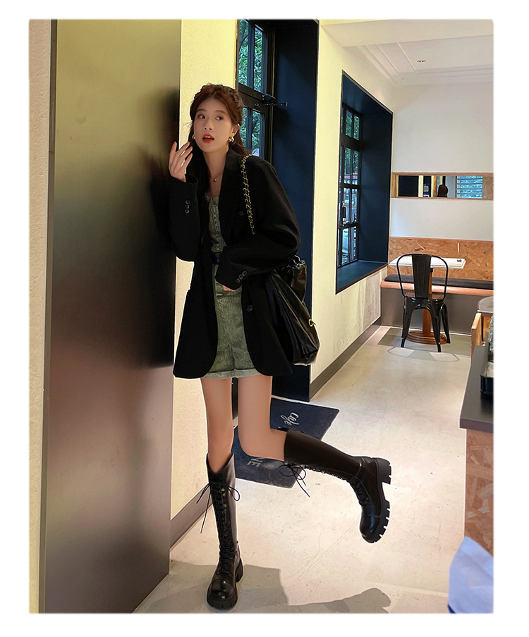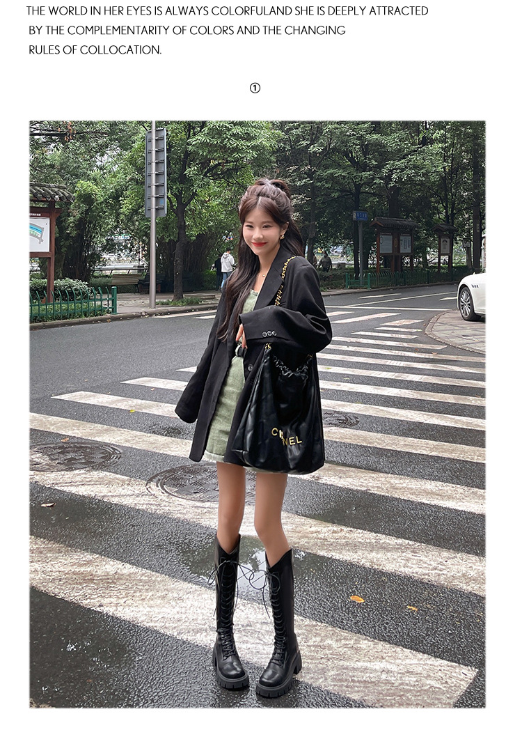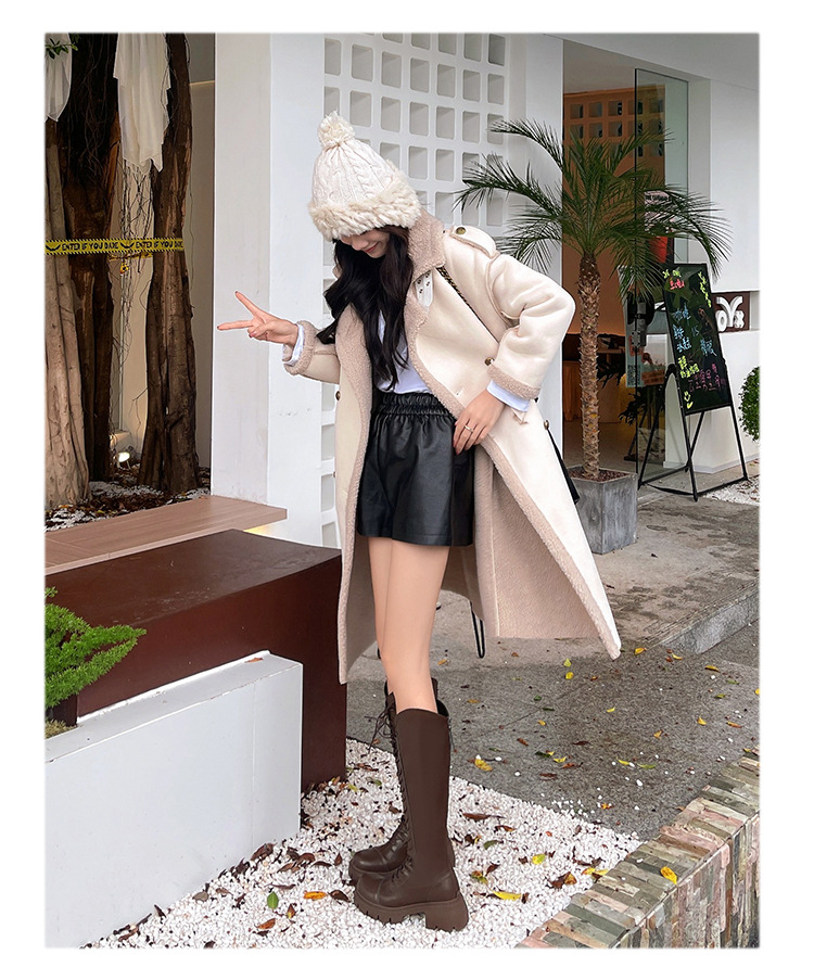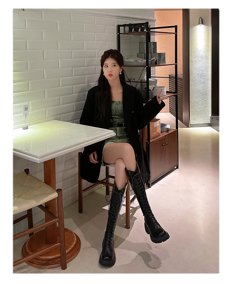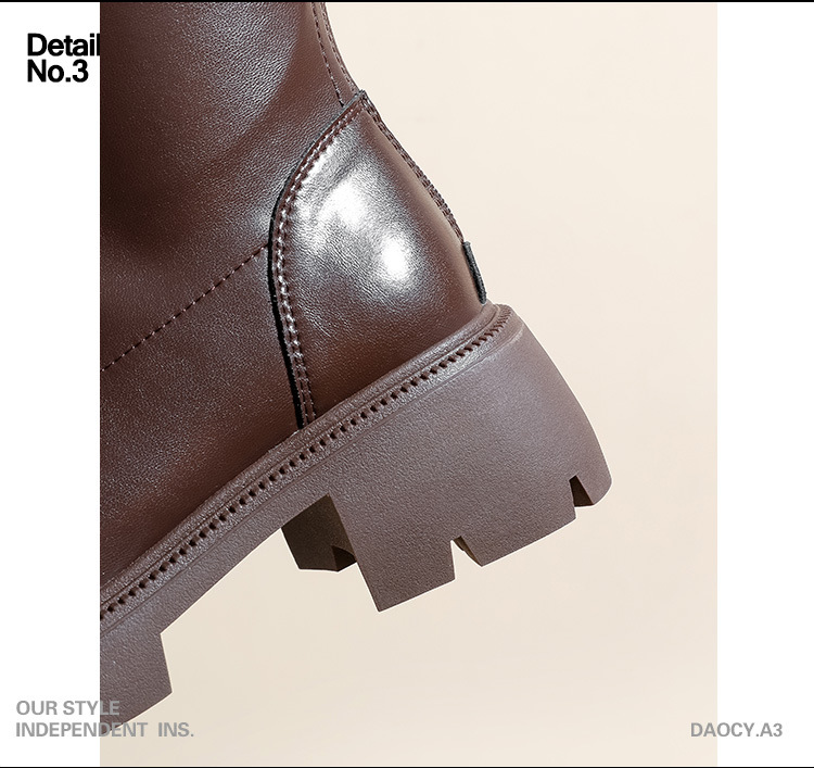 绑带长筒靴女2024秋冬加绒显瘦粗跟厚底棕色V口高筒靴长靴骑士靴新款爆款小红书同款