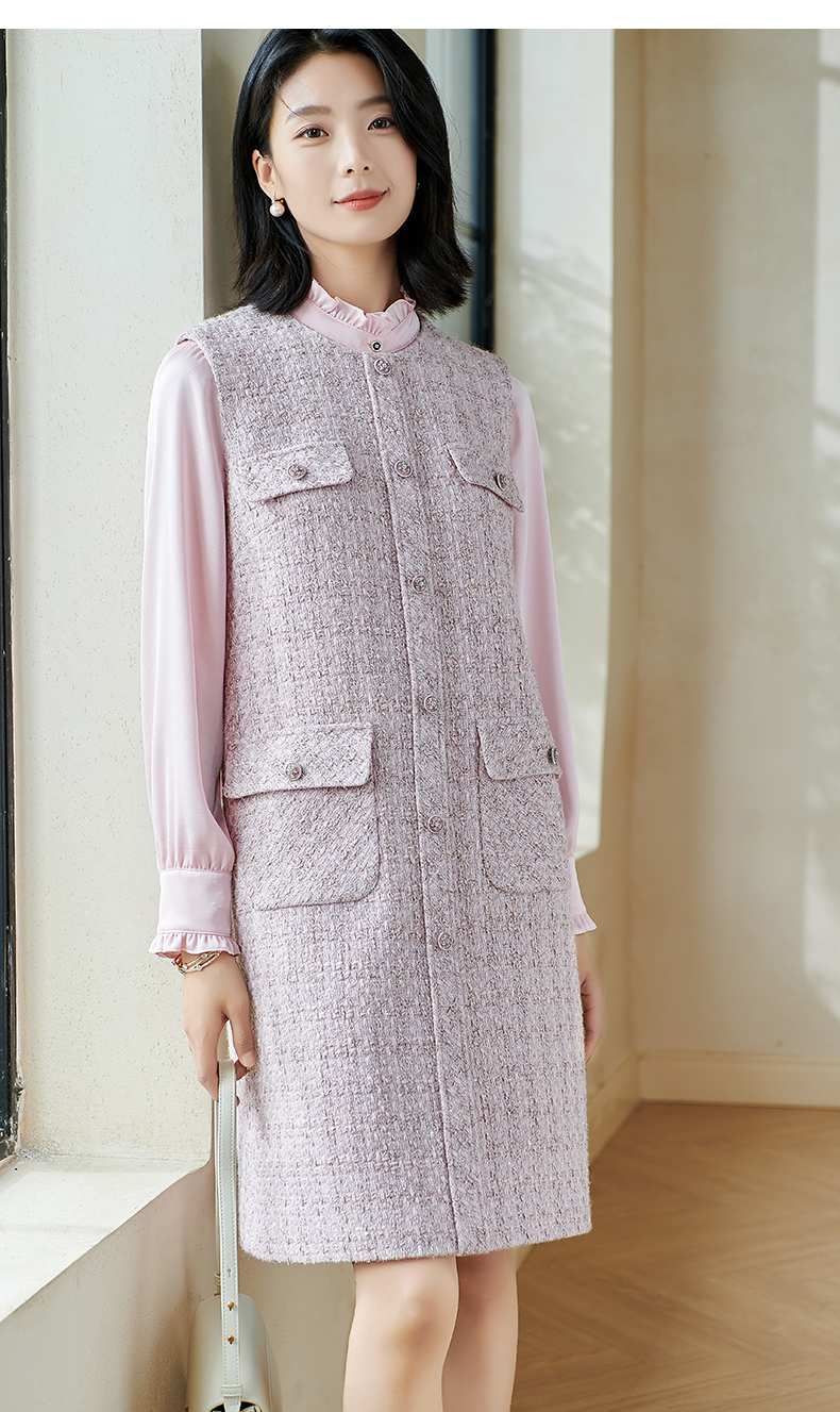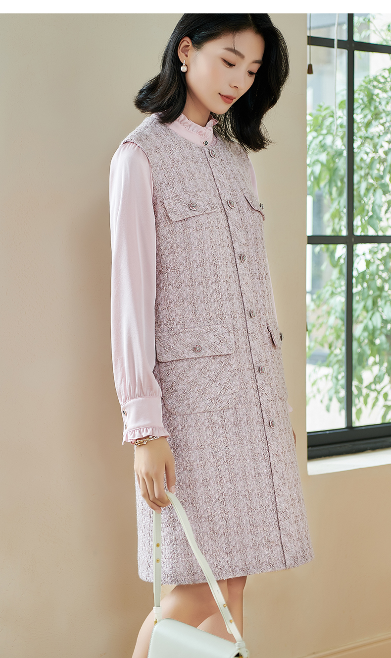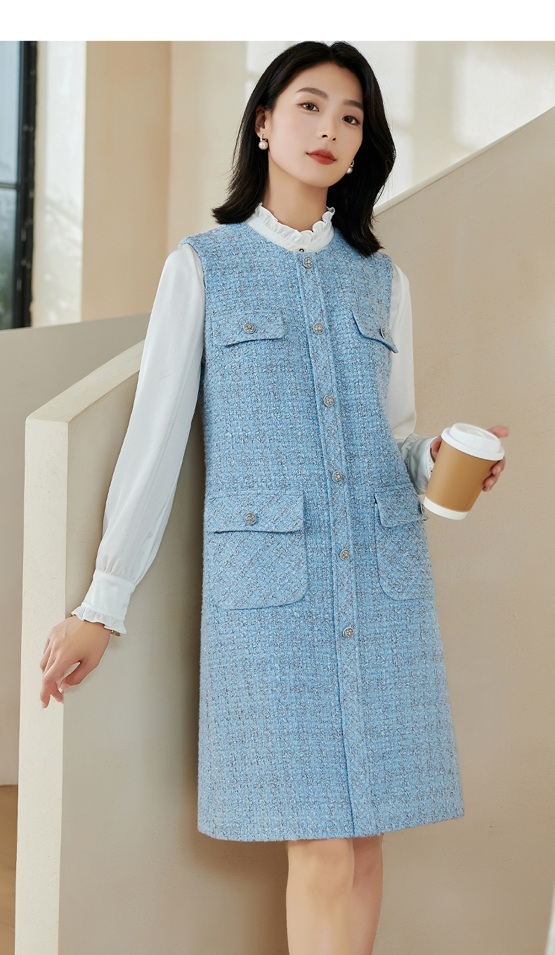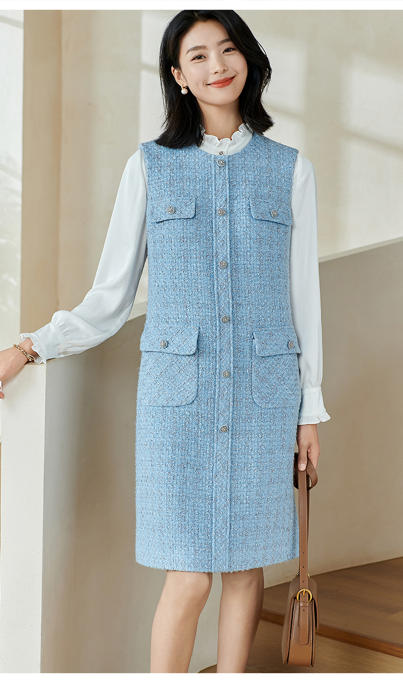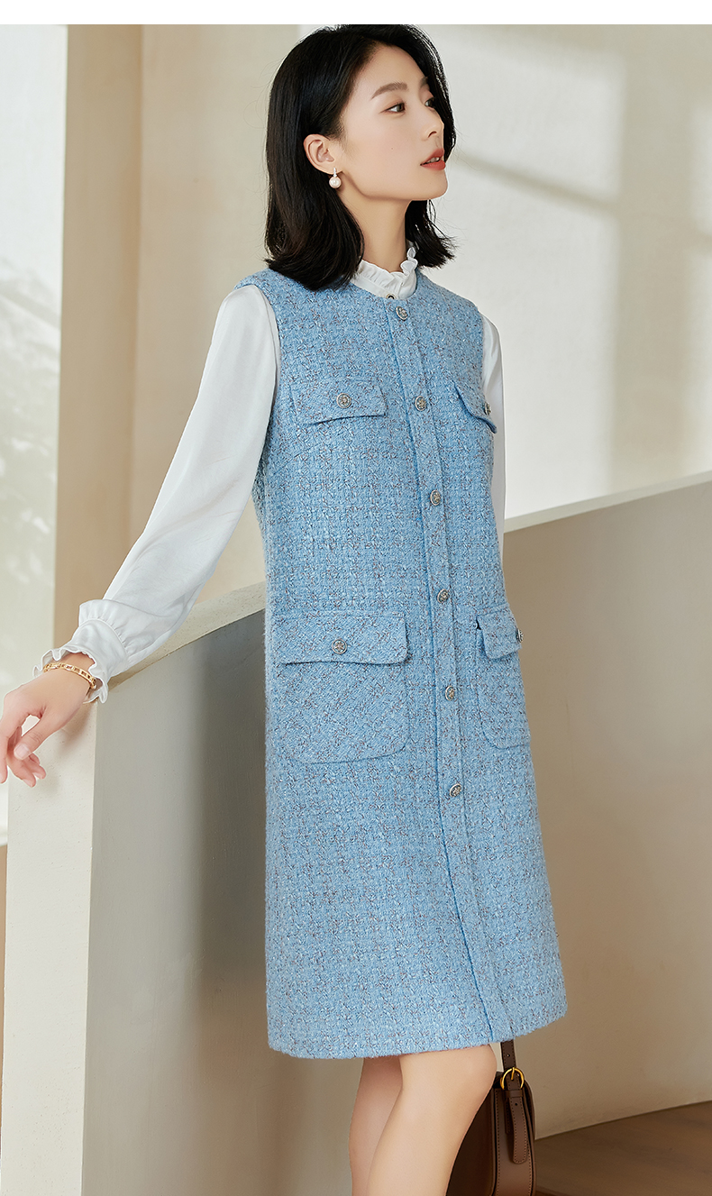 米思阳2026春季小香风羊毛直筒连衣裙无袖百搭打底背心裙女