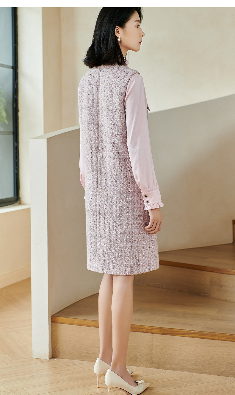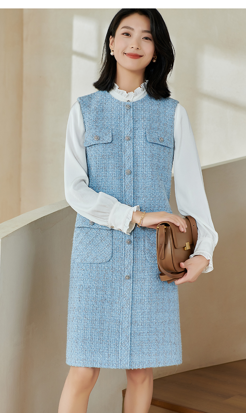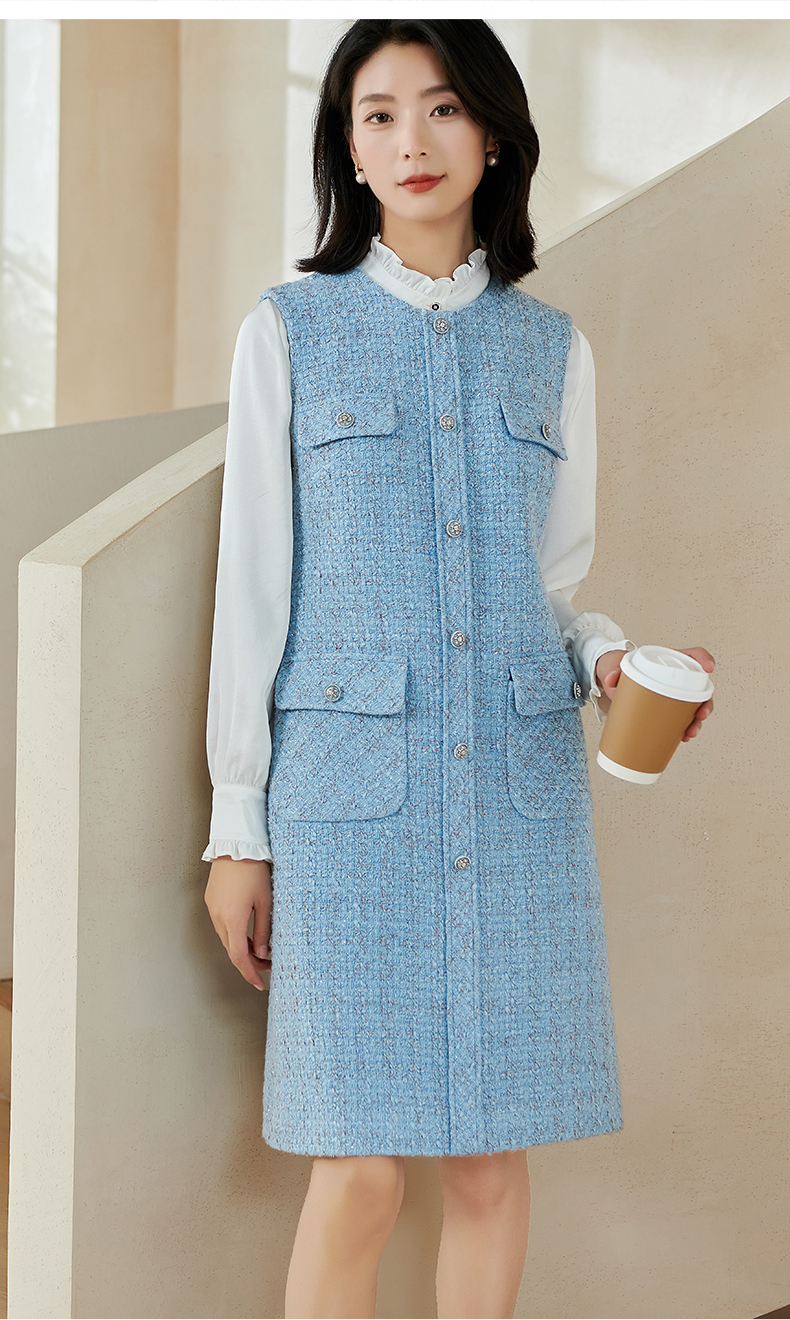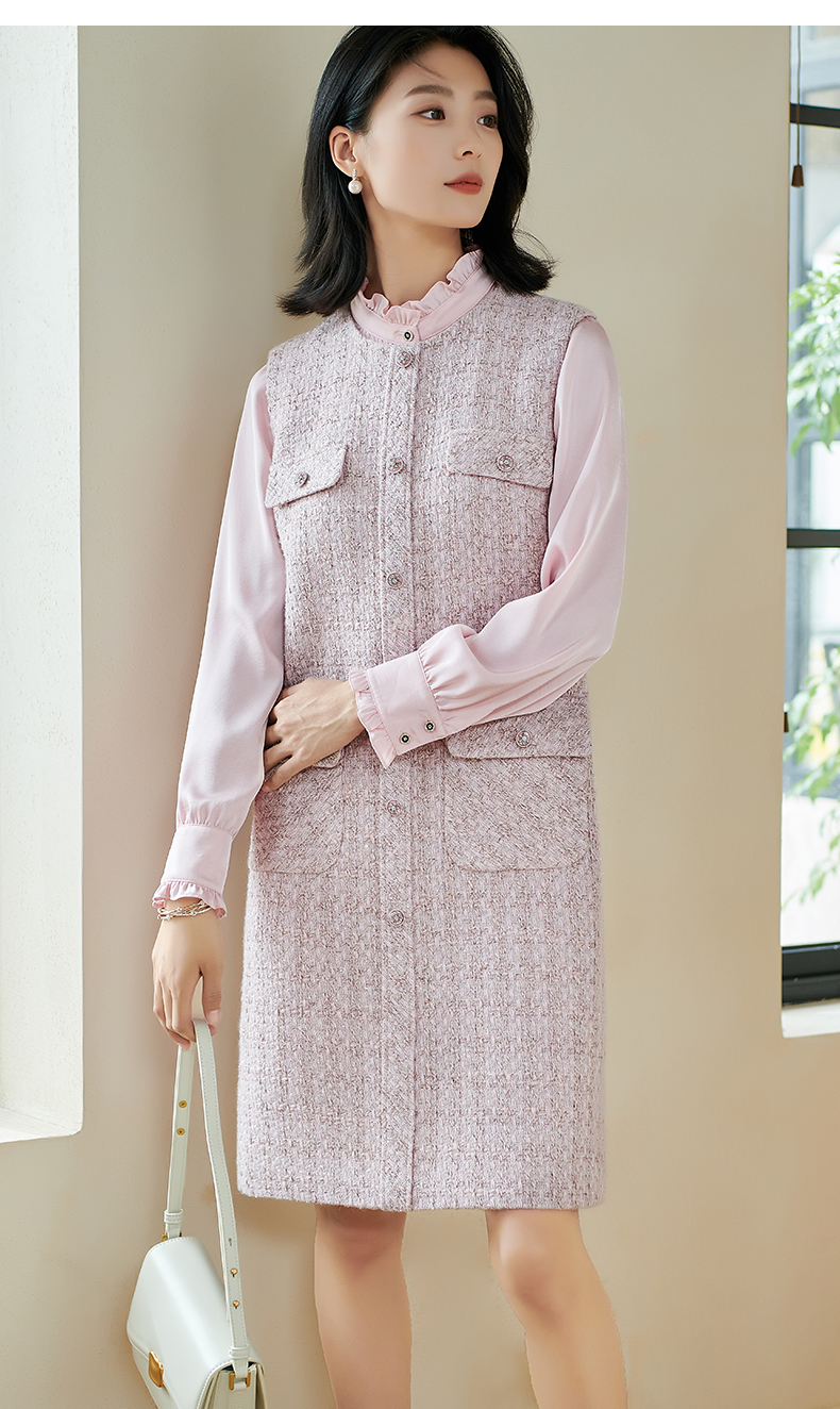 米思阳2026春季小香风羊毛直筒连衣裙无袖百搭打底背心裙女
