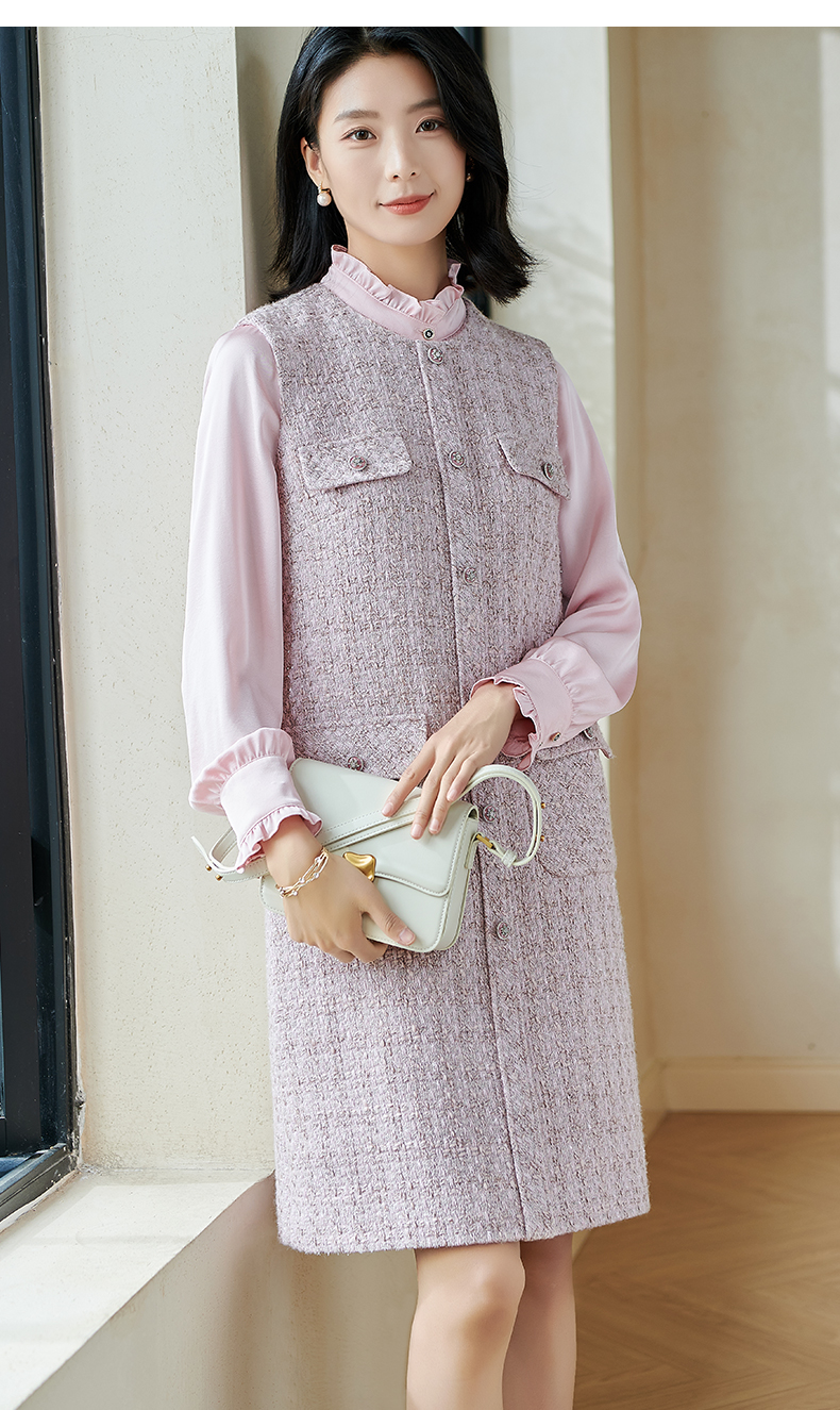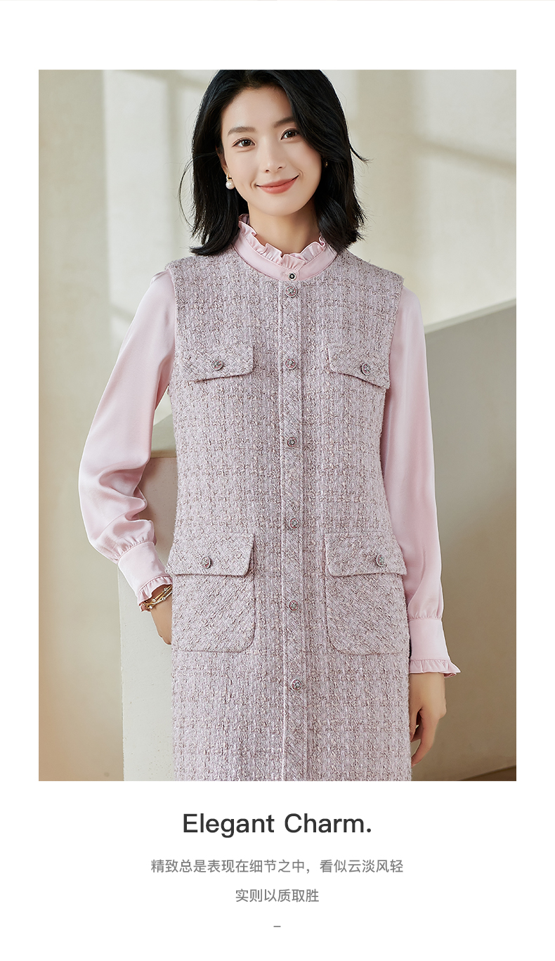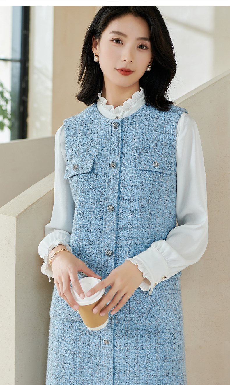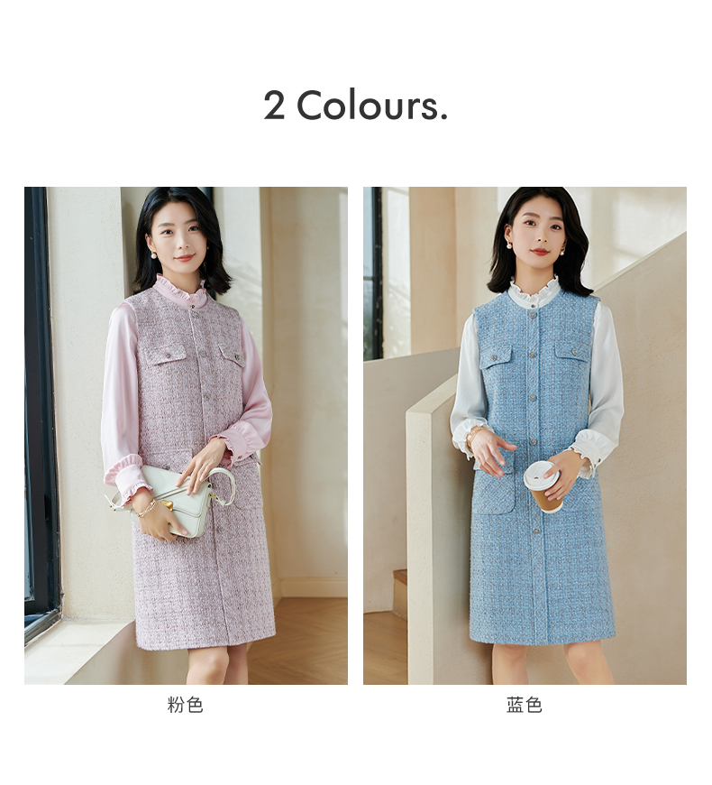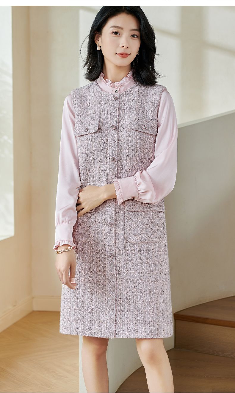 米思阳2026春季小香风羊毛直筒连衣裙无袖百搭打底背心裙女