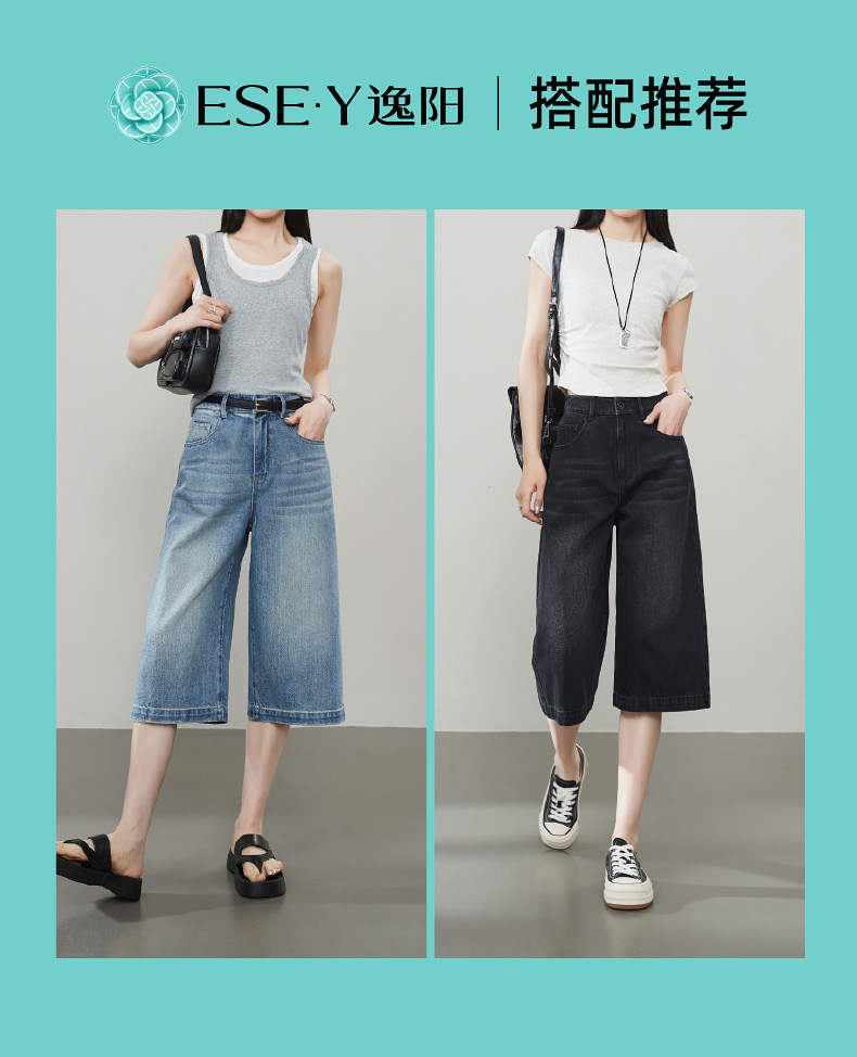 【高阶阔腿中裤】逸阳夏季新款宽松显瘦七分直筒阔腿裤子6370