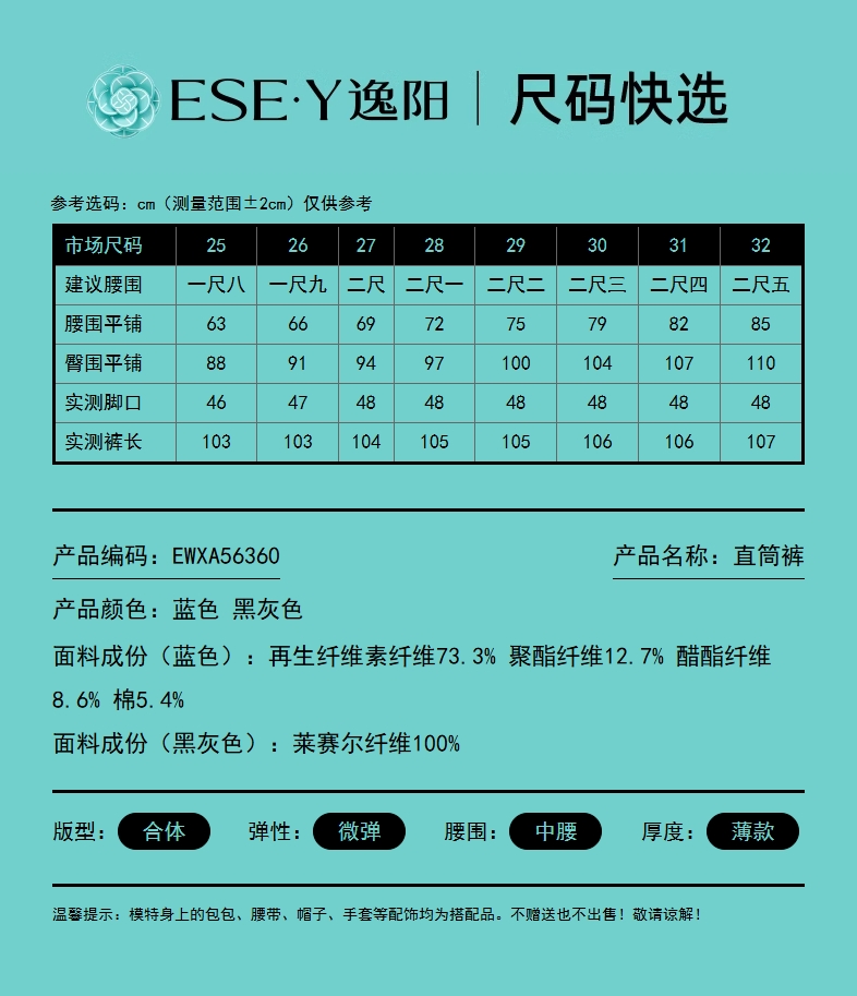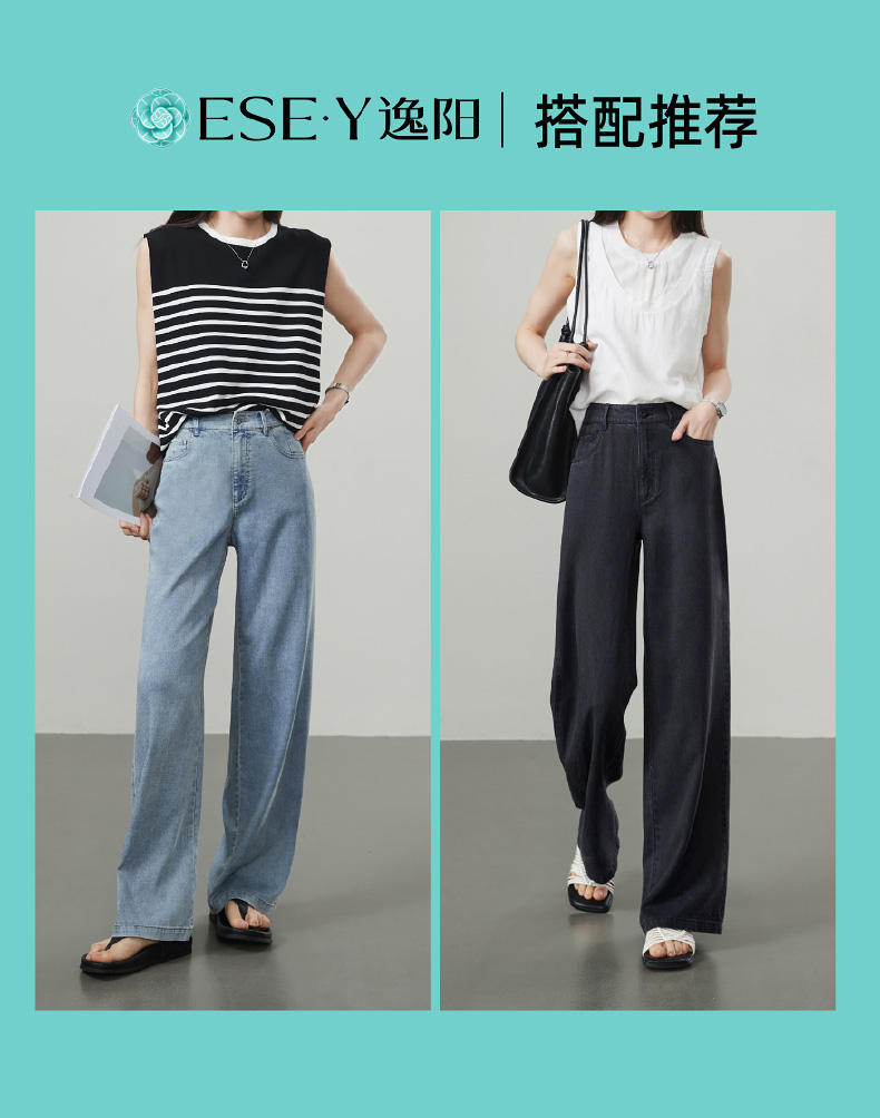【天丝长直筒裤】逸阳夏薄宽松垂坠感窄版阔腿显瘦裤子6360