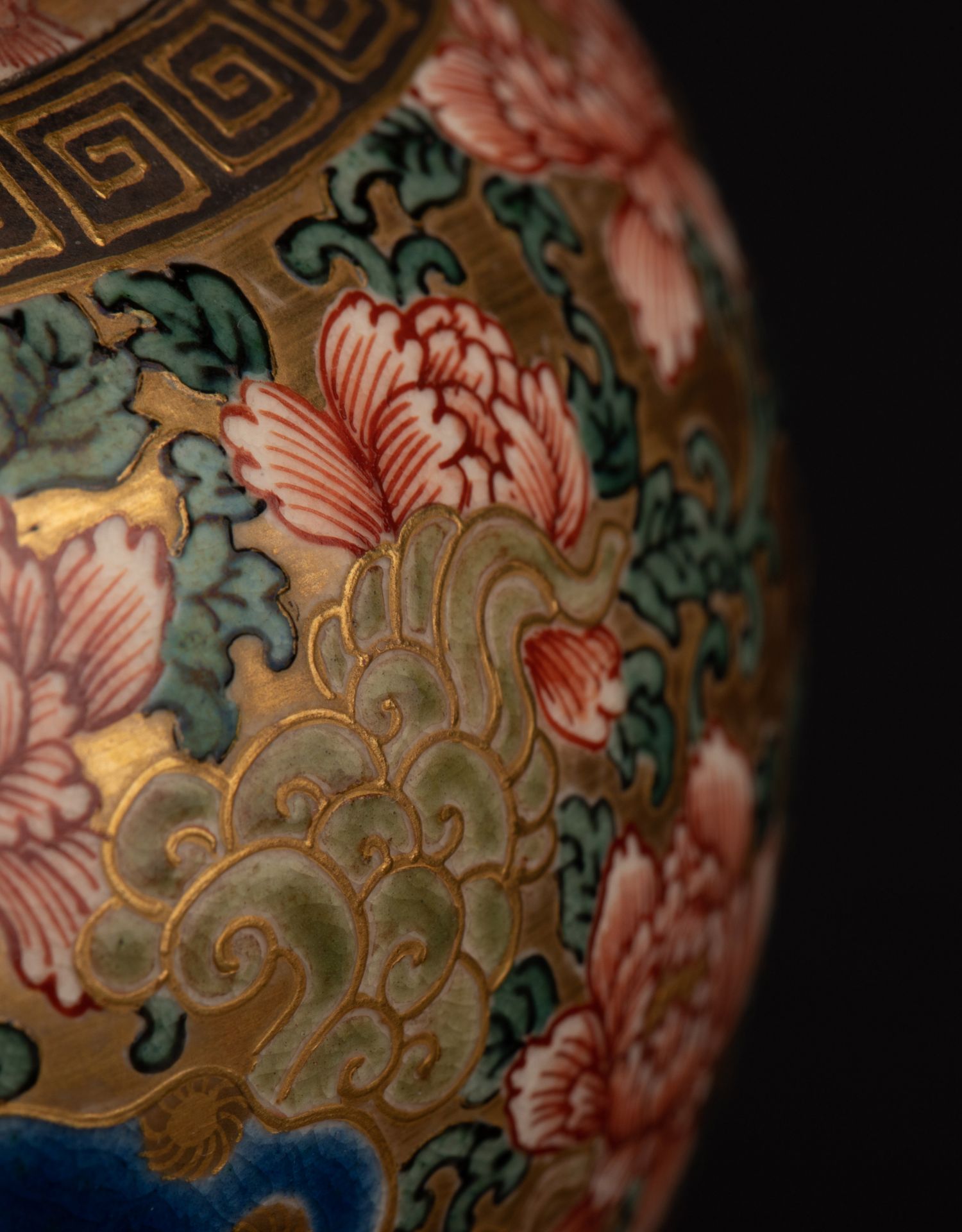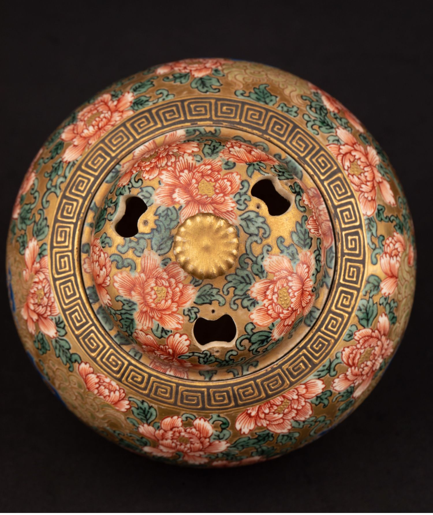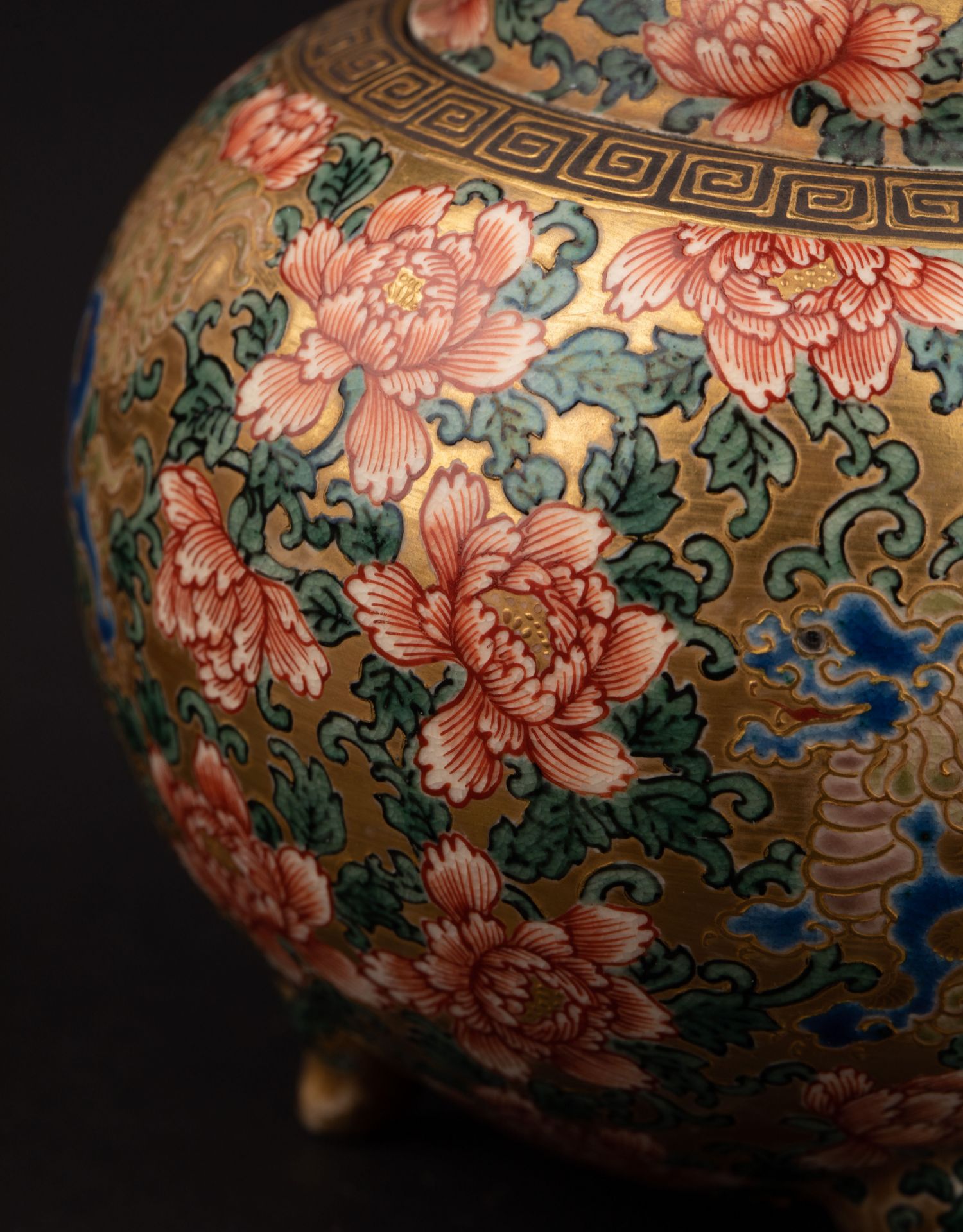 独角鹿西洋古董明治时代日本萨摩烧鎏金手绘菊花香薰炉摆件