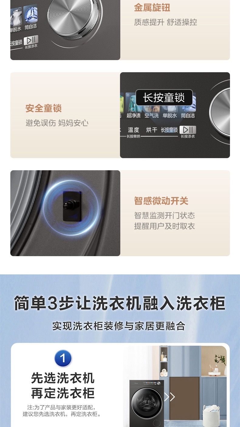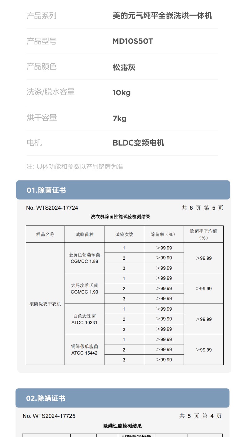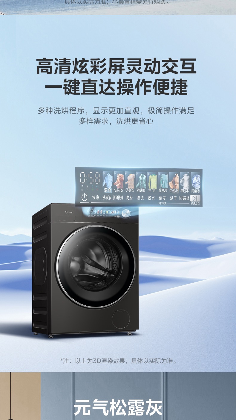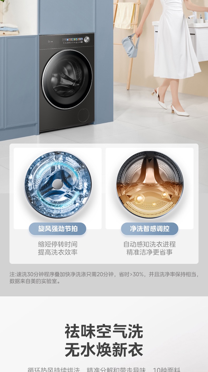 美的(252181)滚筒洗干一体机 MD10S50T 松露灰 220V,1Ph 50Hz 转速1400