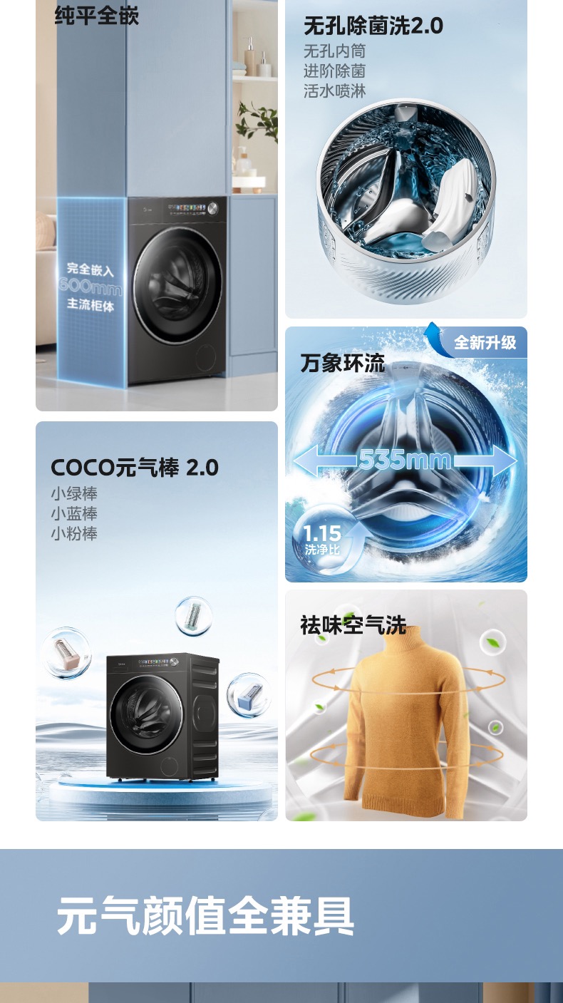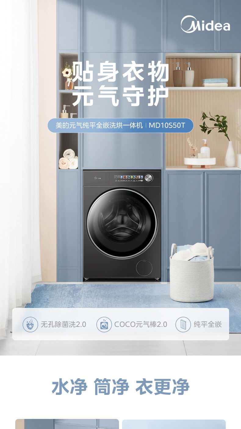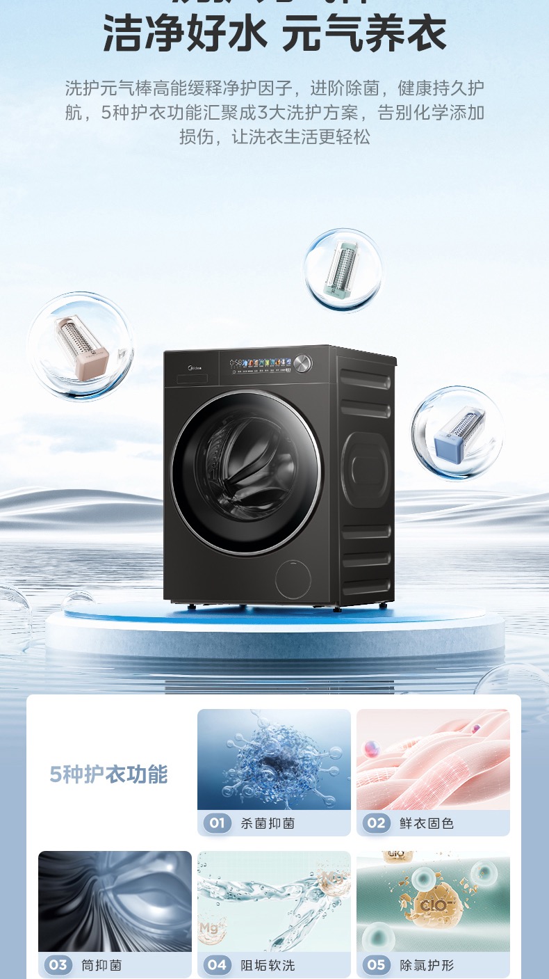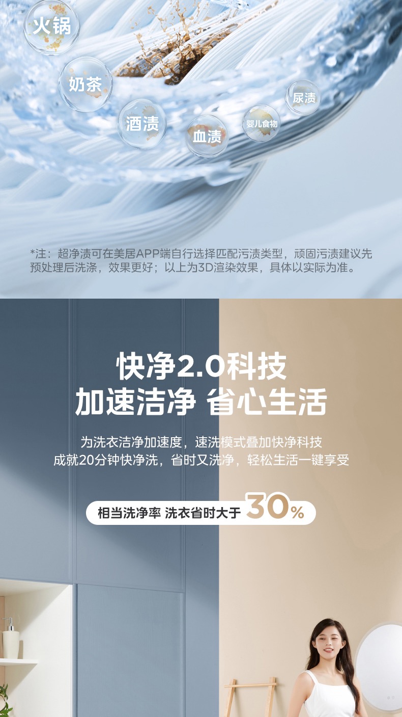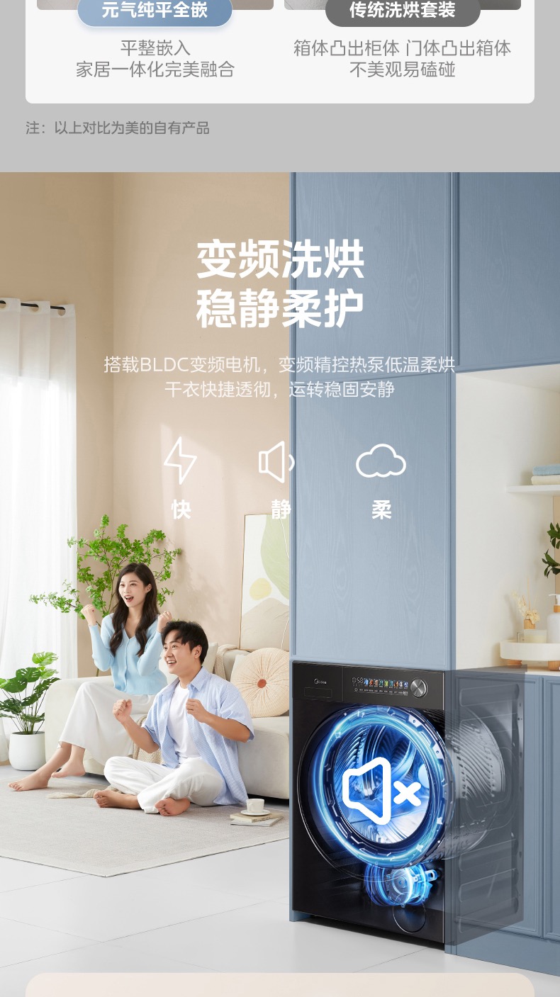 美的(252181)滚筒洗干一体机 MD10S50T 松露灰 220V,1Ph 50Hz 转速1400