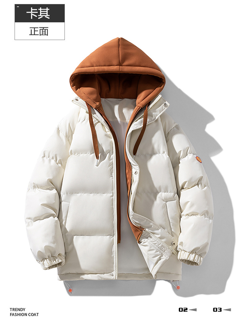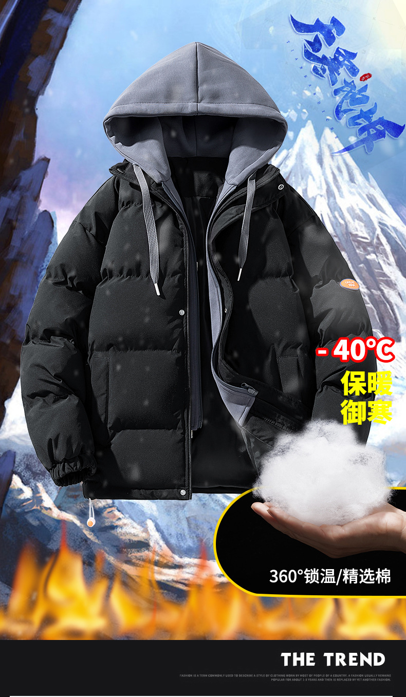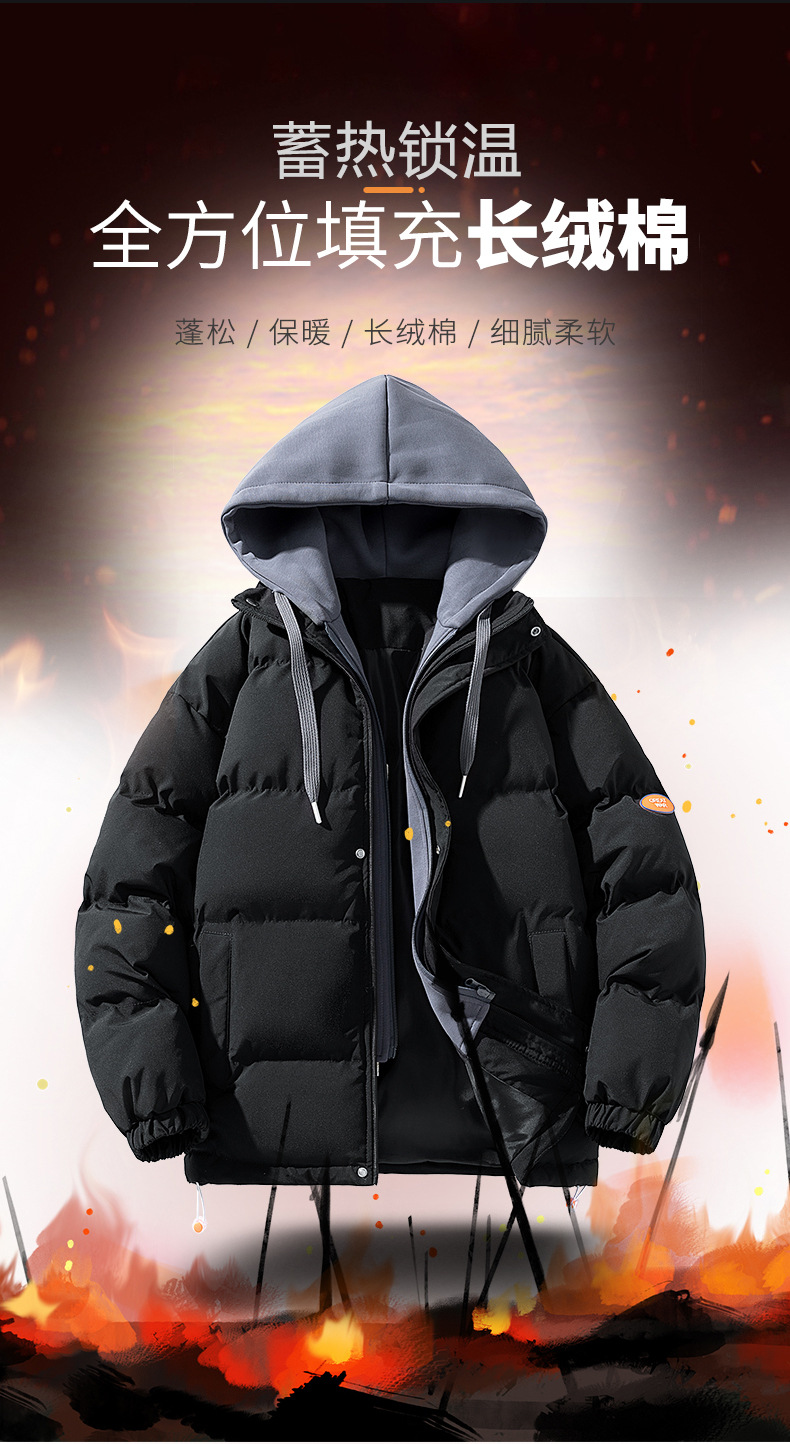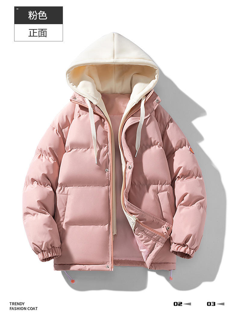 【羽绒棉外套】男女情侣装 冬季潮牌夹棉假两件连帽棉袄 休闲加厚棉服