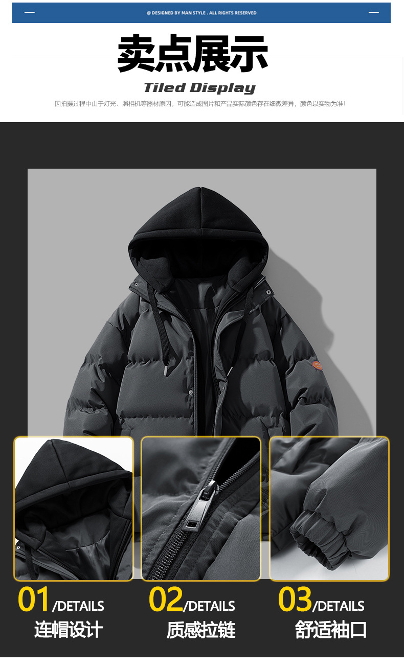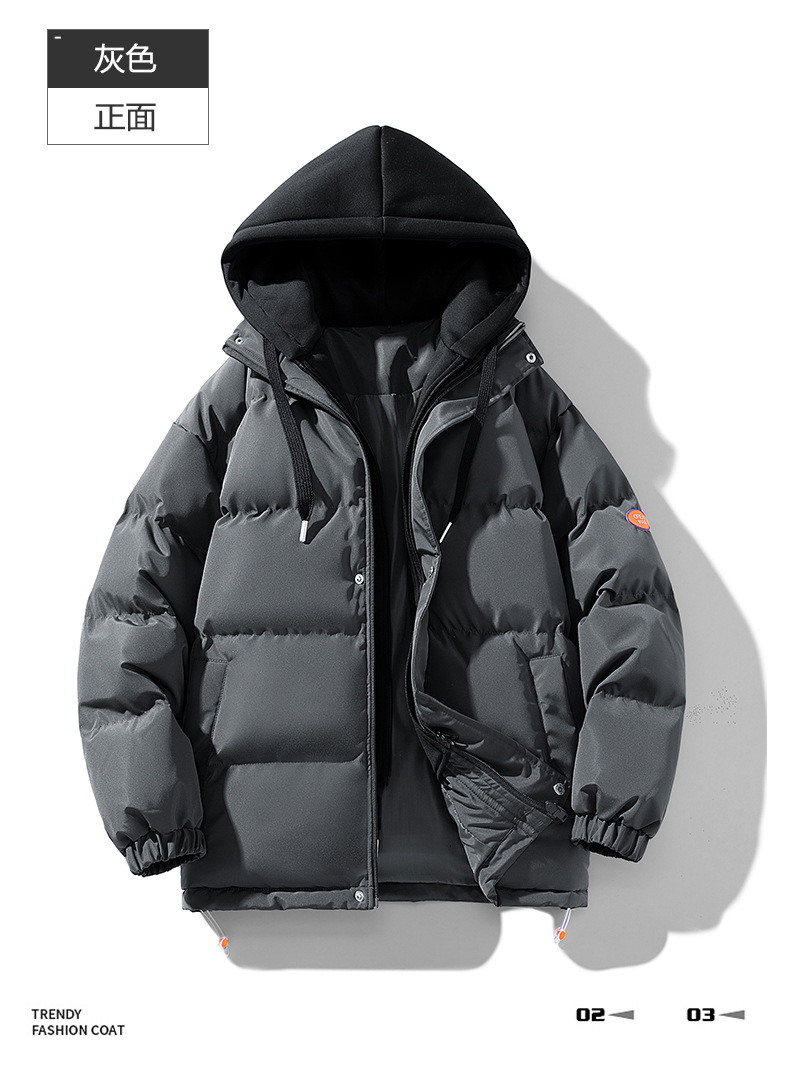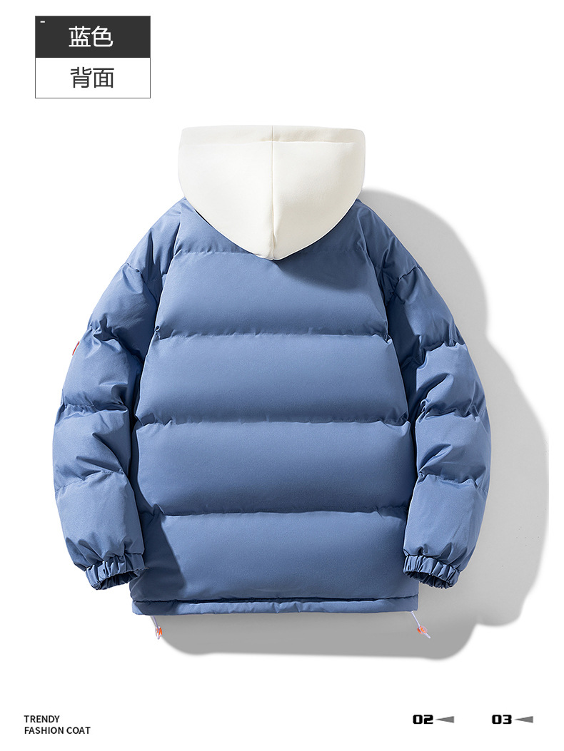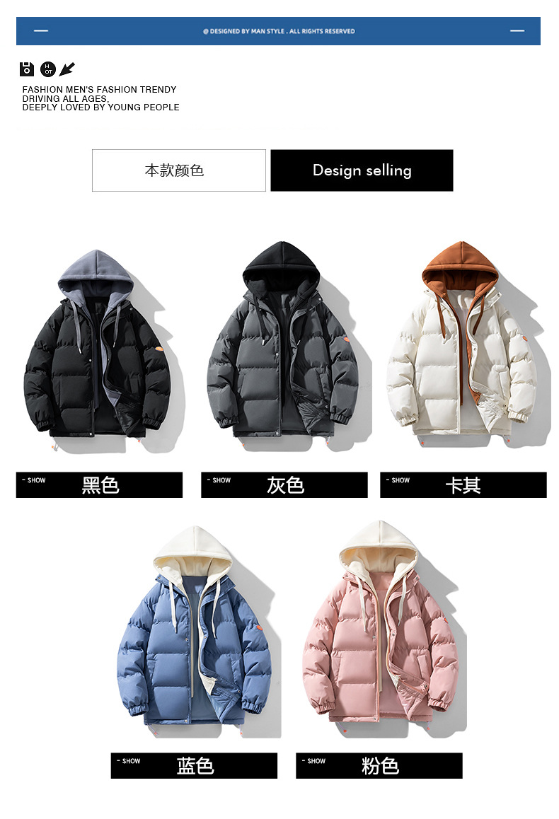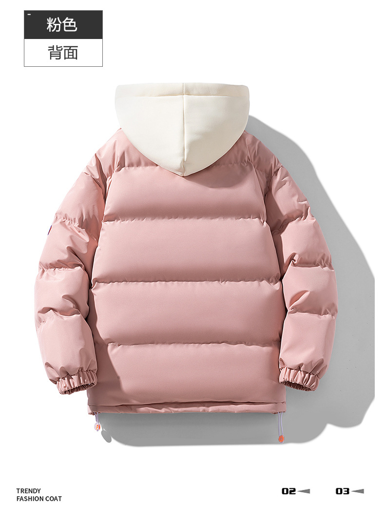 【羽绒棉外套】男女情侣装 冬季潮牌夹棉假两件连帽棉袄 休闲加厚棉服