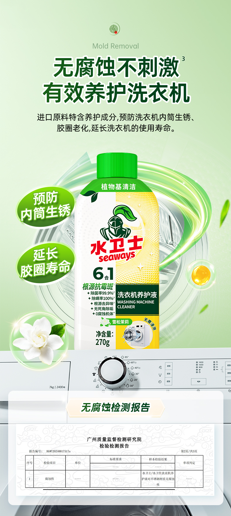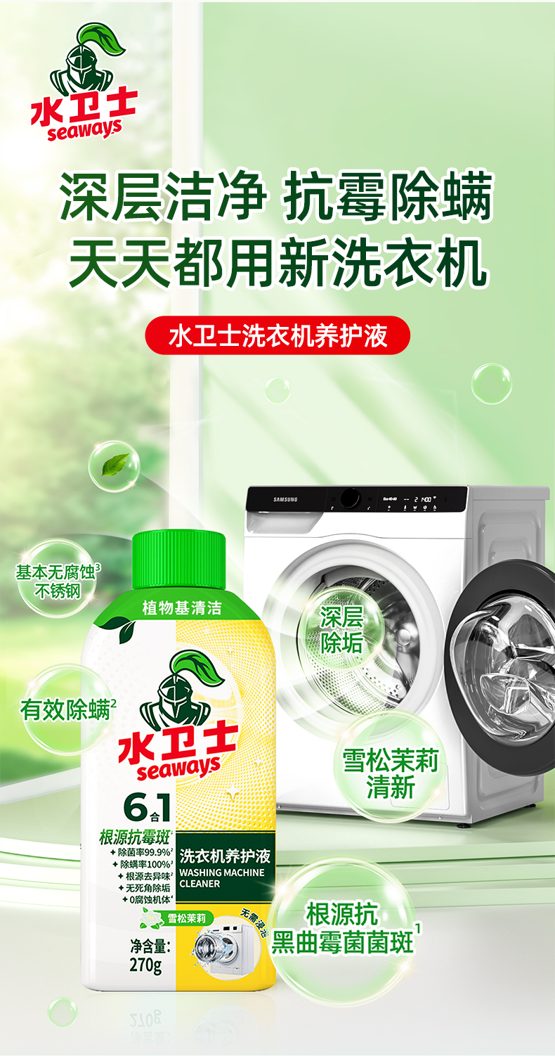 【供货特惠】『水卫士洗衣机养护液』洗衣机深层清洁除菌除螨防霉免浸泡免拆除
