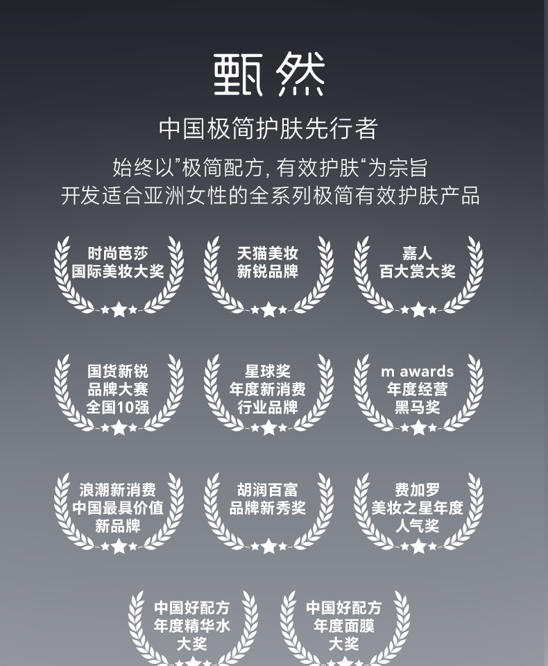 - 甄然倡导简单(simple)、健康(health)、自然(nature)理念的护肤品牌,用心甄选有效成分,通过极简配方与设计,回归肌肤本源之美。