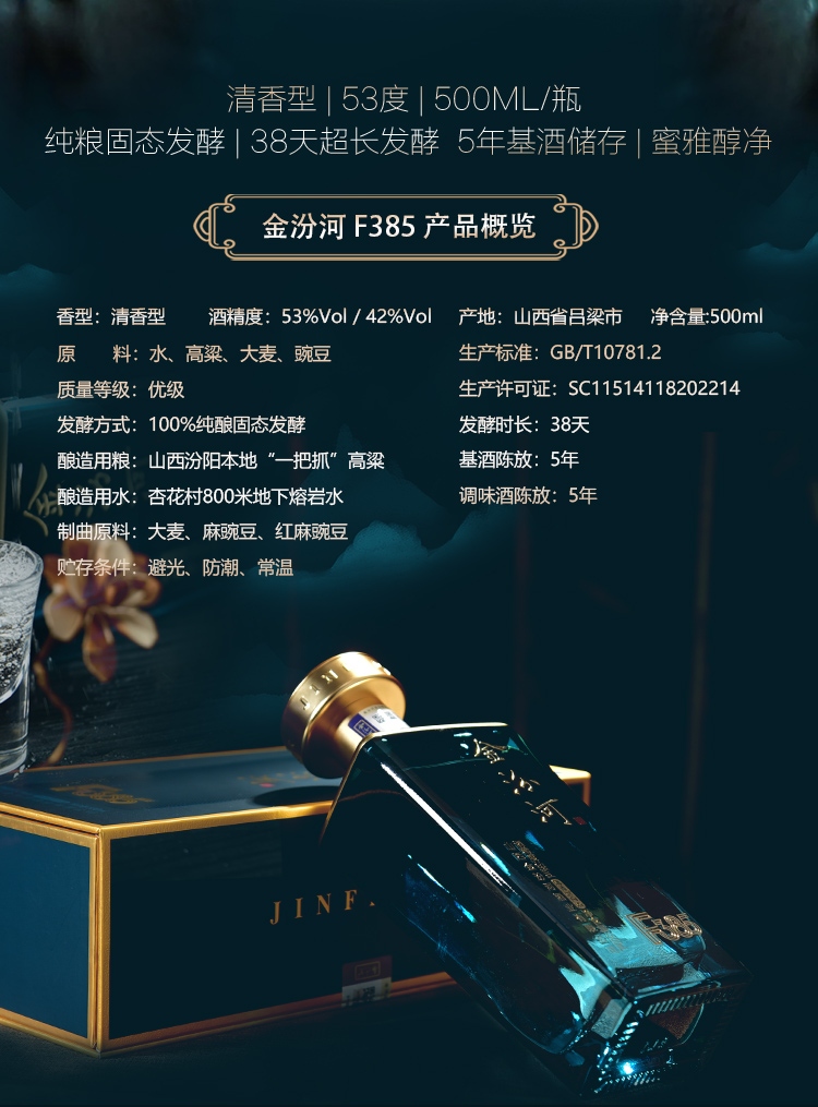 金汾河F385 清香型白酒 53度500ml/1瓶