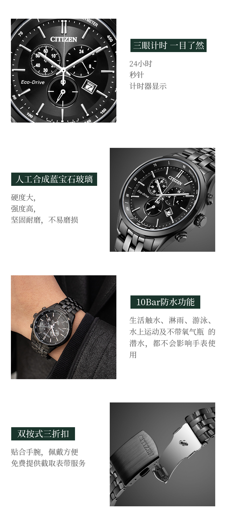 西铁城(CITIZEN)光动能男表防水钢带简约商务休闲款AT2149-85X