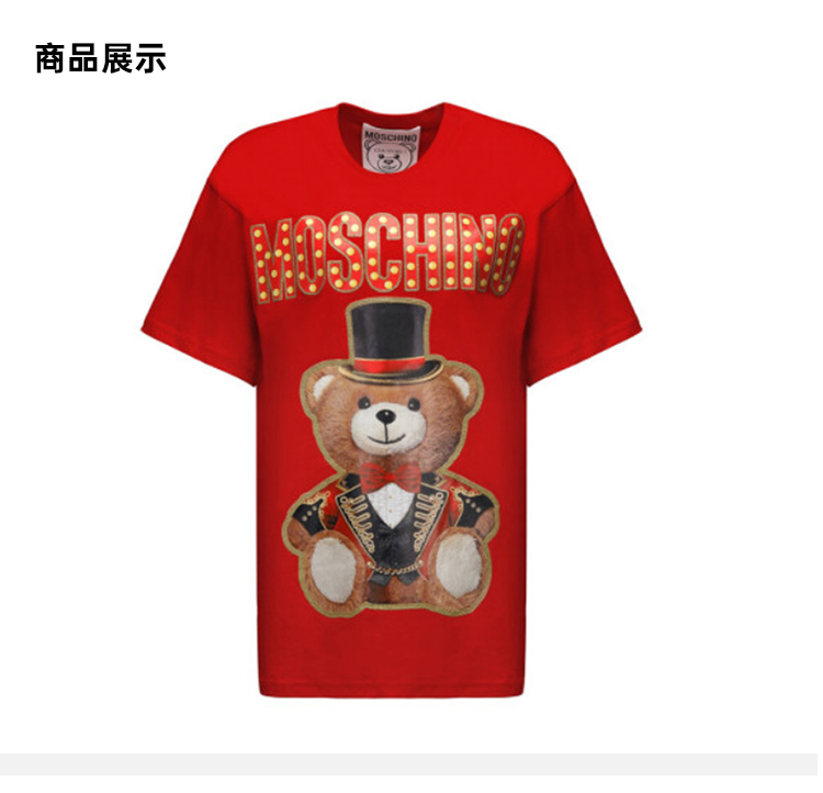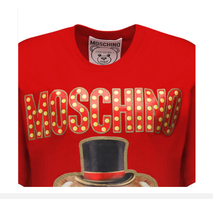 MOSCHINO COUTURE 莫斯奇诺 圣诞熊女士T恤 字母图案 红色 0702 0540 3115