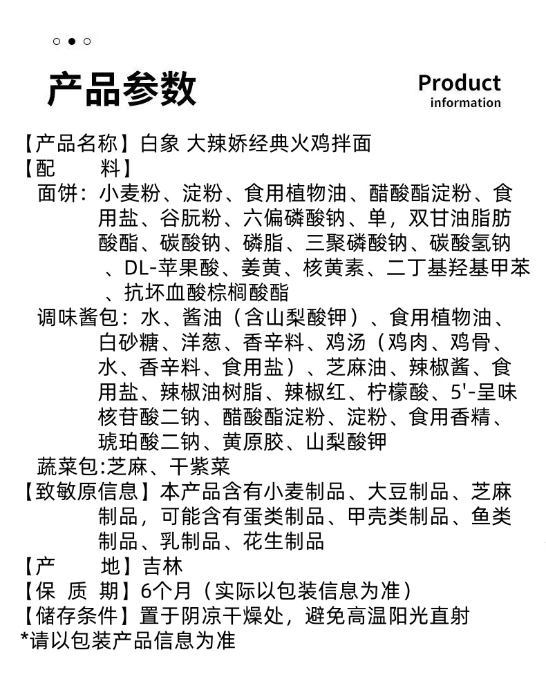 白象 大辣娇经典火鸡拌面119g*5袋/包
