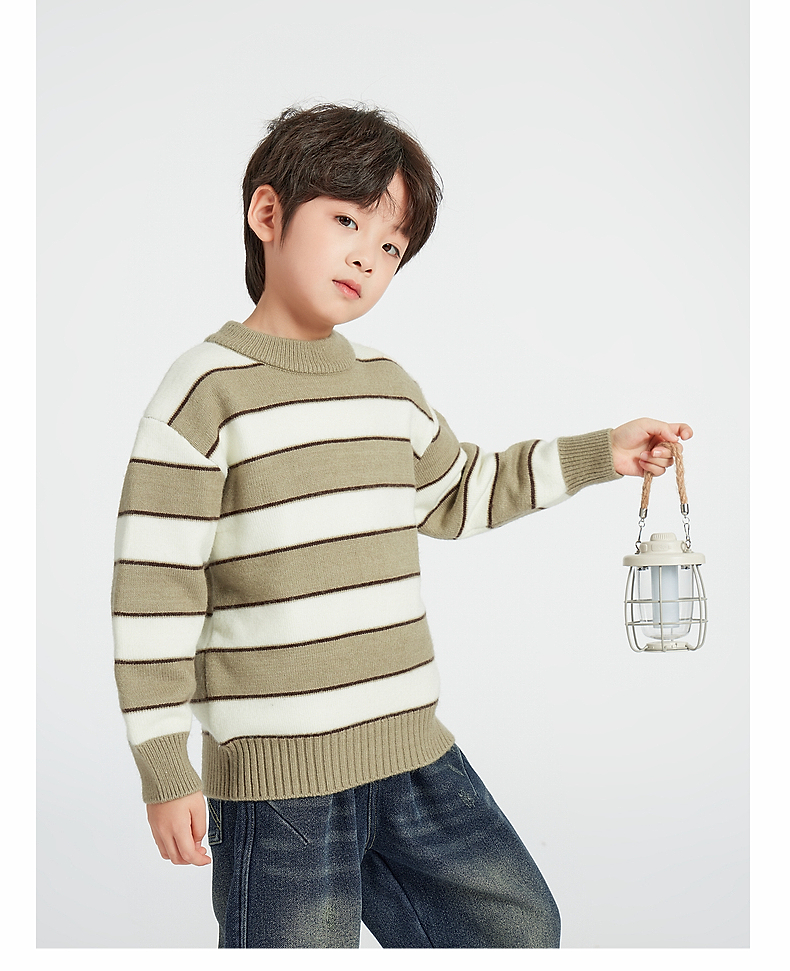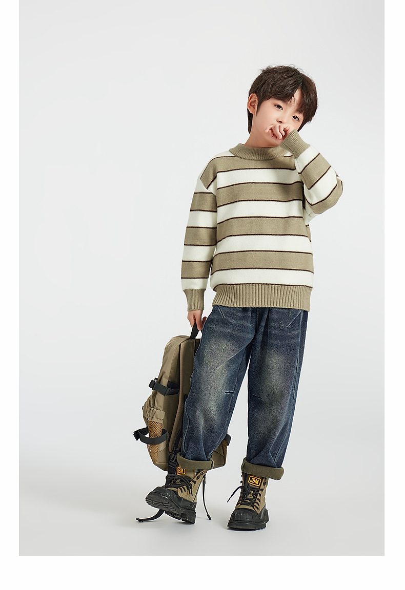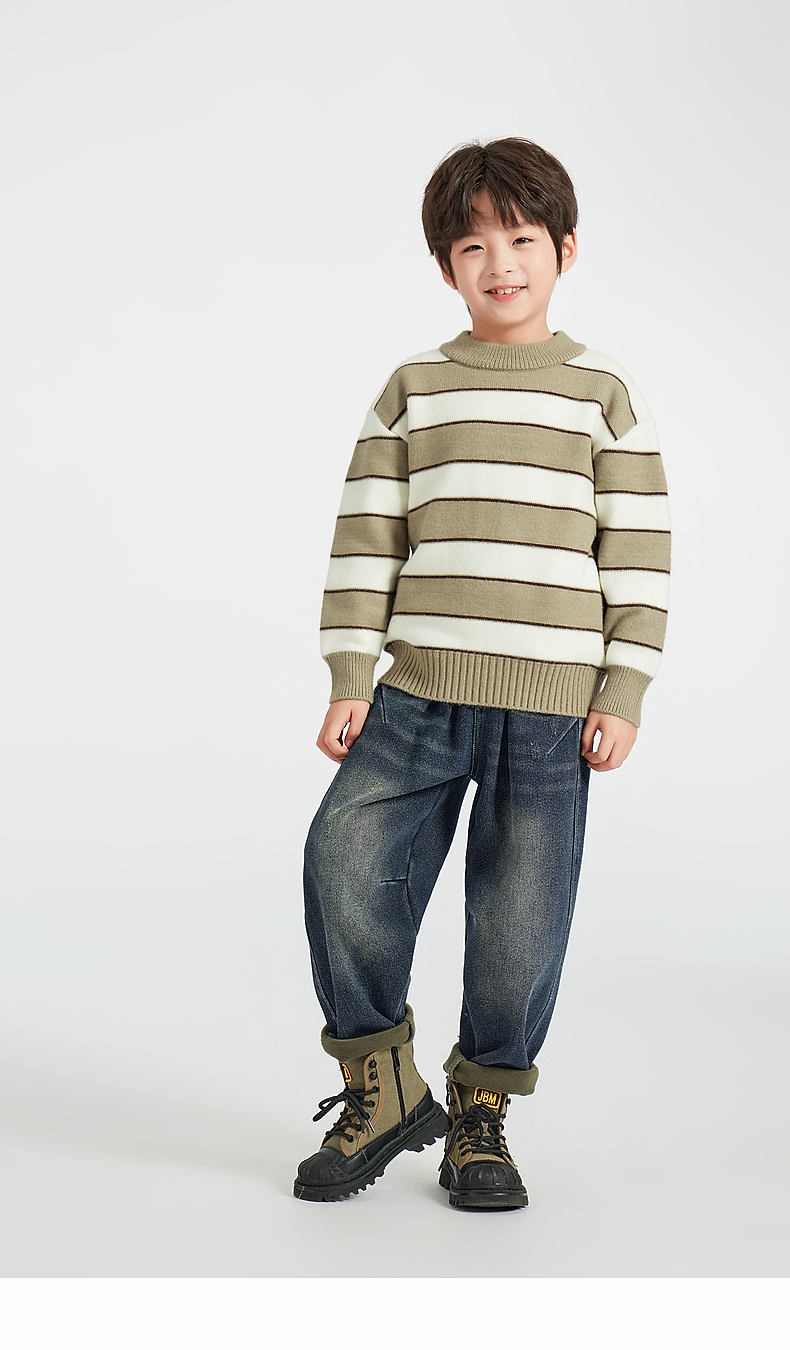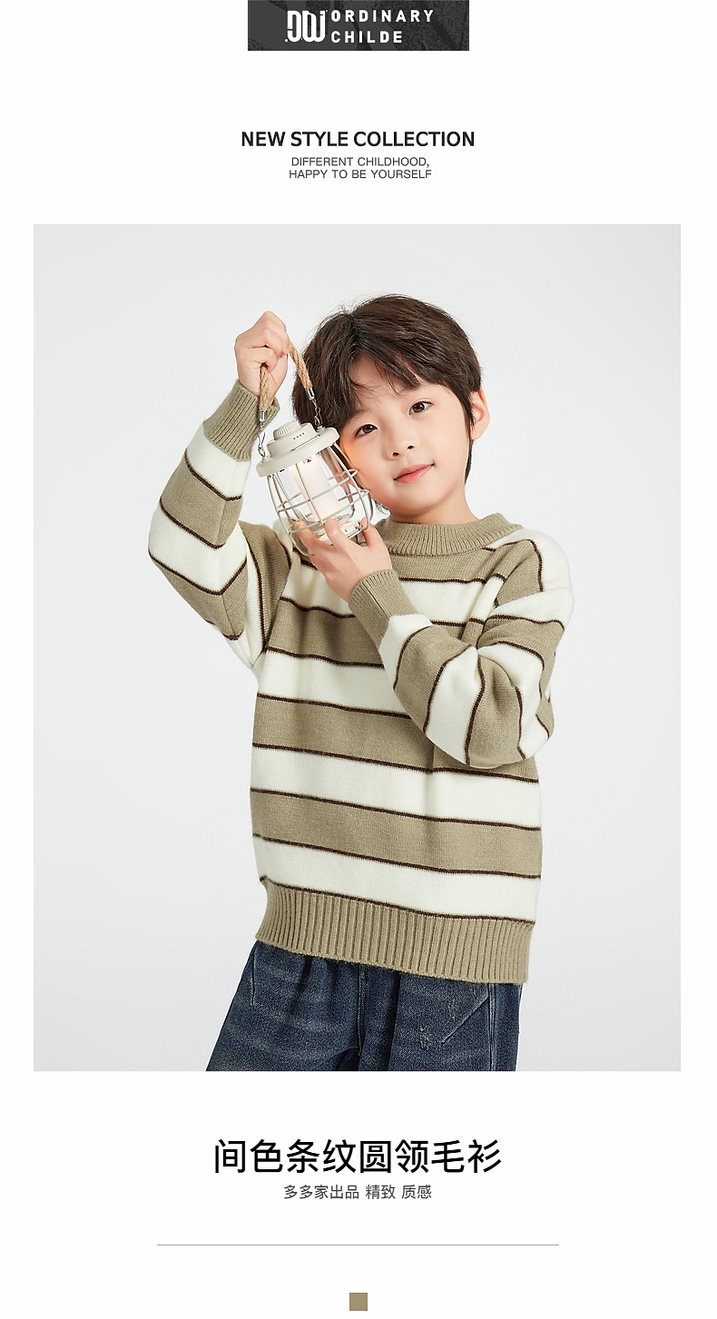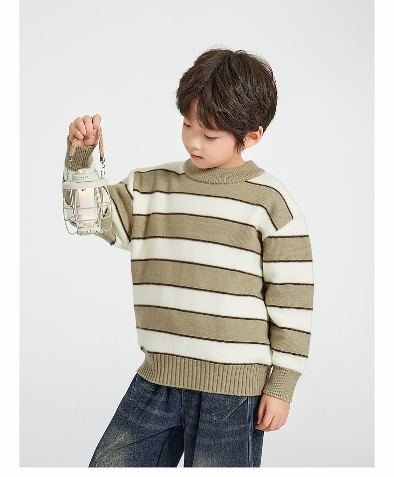 【团购价59.9】多多家男童毛衣针织衫2024新款秋冬款冬装儿童中大童加厚条纹上衣9745