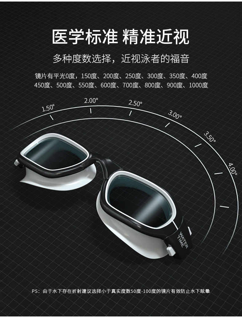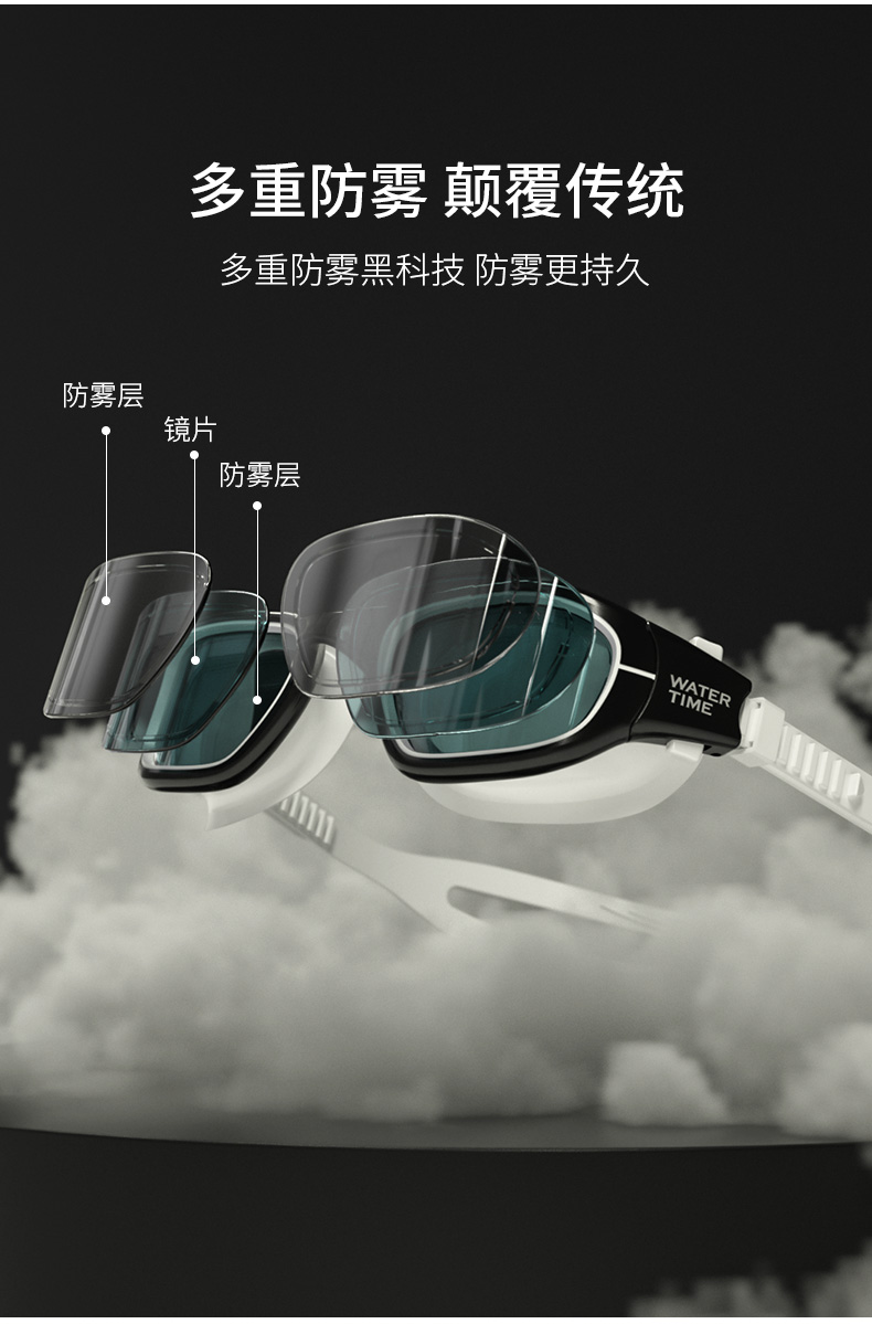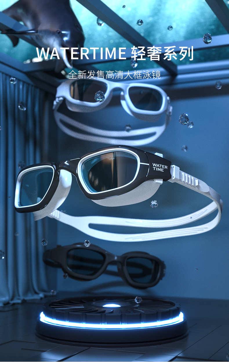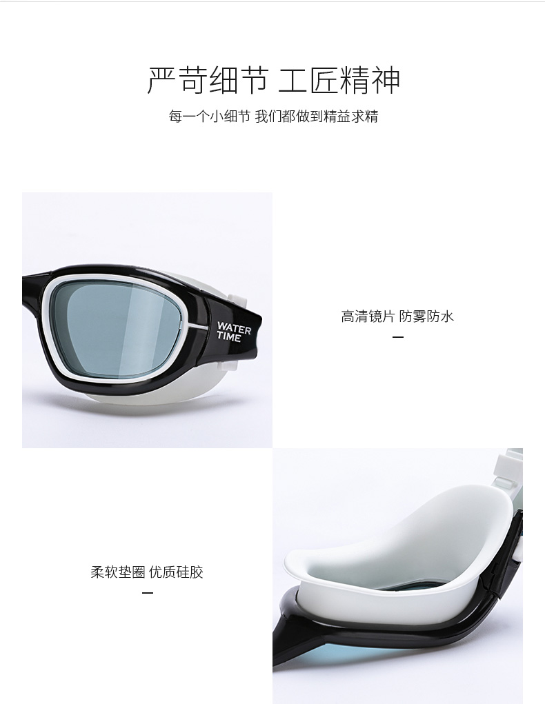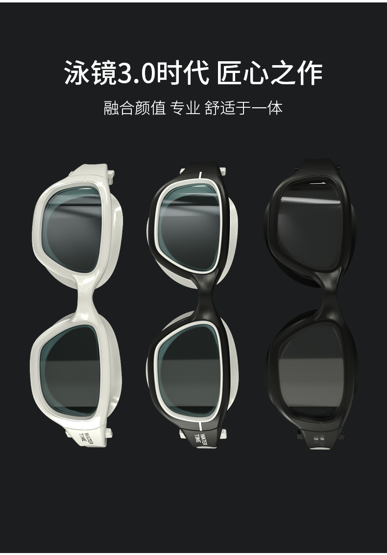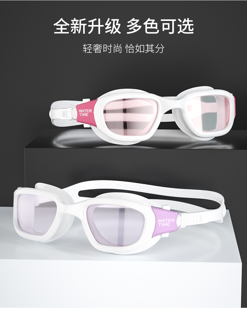WaterTime 泳镜 防水 防雾 高清 大框 男女 游泳 眼镜 帽套装 专业 包邮