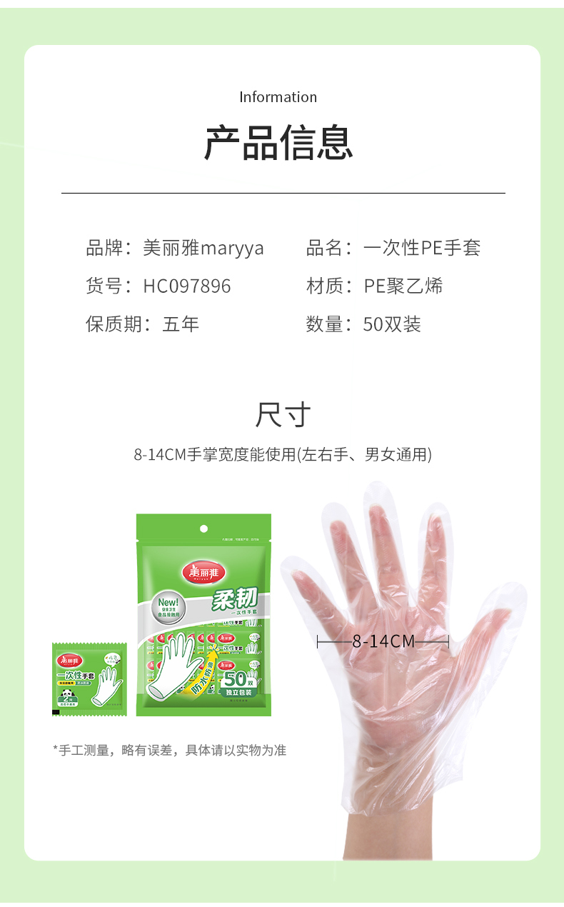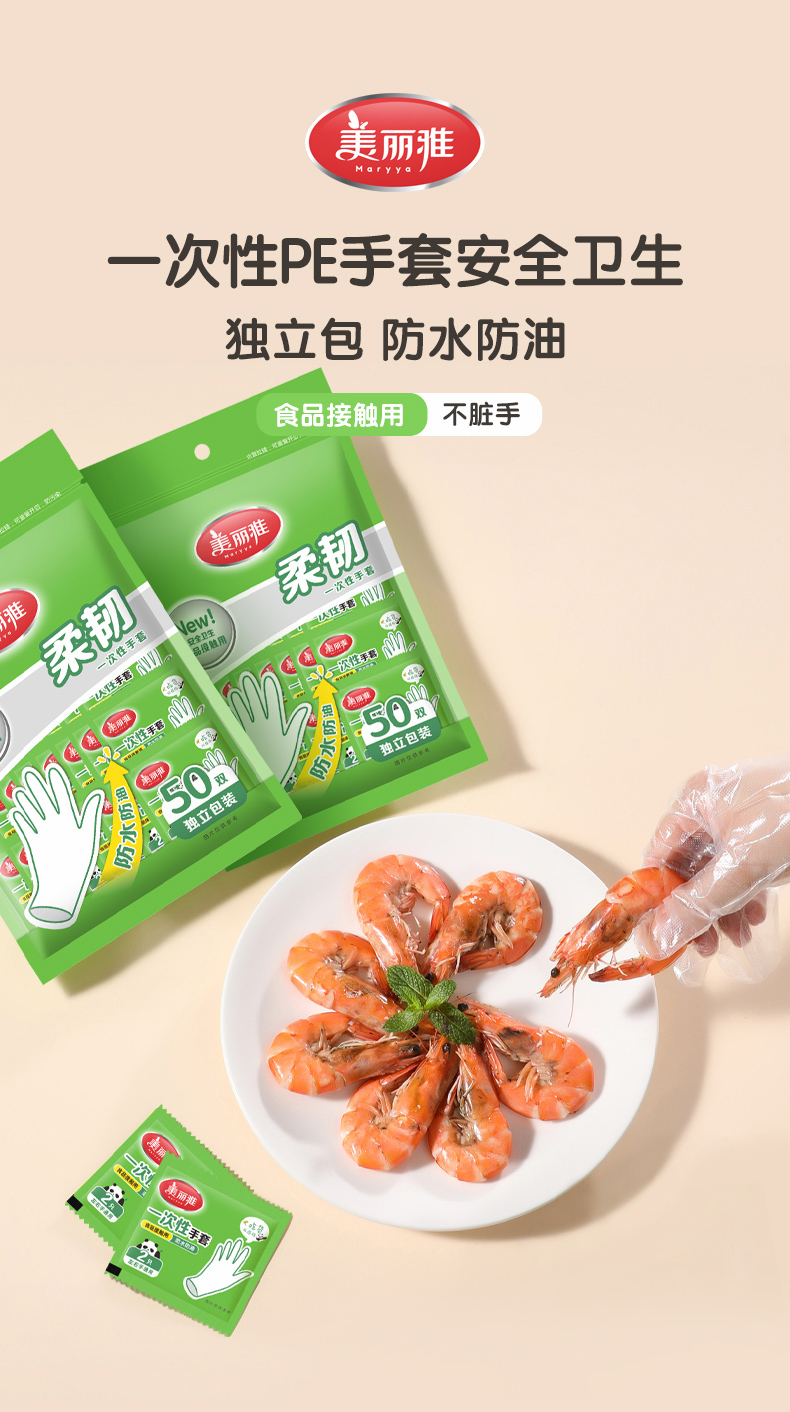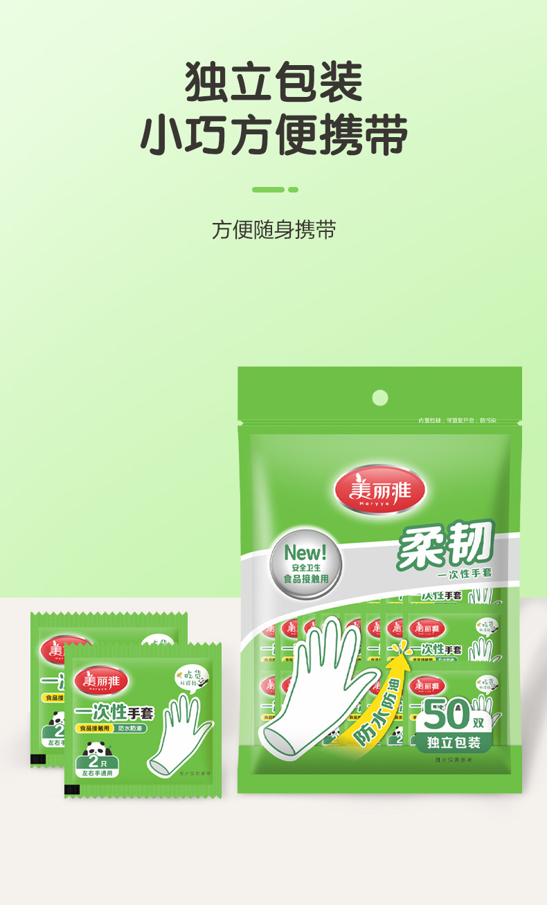 【批发】美丽雅一次性手套加厚防破独立包装 50包/袋