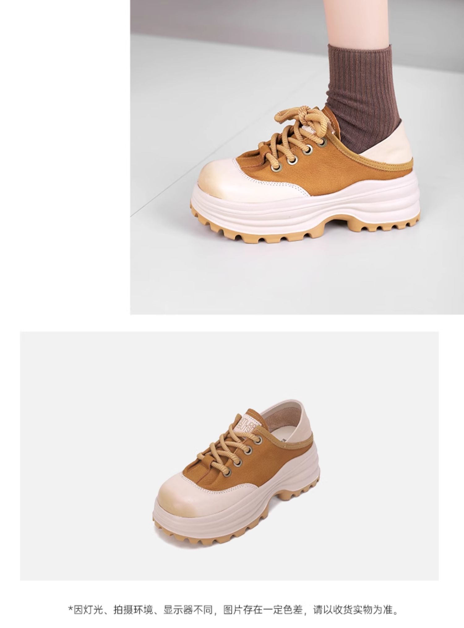西村名物2024夏季新品真皮百搭厚底增高复古运动鞋防滑休闲鞋女T24AM13621