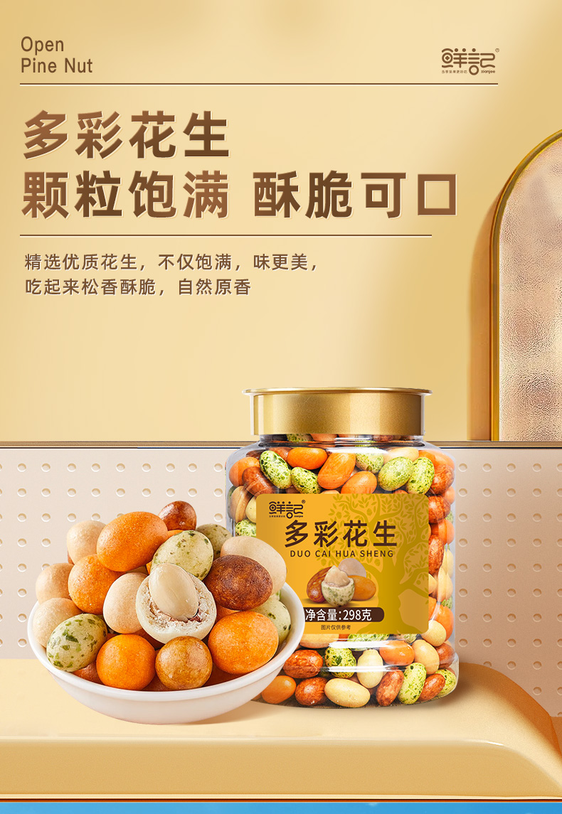 鲜记 多彩花生298g 博士帽罐装 酥脆爽口 颗粒饱满 高温烘烤 非油炸零食 48小时发货