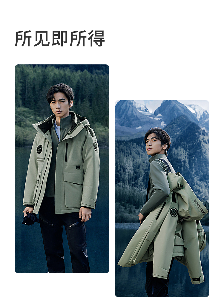 B30142327波司登2023冬季新款男户外轻量科技极寒鹅绒连帽羽绒服