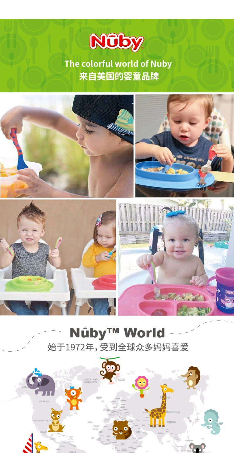 Nuby努比宝宝餐具不锈钢叉勺套装 婴儿餐具勺子喂养勺叉子三件装NUB-55715