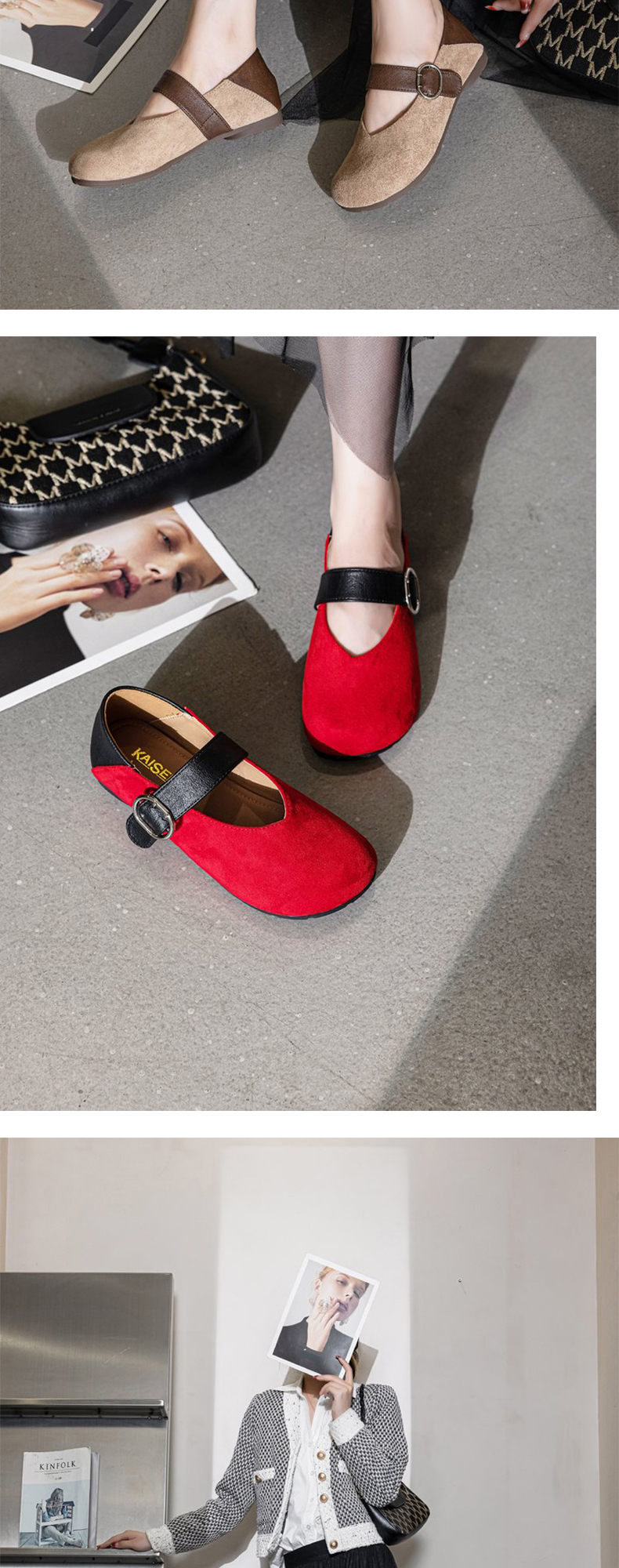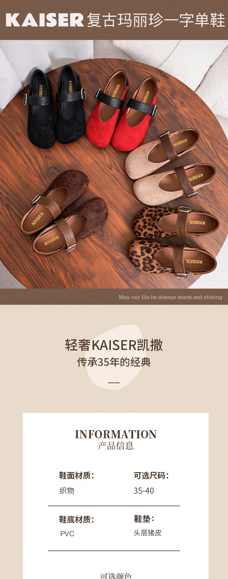 积分兑换【法式优雅,时髦百搭】2025年秋季新款女凯撒KAISER复古圆头法式玛丽珍绒面一字带浅口单鞋#异业福利