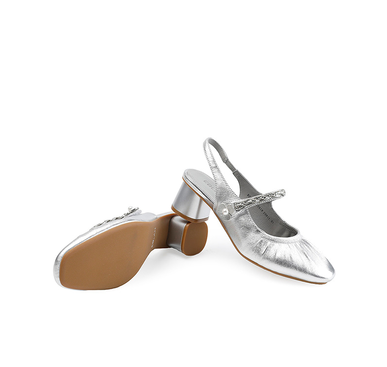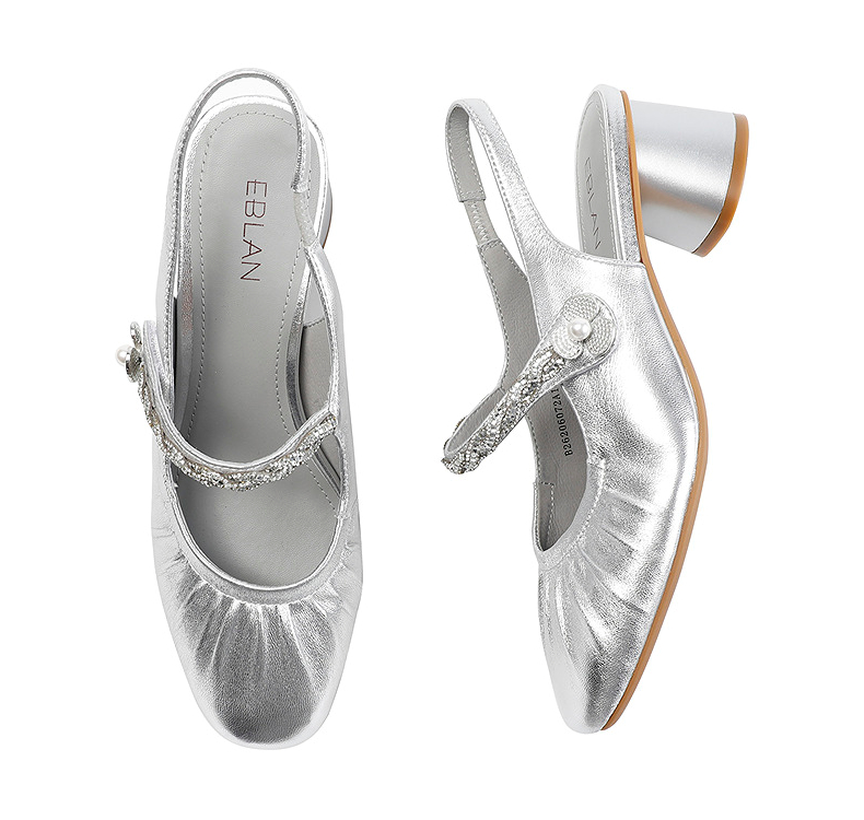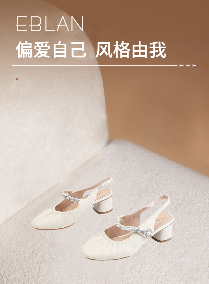 【上新】伊伴2026夏季甜美减龄扭结水钻饰带后空玛丽珍皮鞋B26206072