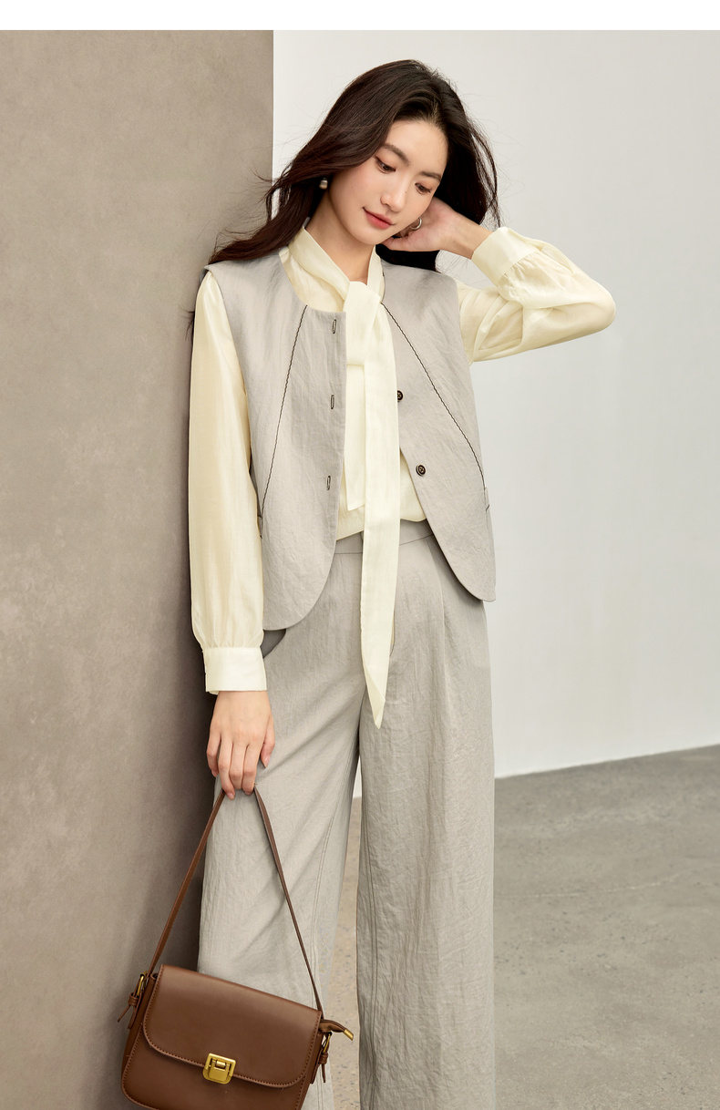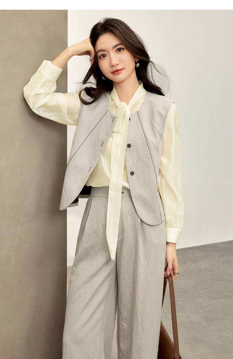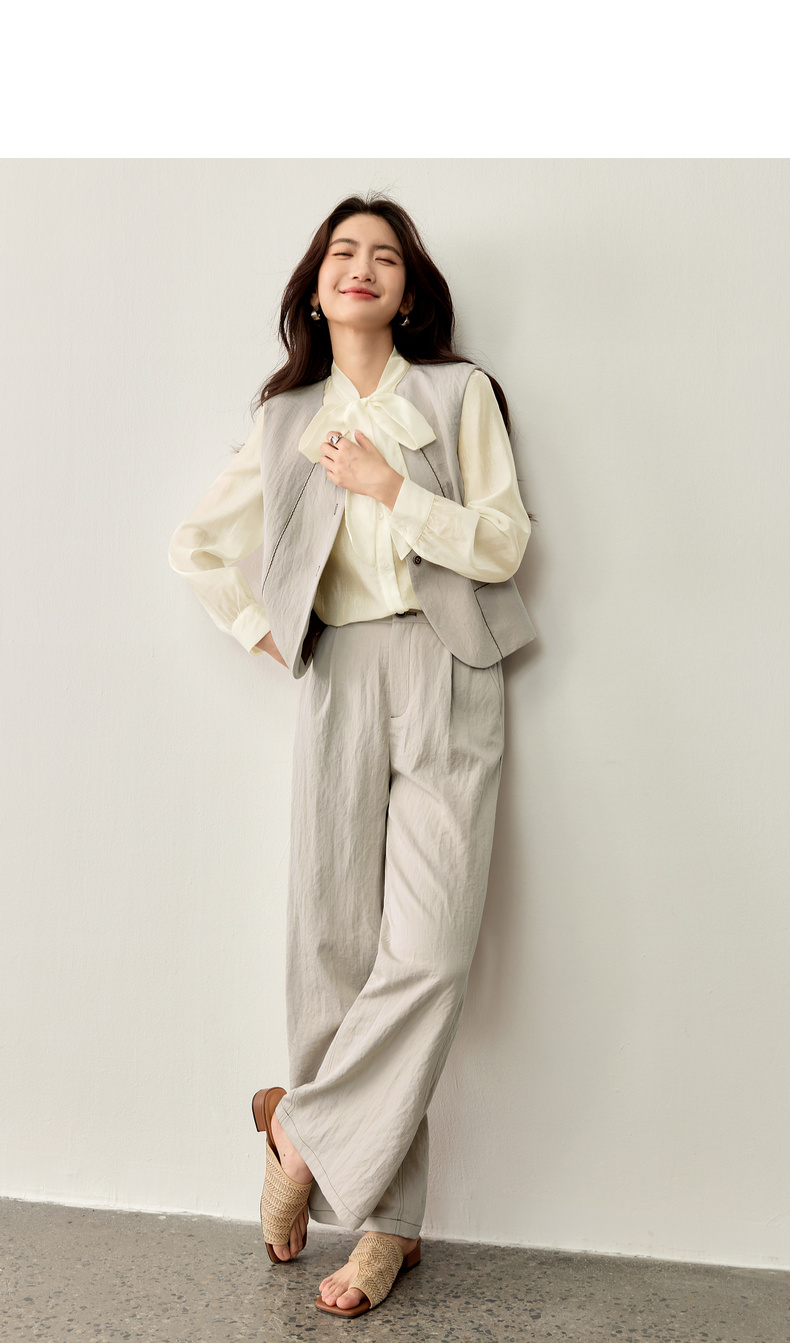 【内购】【懒人三件套】通勤圆领马夹&飘带领莱赛尔衬衫&松紧腰直筒长裤-W53ZA2568