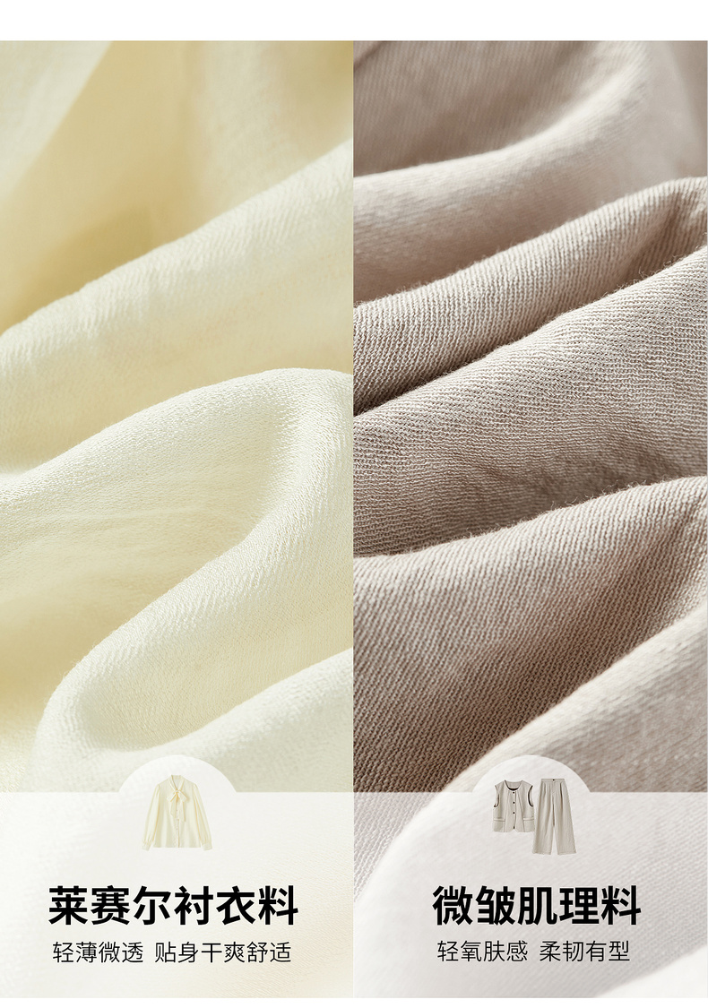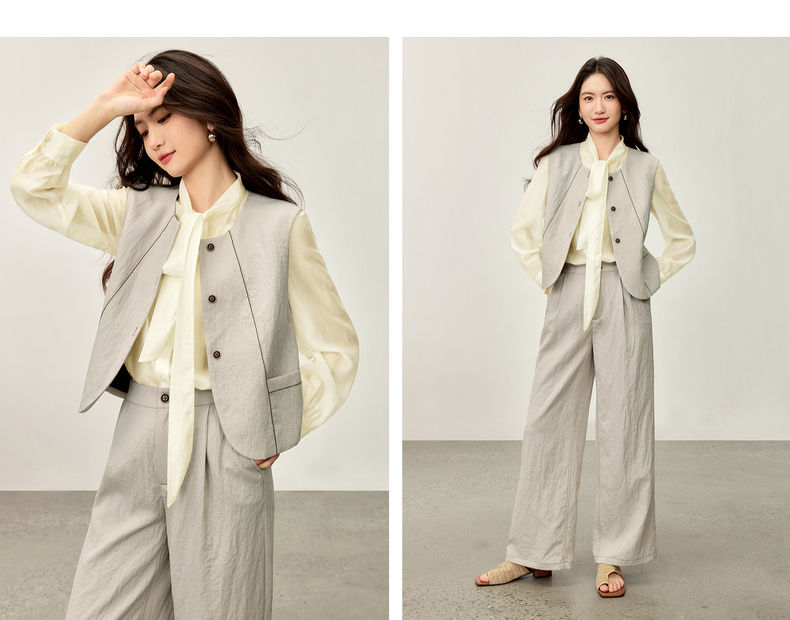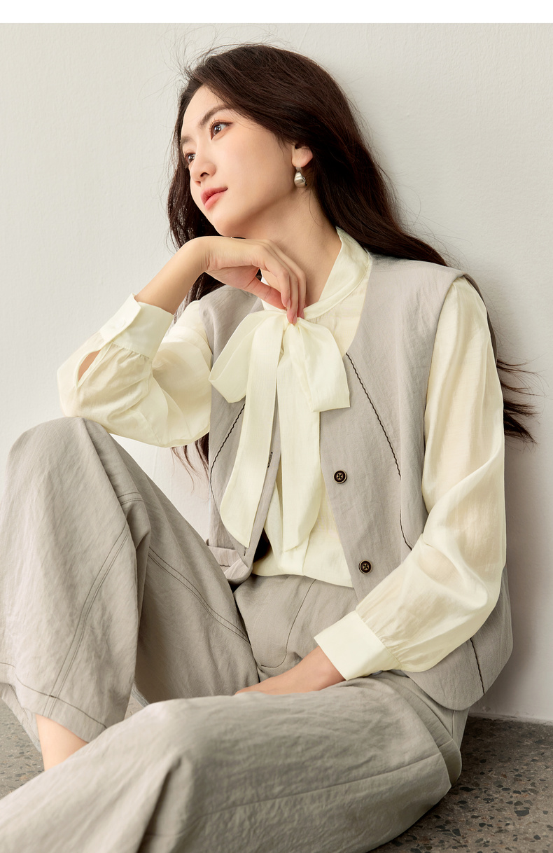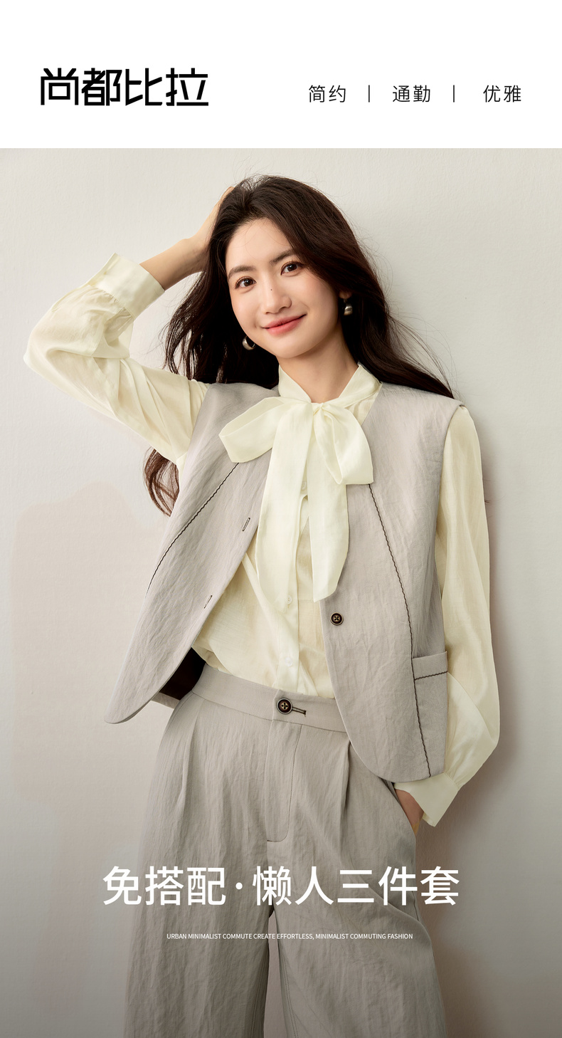 【内购】【懒人三件套】通勤圆领马夹&飘带领莱赛尔衬衫&松紧腰直筒长裤-W53ZA2568