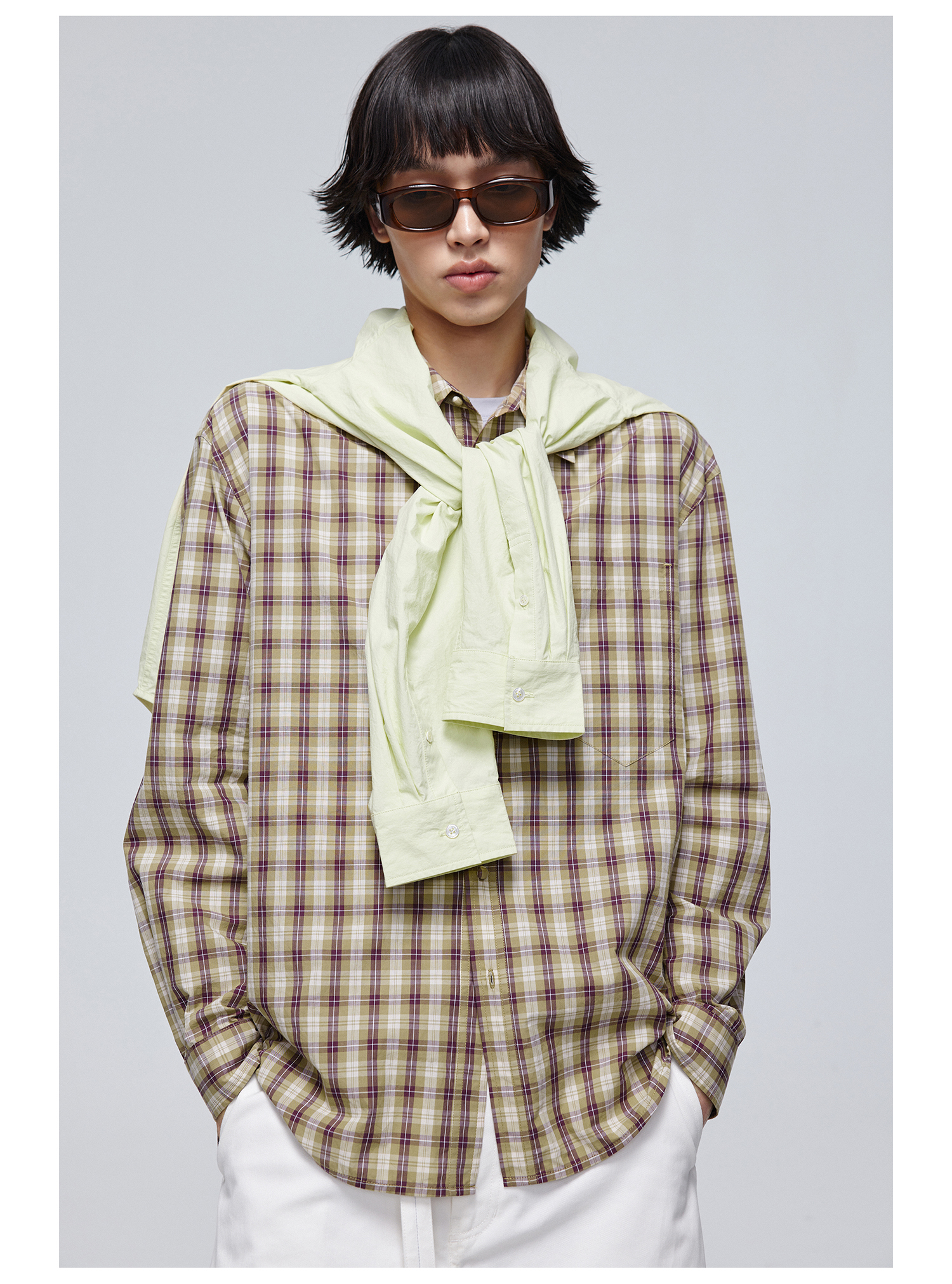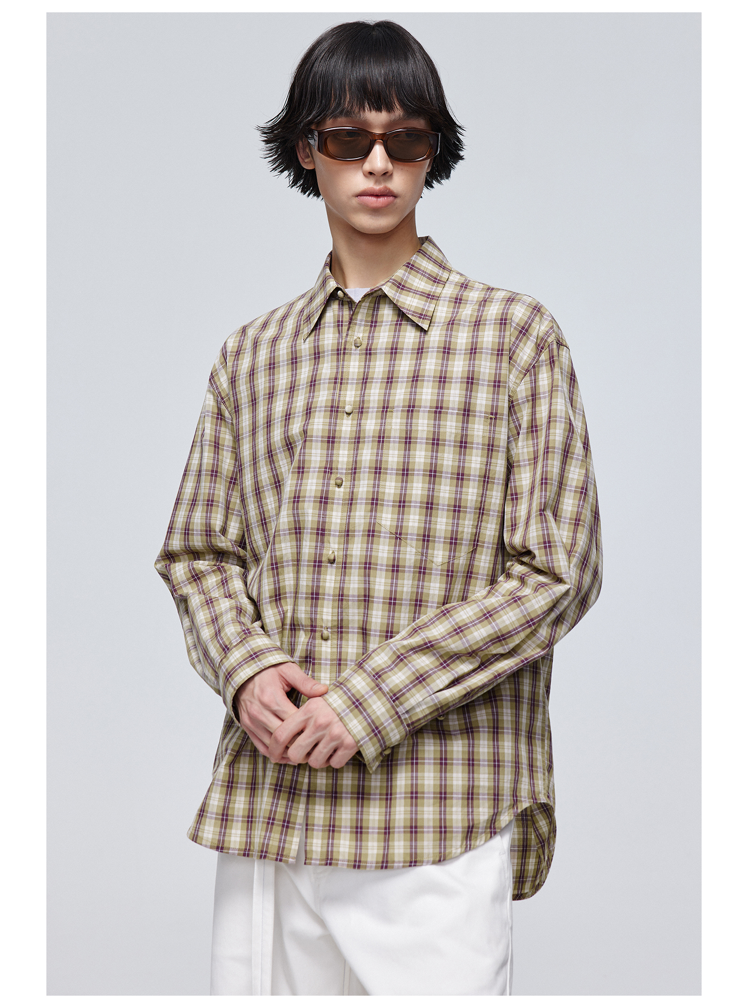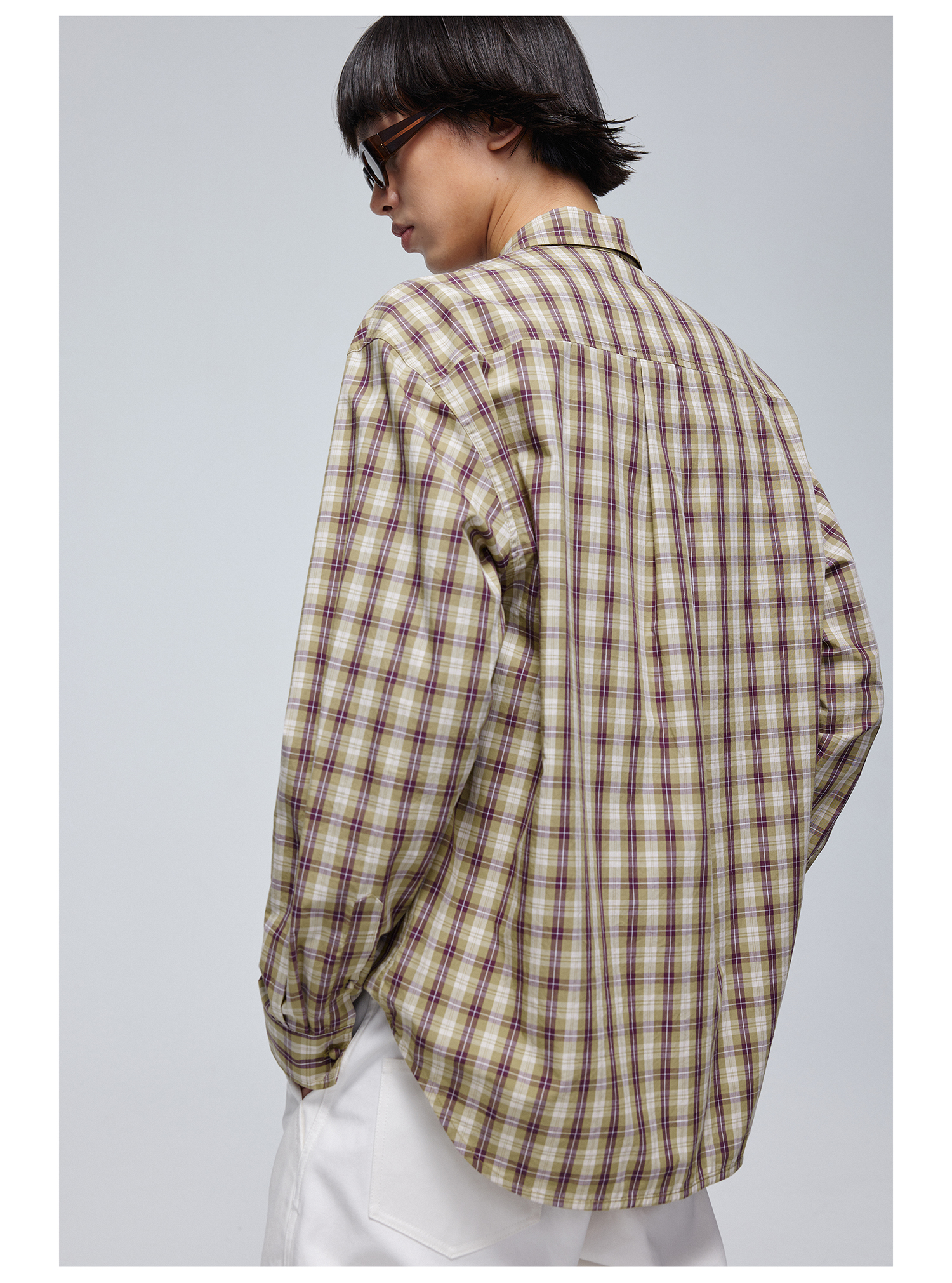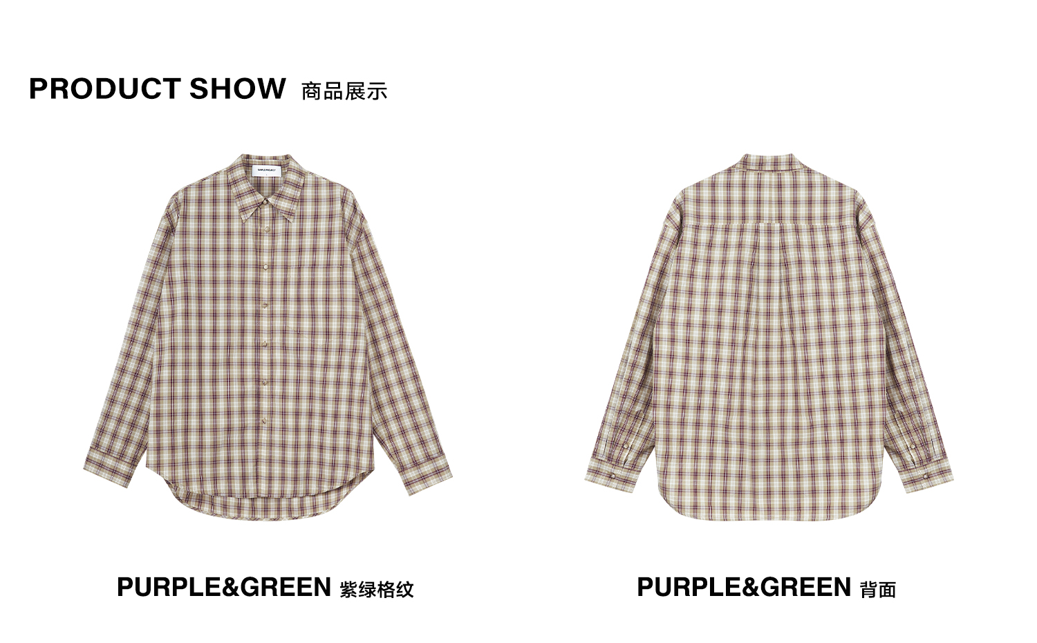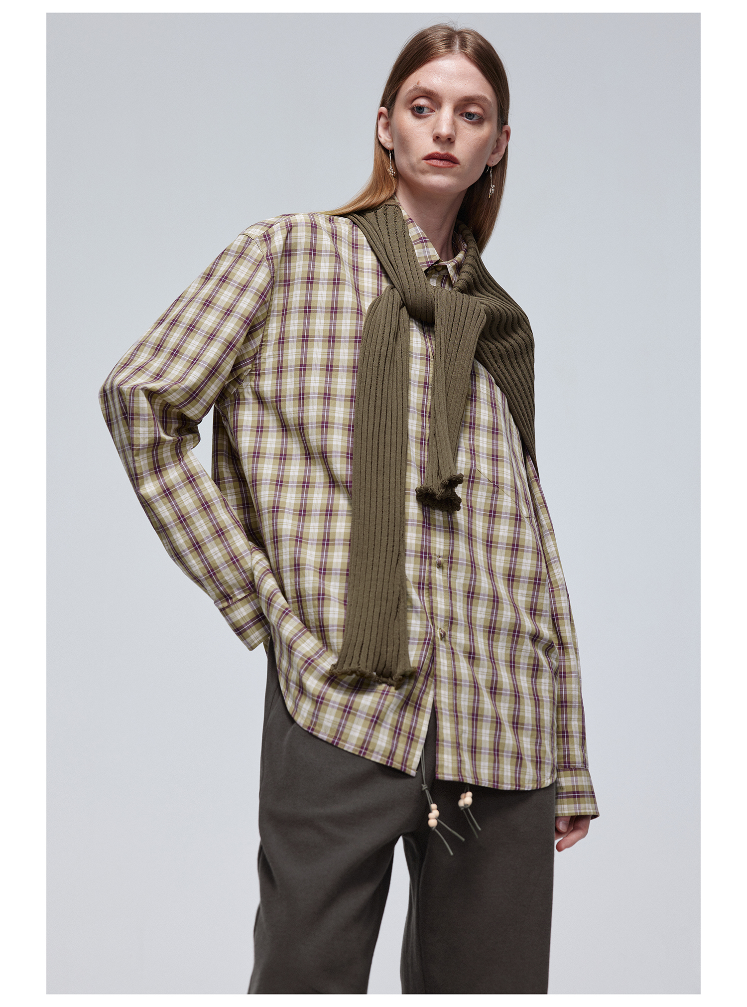 Simple Project/Y24120/绿紫格纹布包扣廓形长袖衬衫