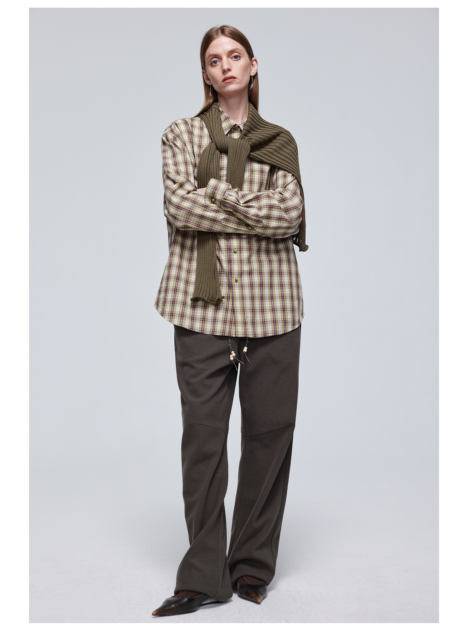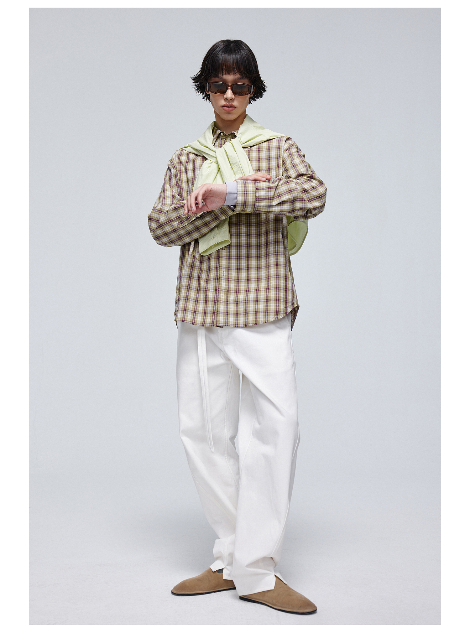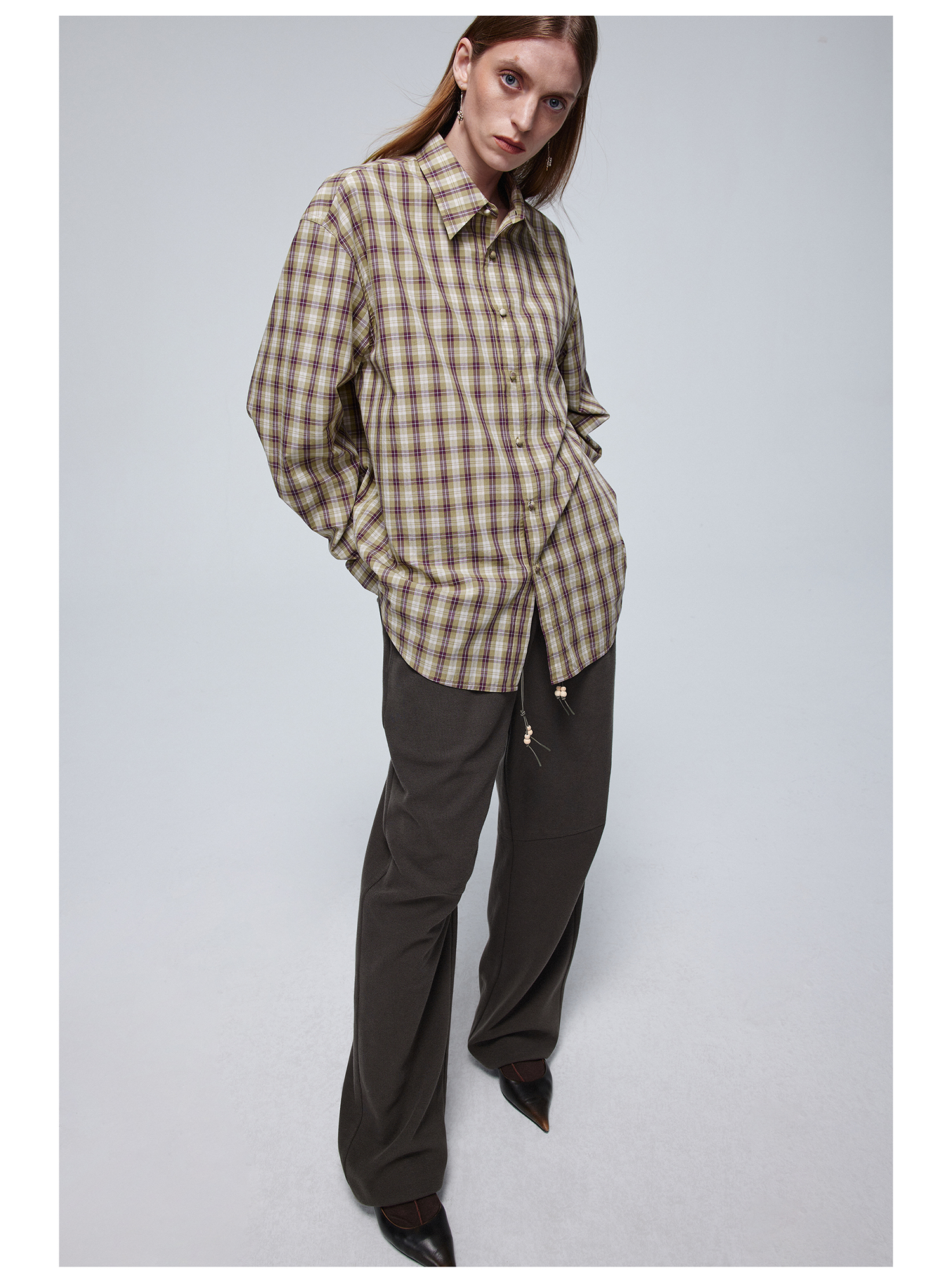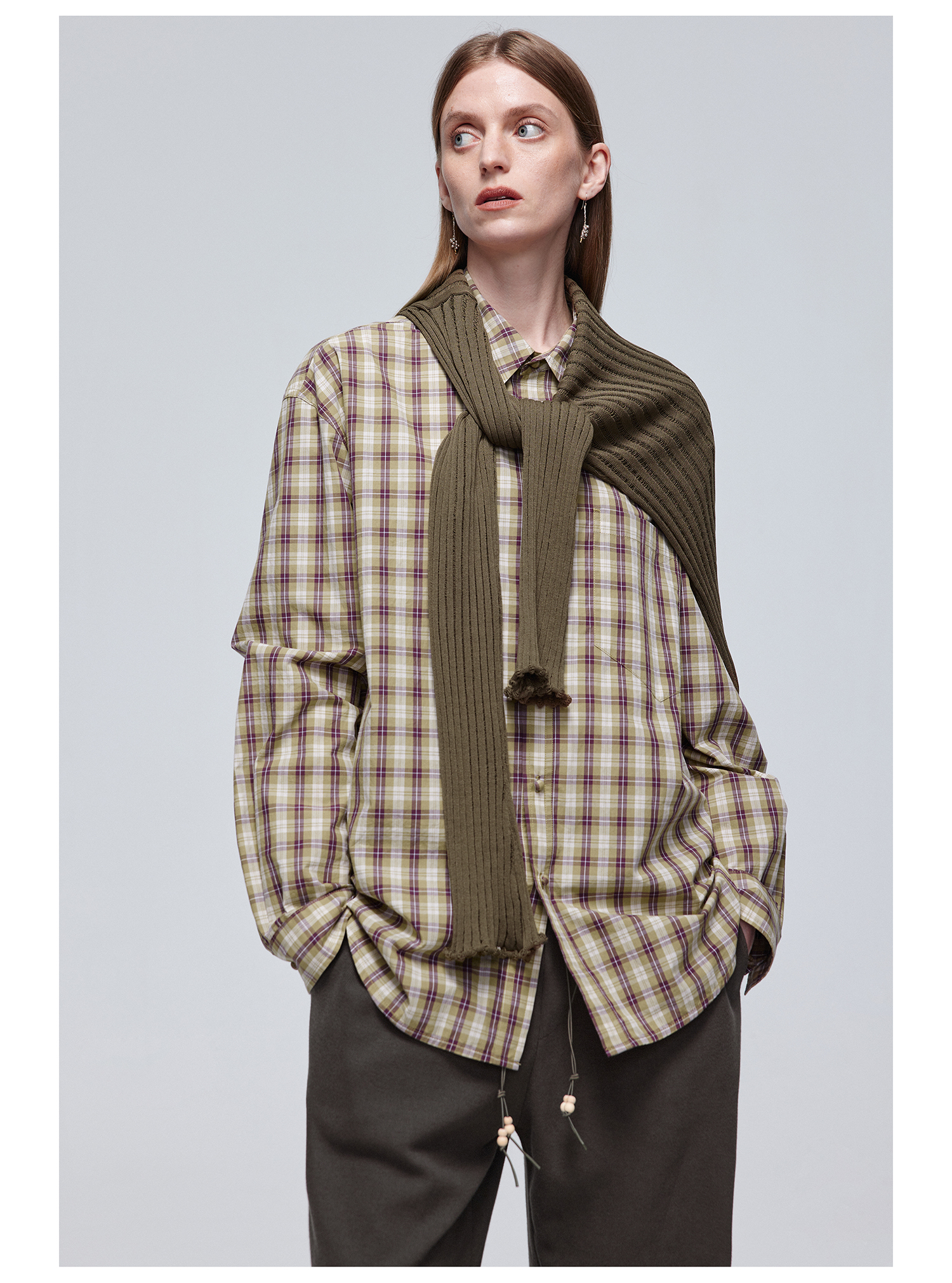 Simple Project/Y24120/绿紫格纹布包扣廓形长袖衬衫
