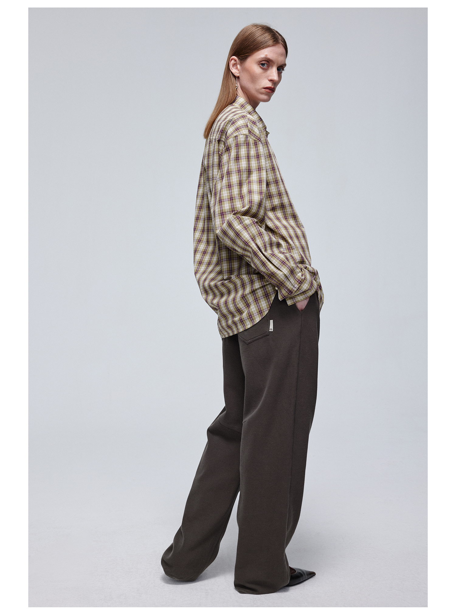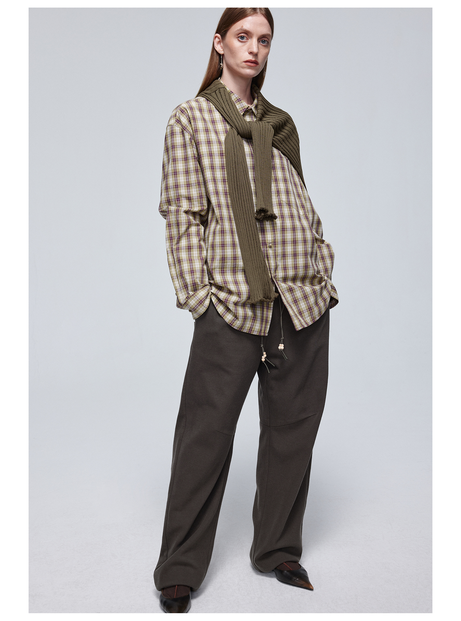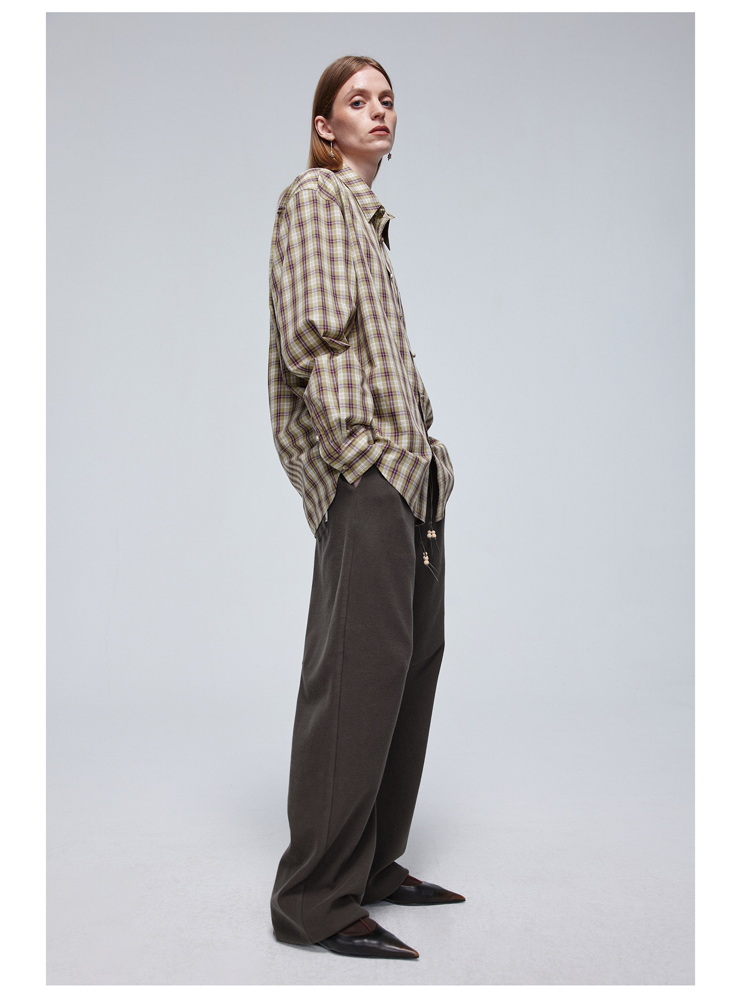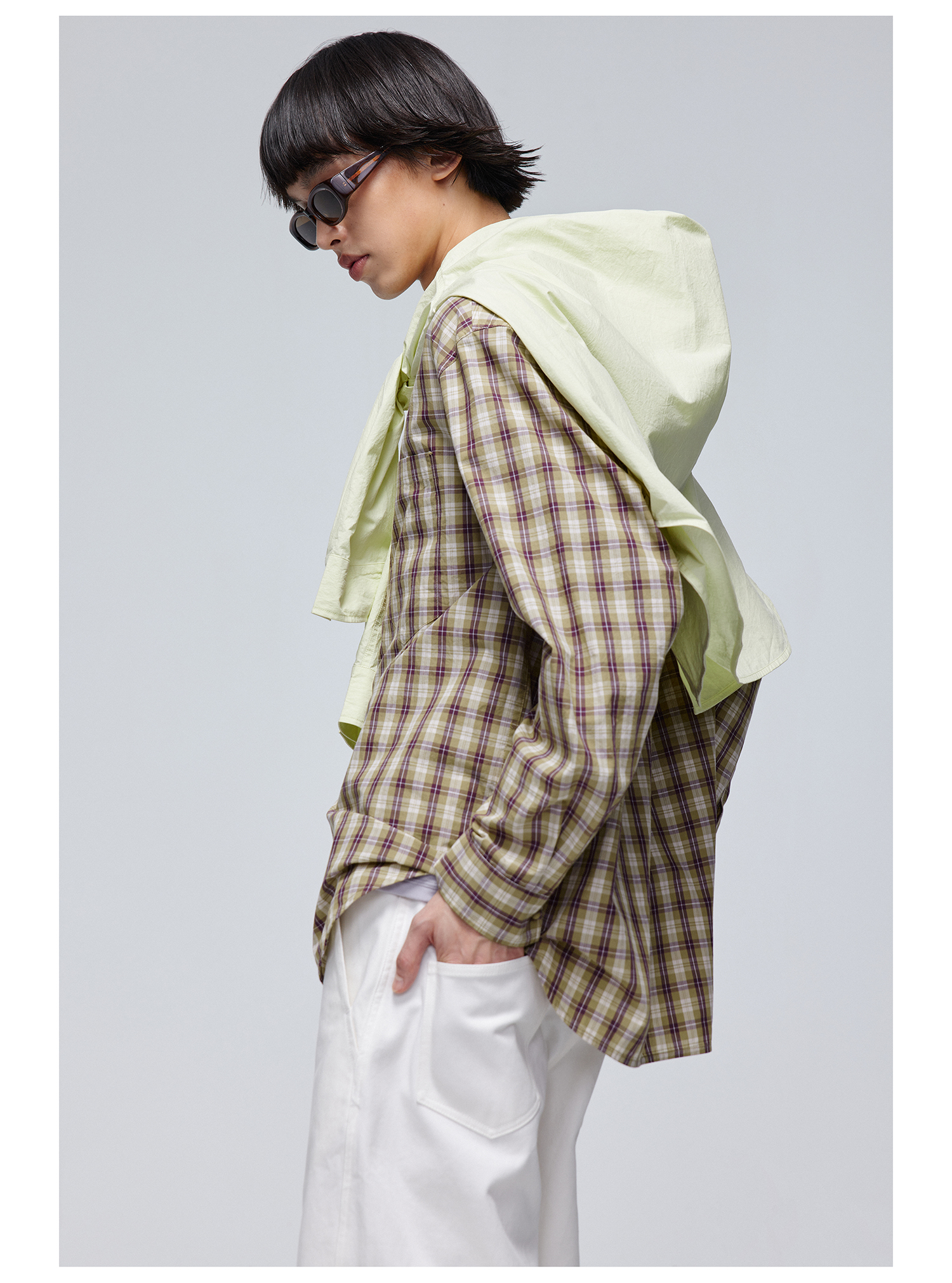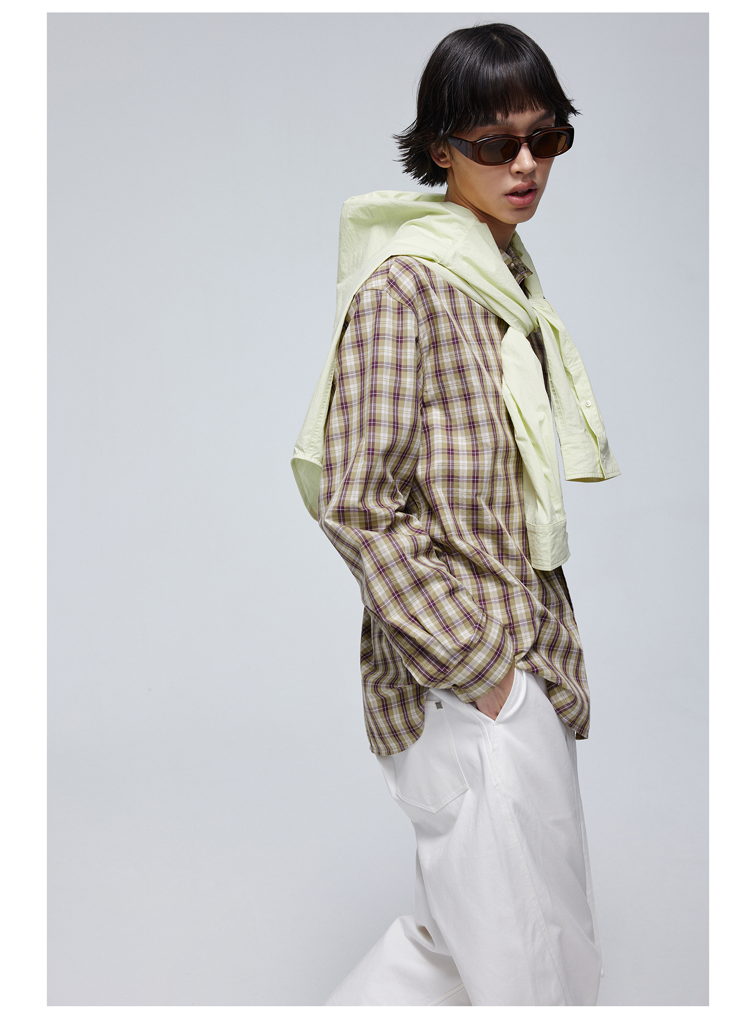 Simple Project/Y24120/绿紫格纹布包扣廓形长袖衬衫