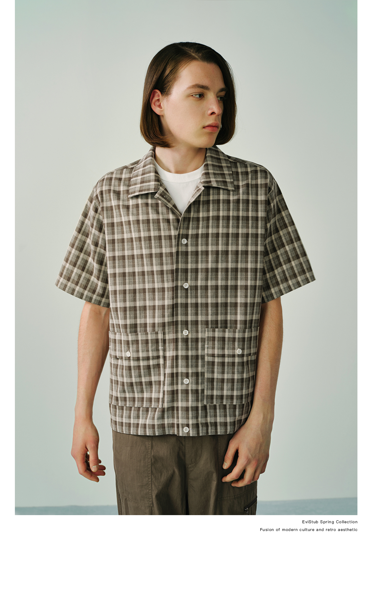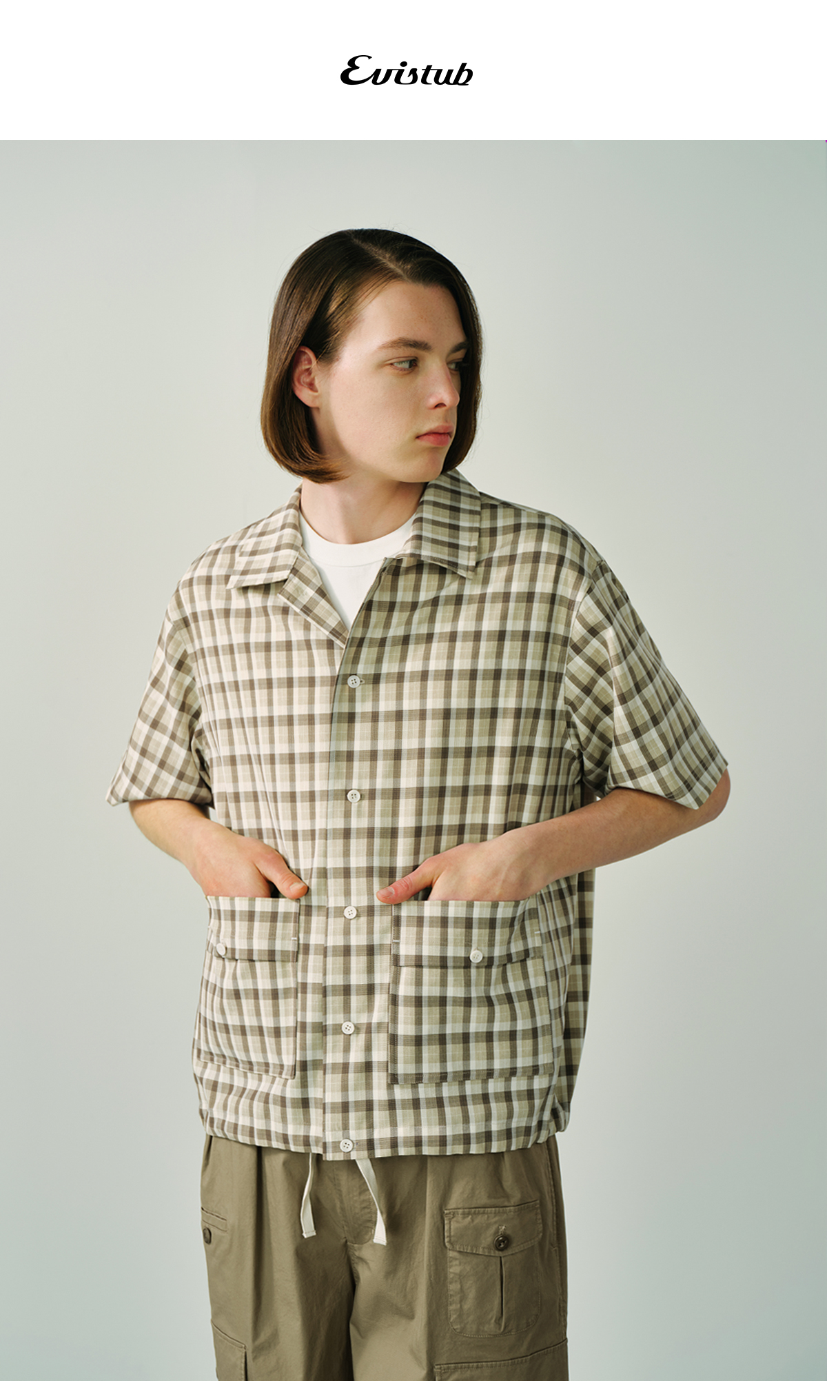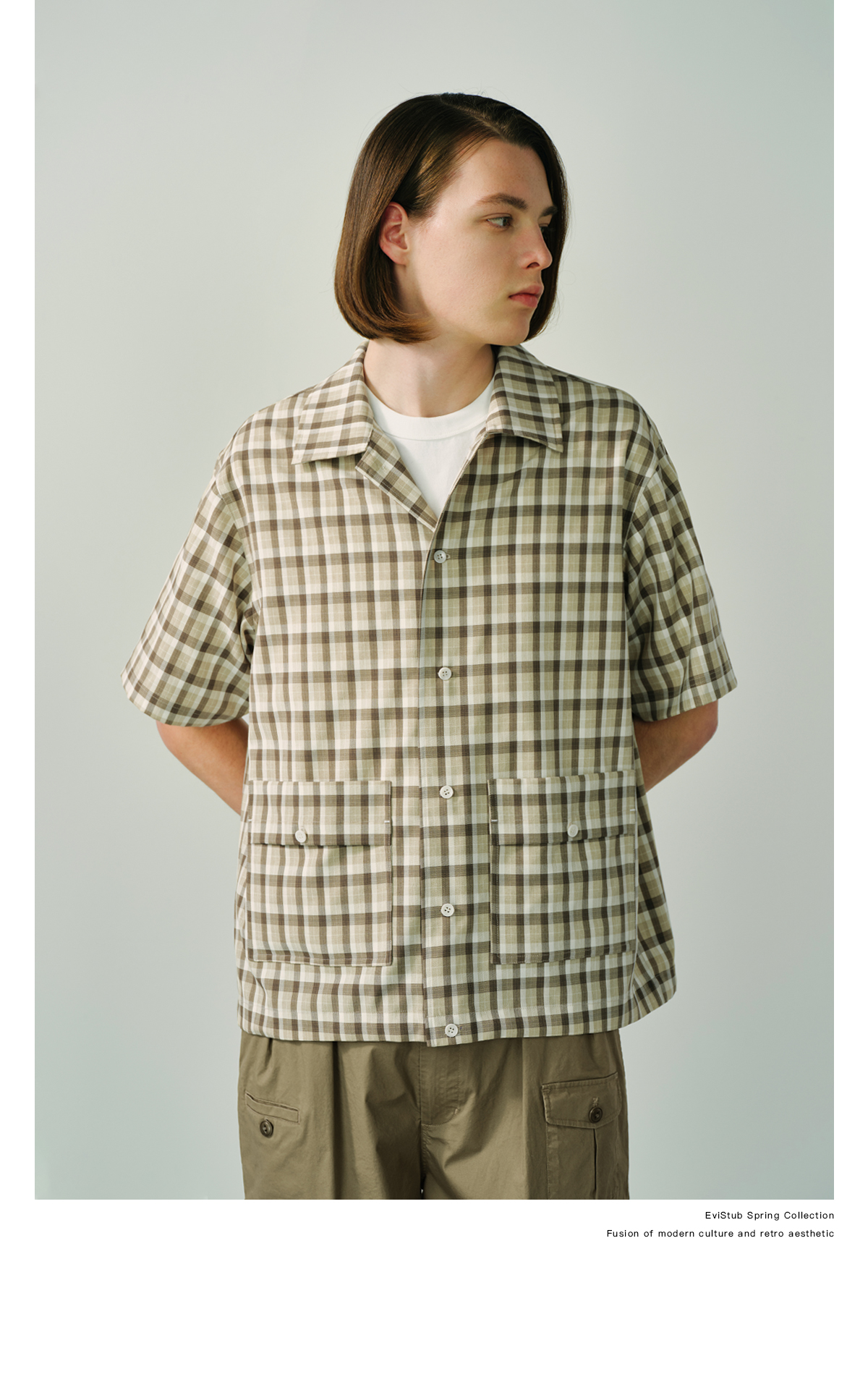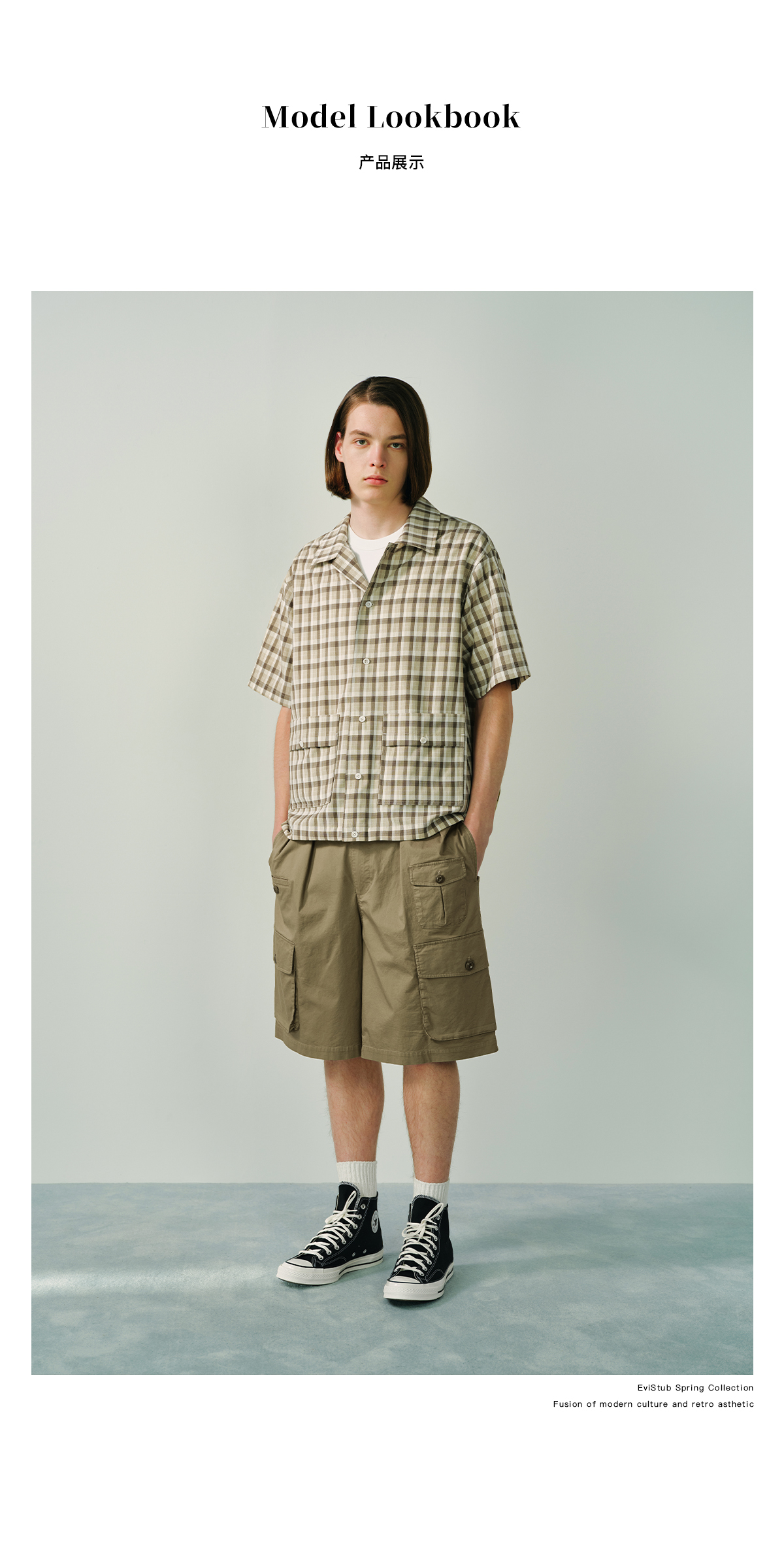 EviStub/E-5CCS230/进口色织格纹抗皱垂感复古日系古巴领短袖衬衫