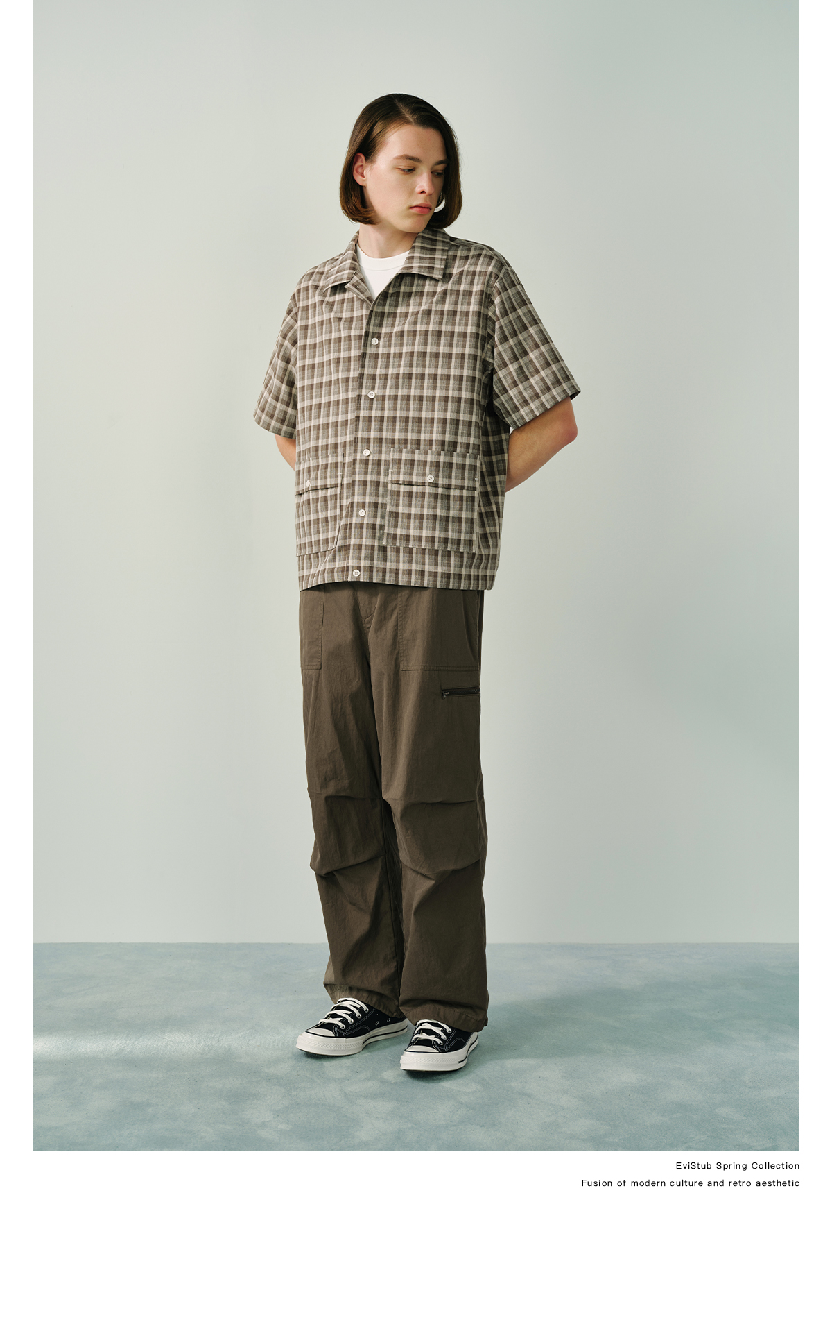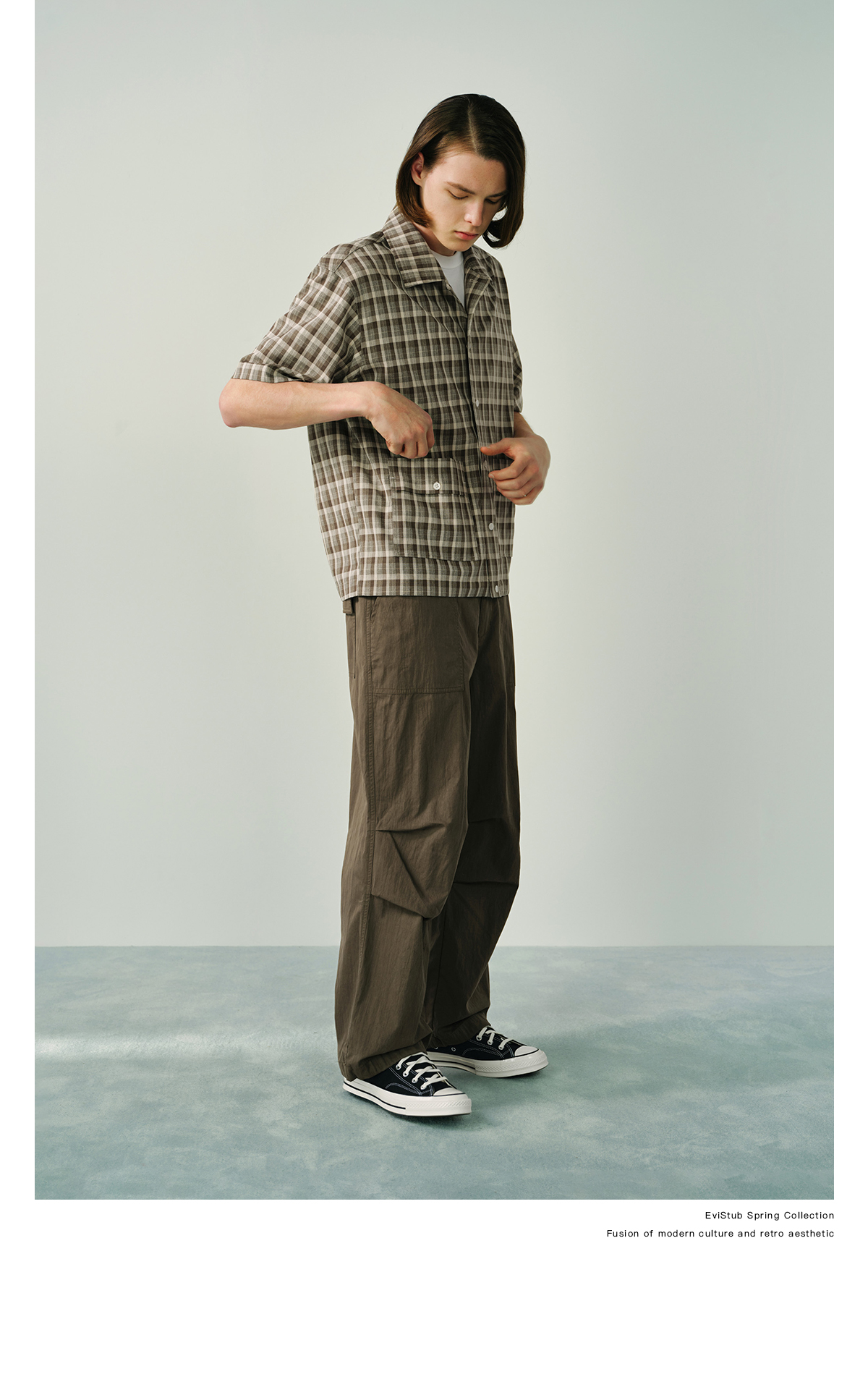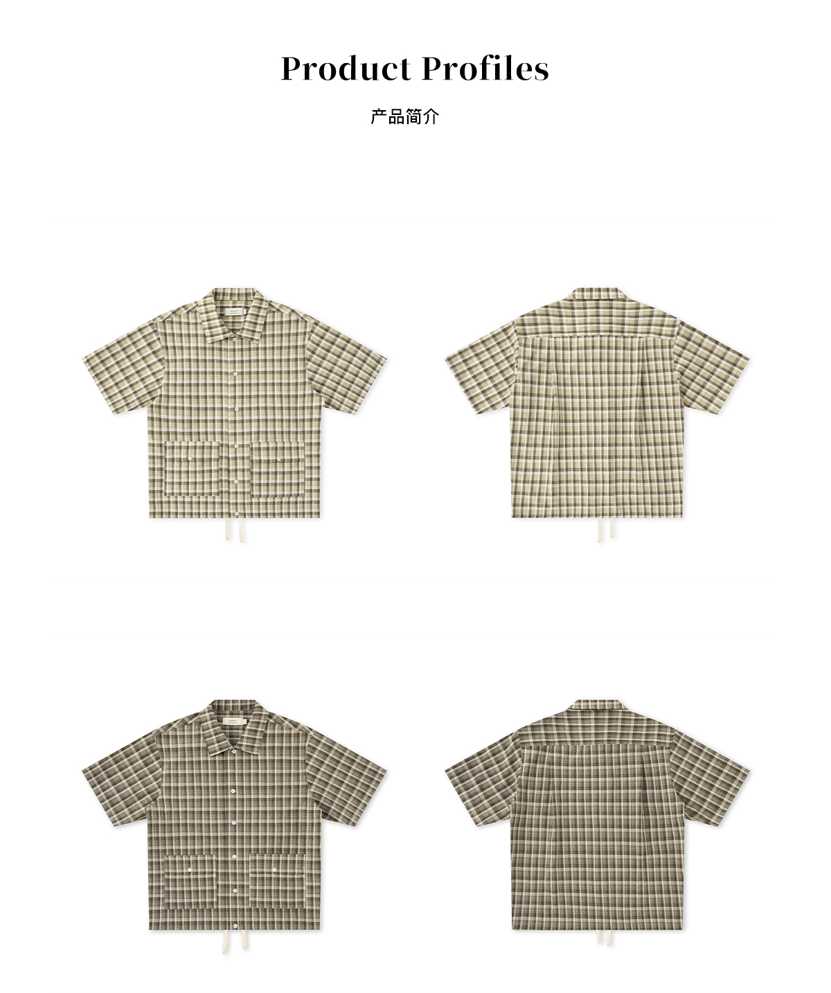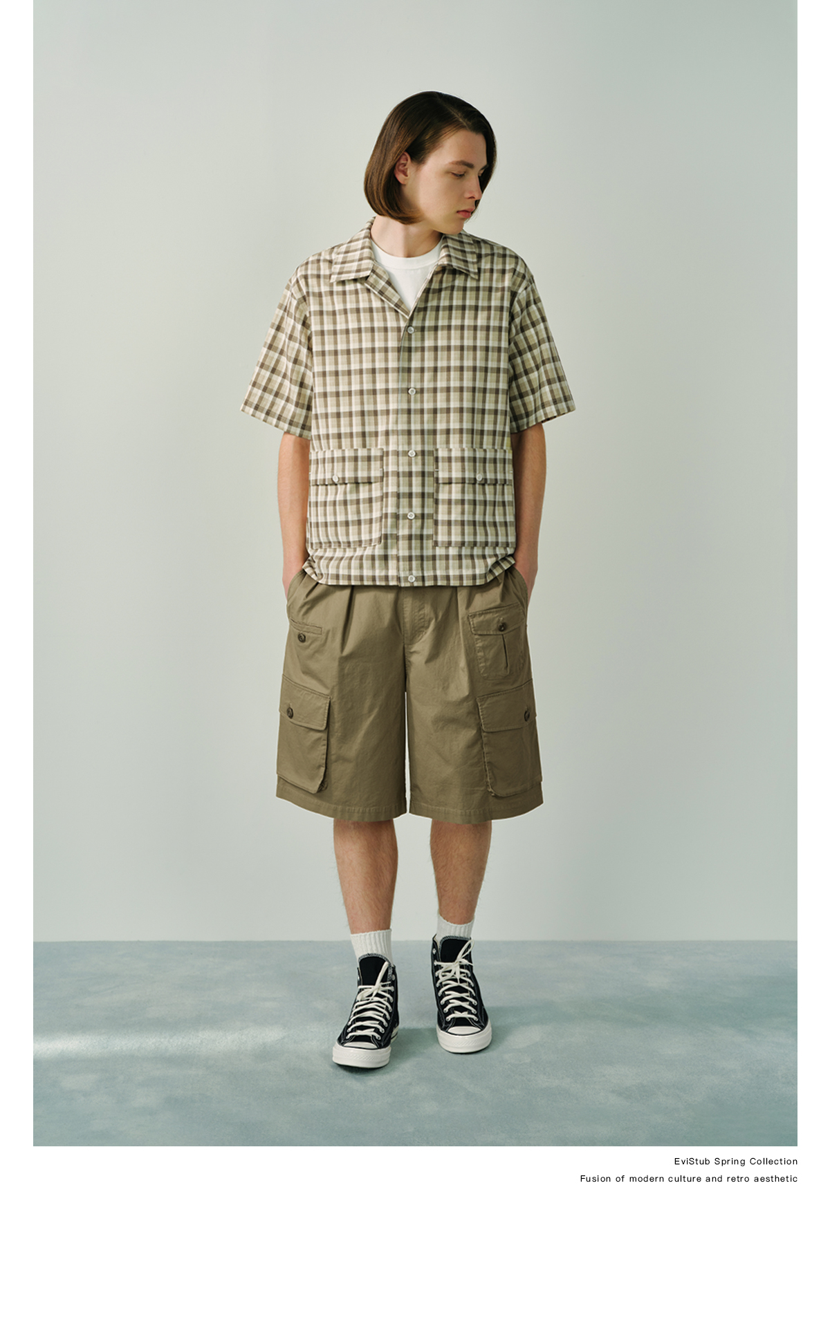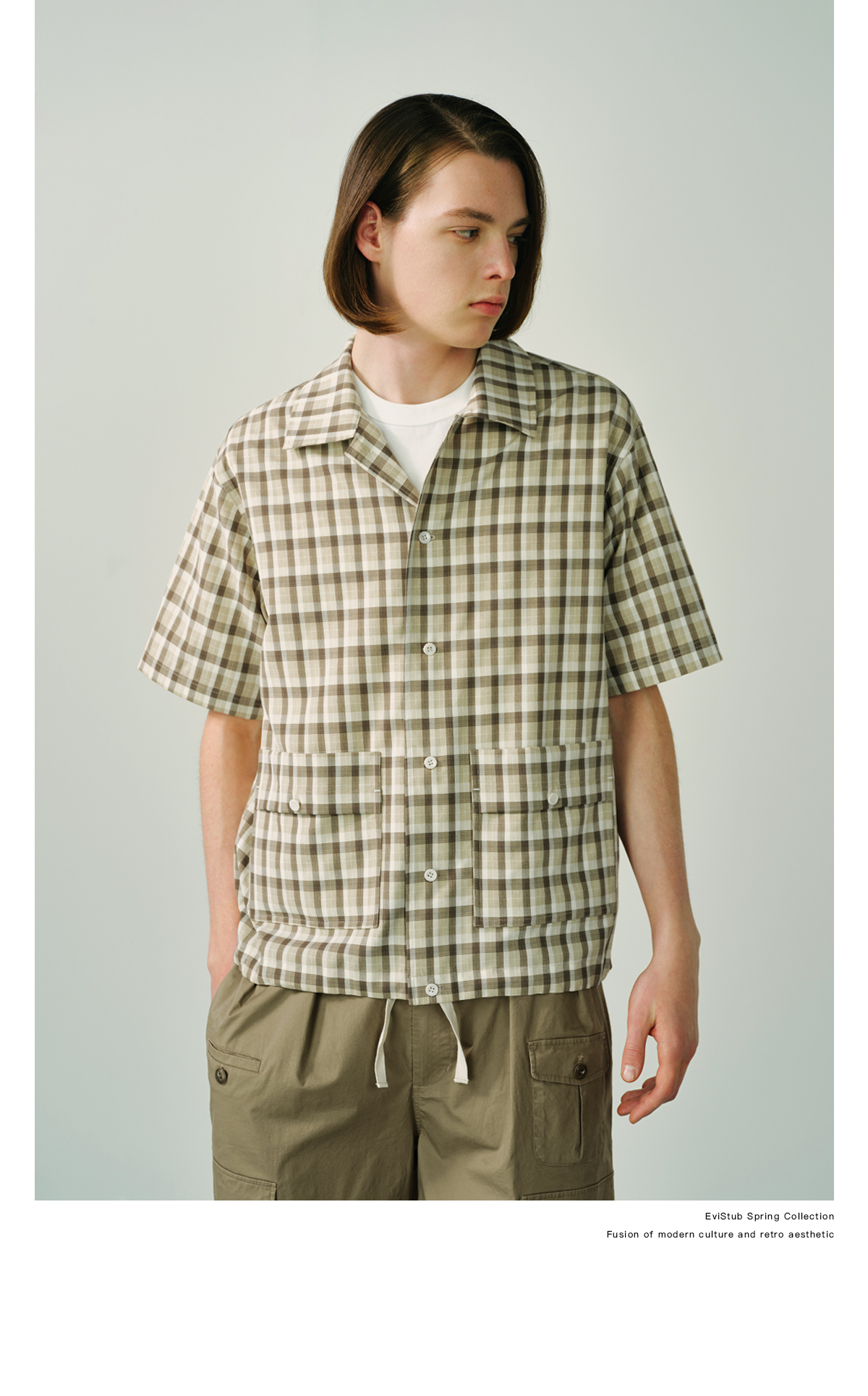 EviStub/E-5CCS230/进口色织格纹抗皱垂感复古日系古巴领短袖衬衫