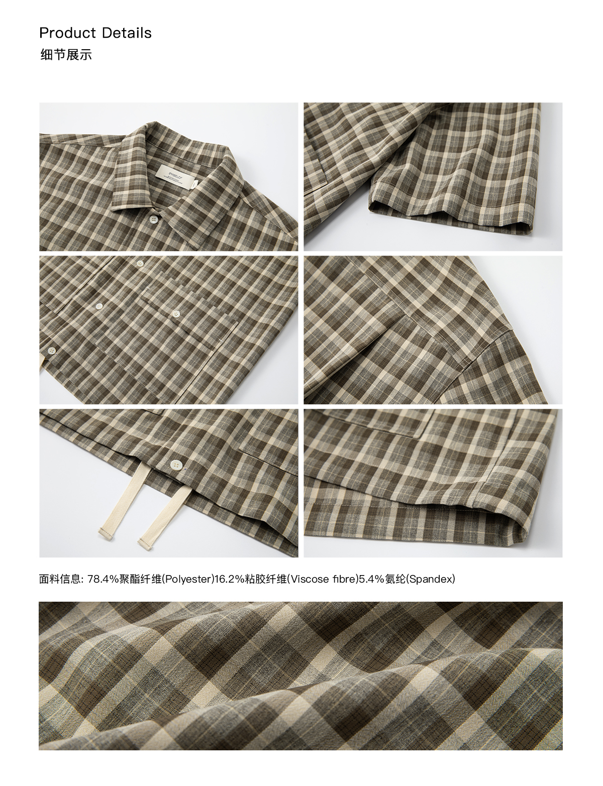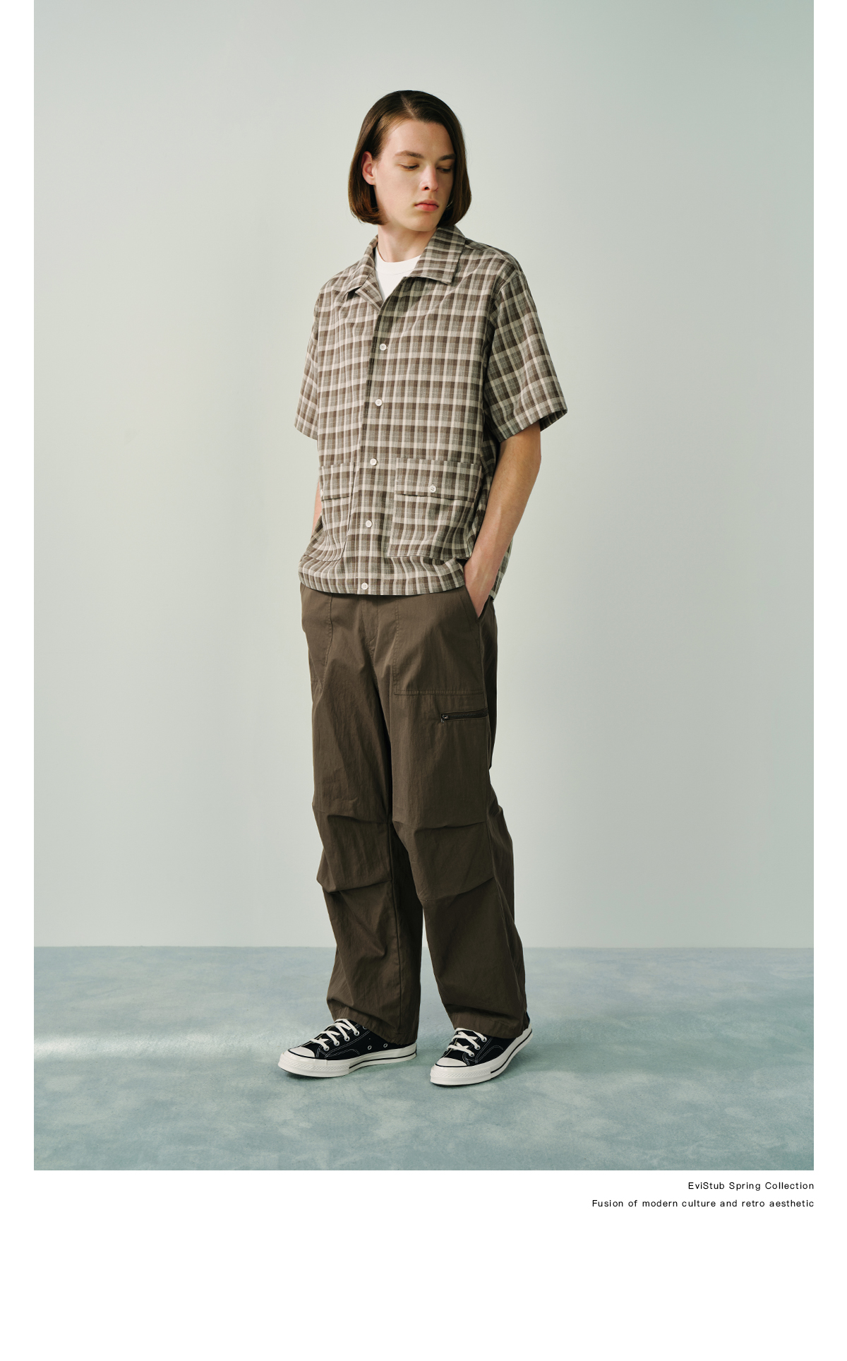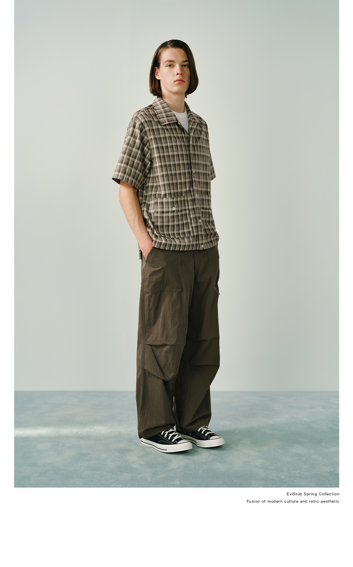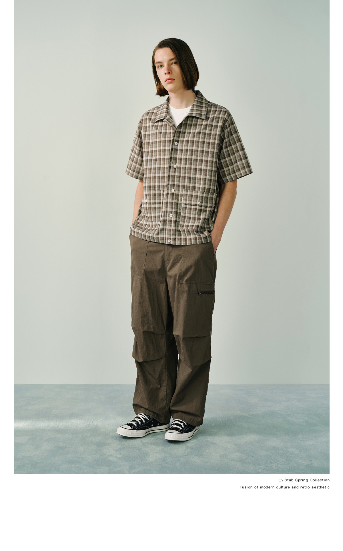 EviStub/E-5CCS230/进口色织格纹抗皱垂感复古日系古巴领短袖衬衫