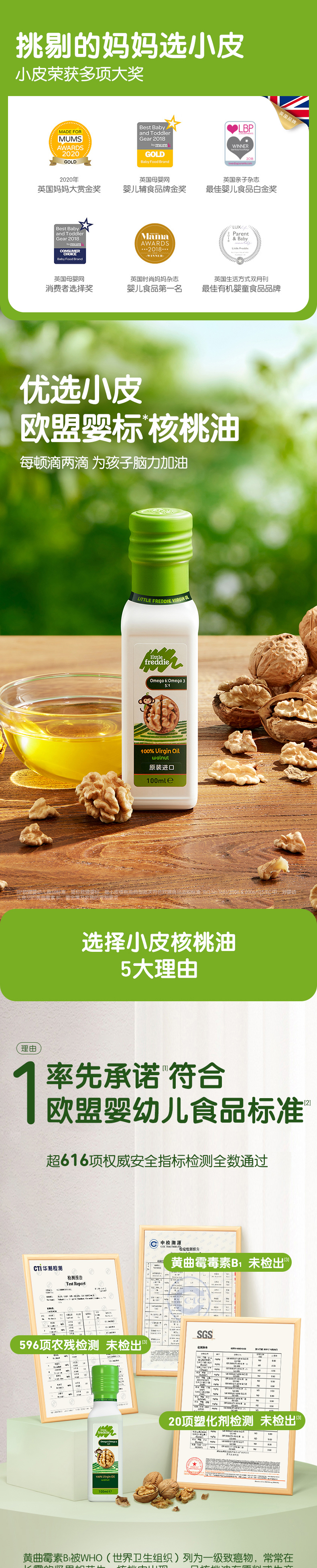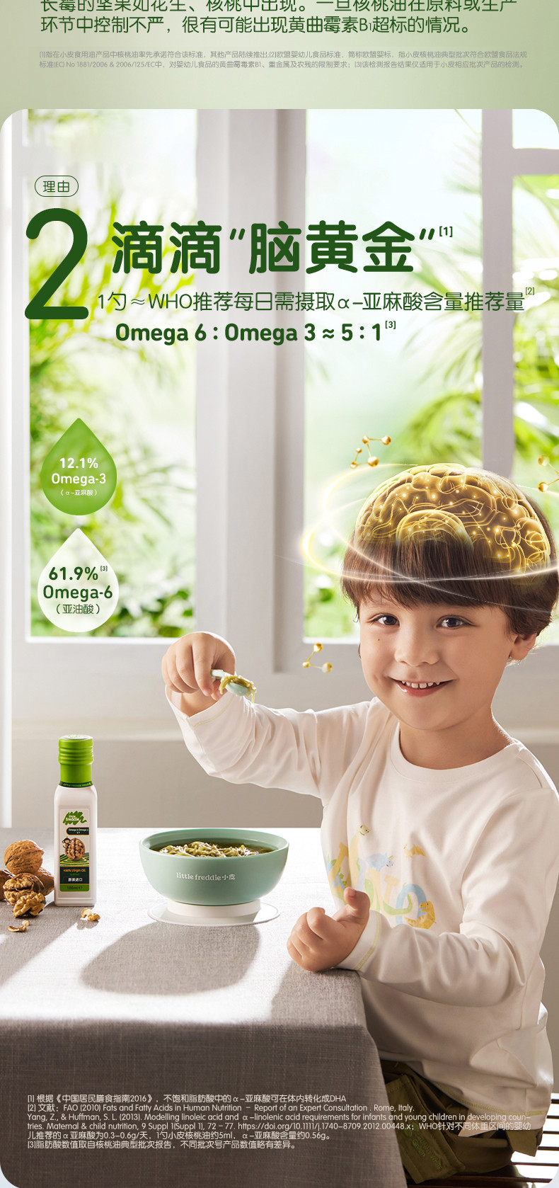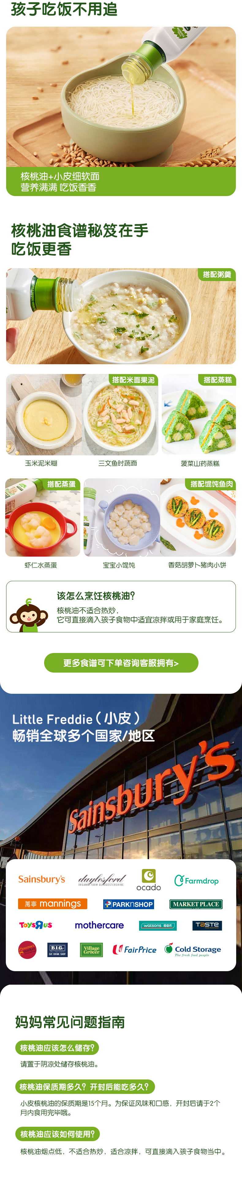 英国Little Freddie 小皮 核桃油100ml符合欧盟婴幼儿食用标准 可搭配米粉辅食佐餐