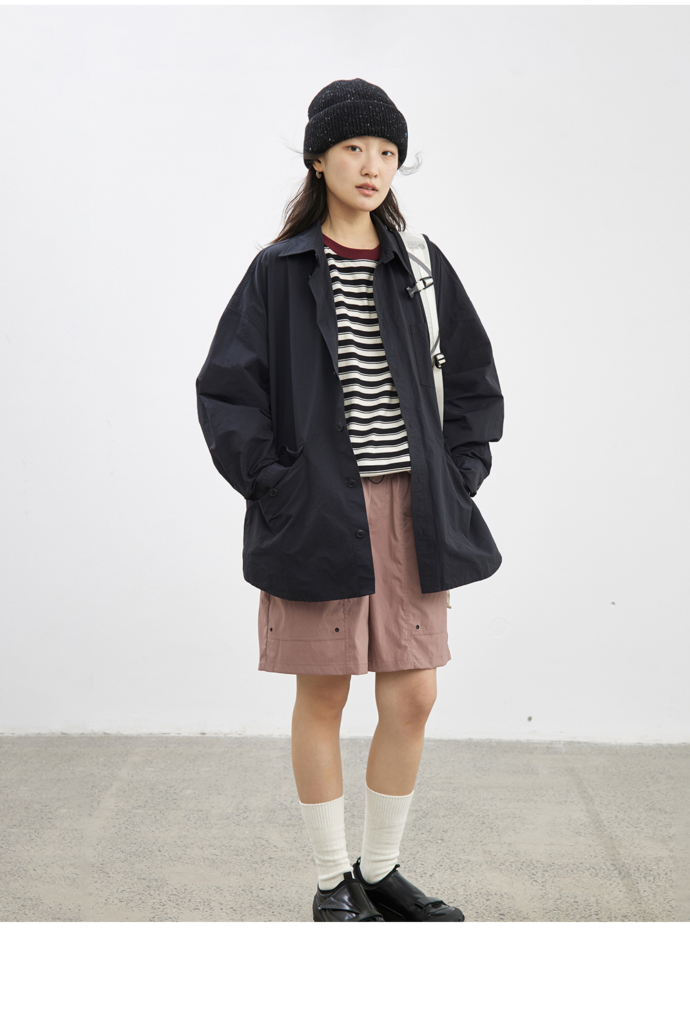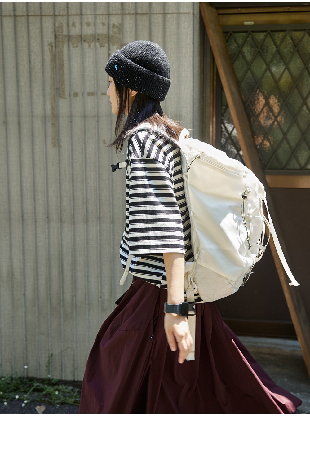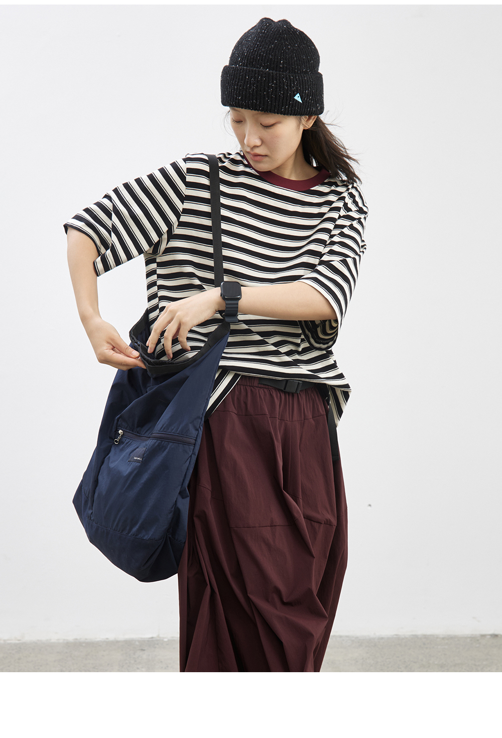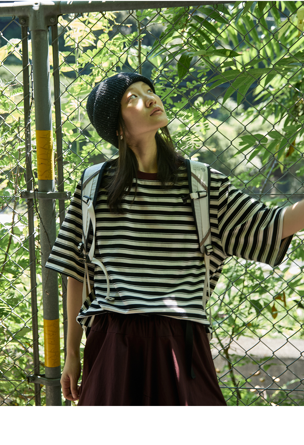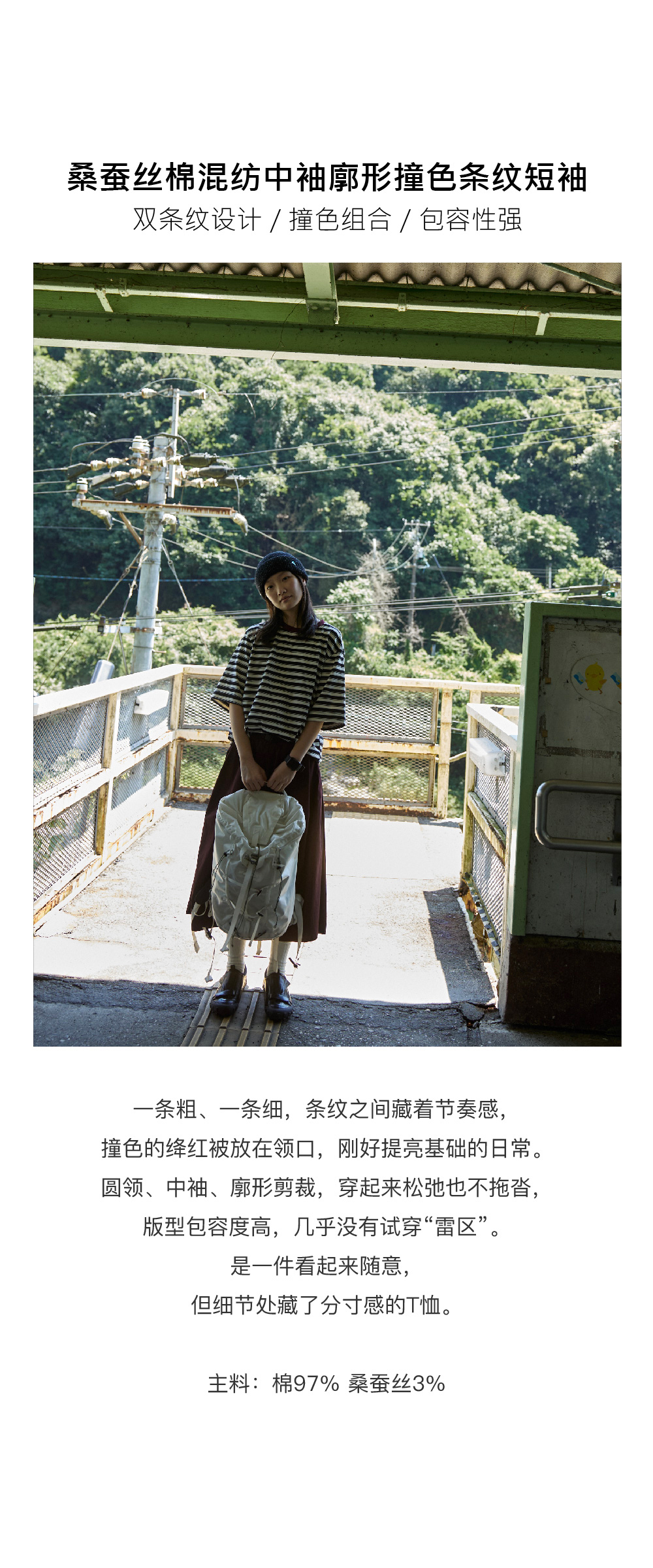 步履不停/5C18159C/中袖廓形撞色条纹T
